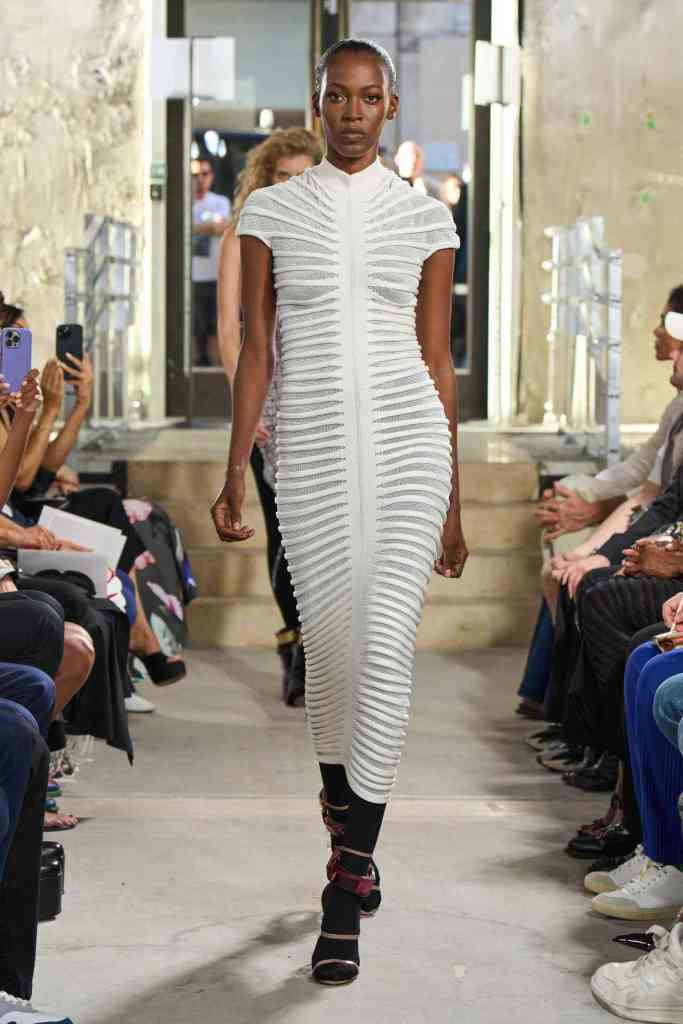 This collection combined Alaïa’s and Mulier’s best – creating a harmonious fusion that balanced reverence for tradition with a forward-thinking drive. His sophisticated design sensibilities elevate the seductive appeal of the clothes that Azzedine pioneered. This was only his third collection for the brand and yet he has found his feet so early. It is remarkable to see his efficient understanding and celebration of the brand legacy while still keeping it relevant for today’s clientele.