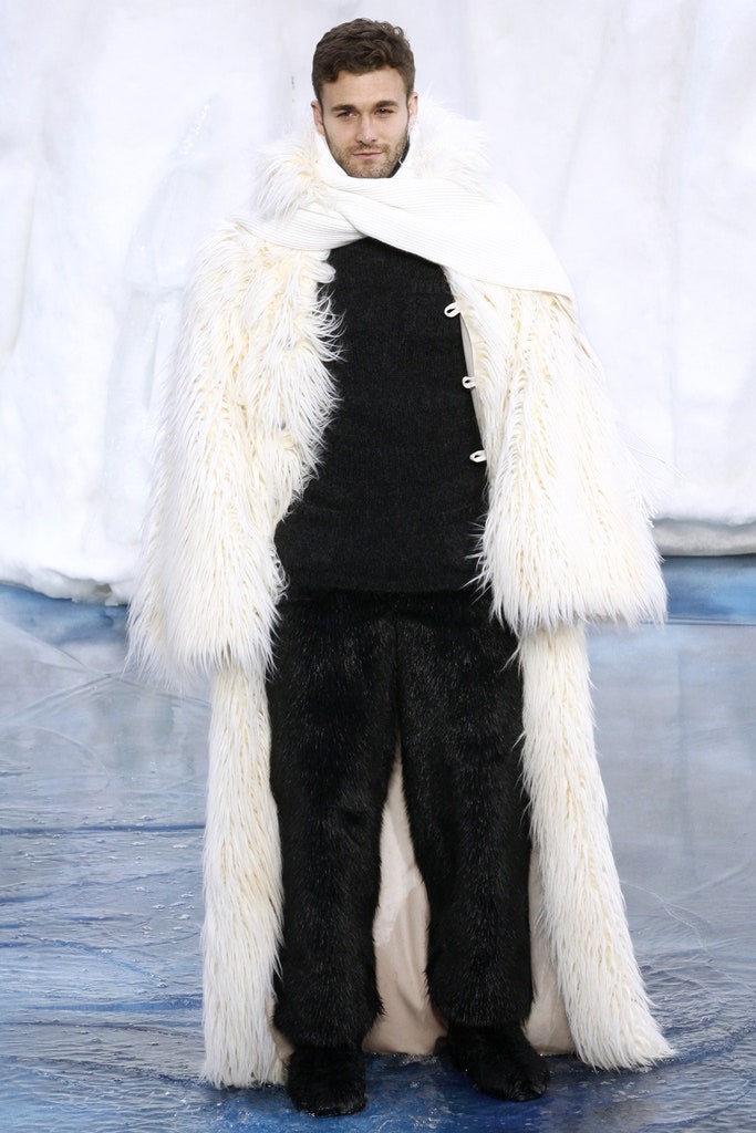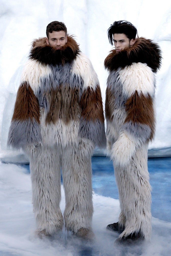 If I ever go on a Polar vacation; I have my mood board ready. Faux fur merged with couture-like silhouettes against an icy landscape. and rock-crystal embellishments mesmerized. Amidst it all, innovative knitwear stole the show, including stunning Angora sweater dresses, Lavishly embroidered coats, icy jewellery, floor-sweeping coats and ice-block heels. From the Eskimo-ish colour palette that ranged from frosty whites to dirt browns, to the intricate embellishments reminiscent of delicate snowflakes to massive glaciers. My fav? the fur boots paired with almost every look!