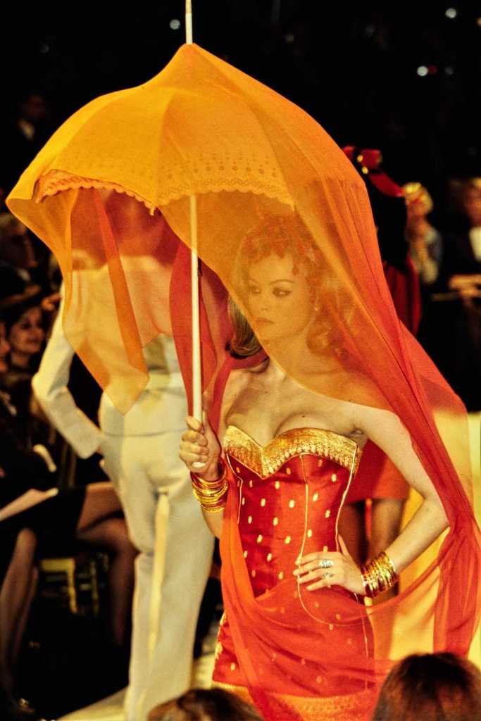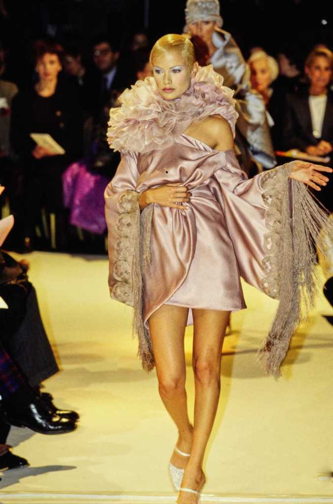 The garments were centered around the juxtaposition of classic and contemporary elements. While Galliano infused his distinctive artistic flair into every piece, traces of Hubert de Givenchy’s timeless grace still lingered throughout the collection. Extravagant ruffles, cascading layers, voluminous sleeves, and intricate embroidery adorned the garments, creating a visual feast for the eyes.