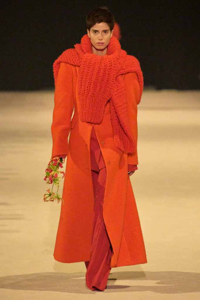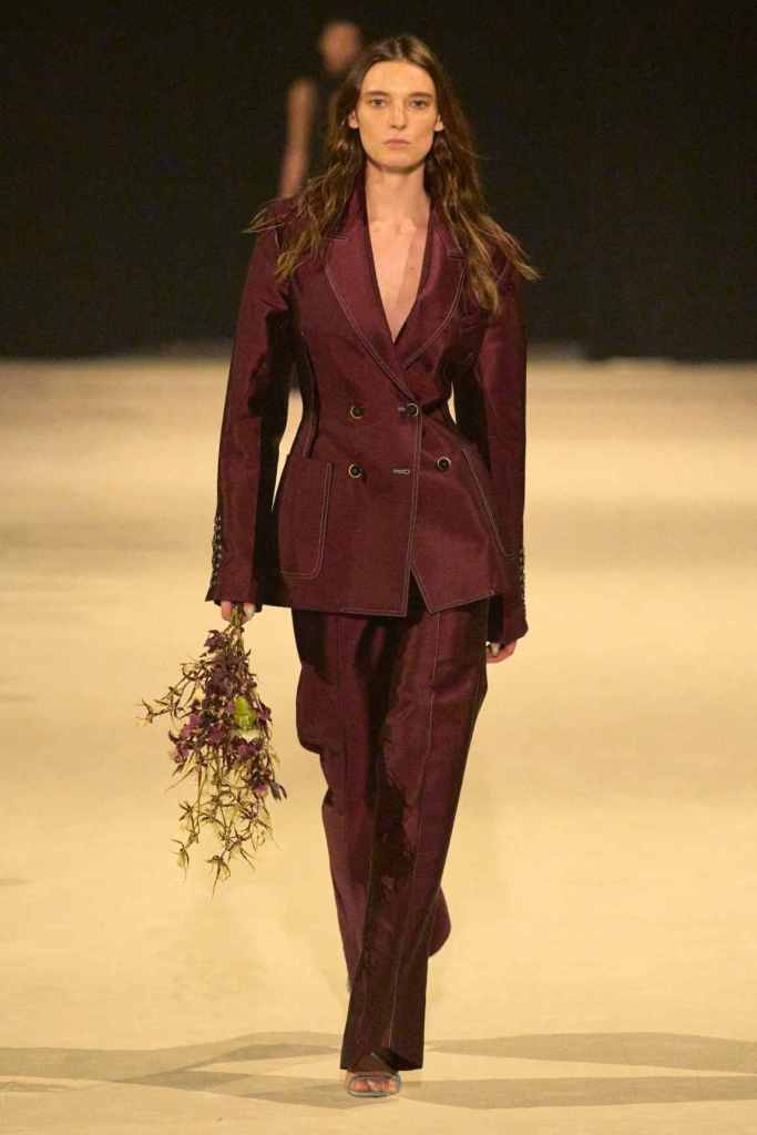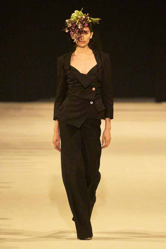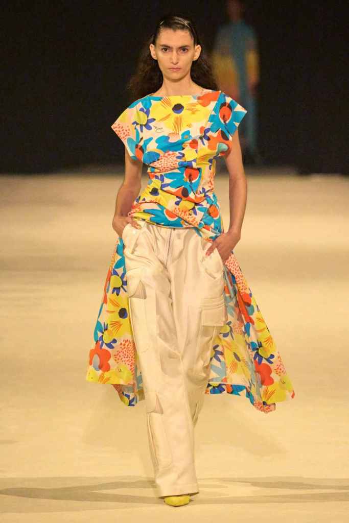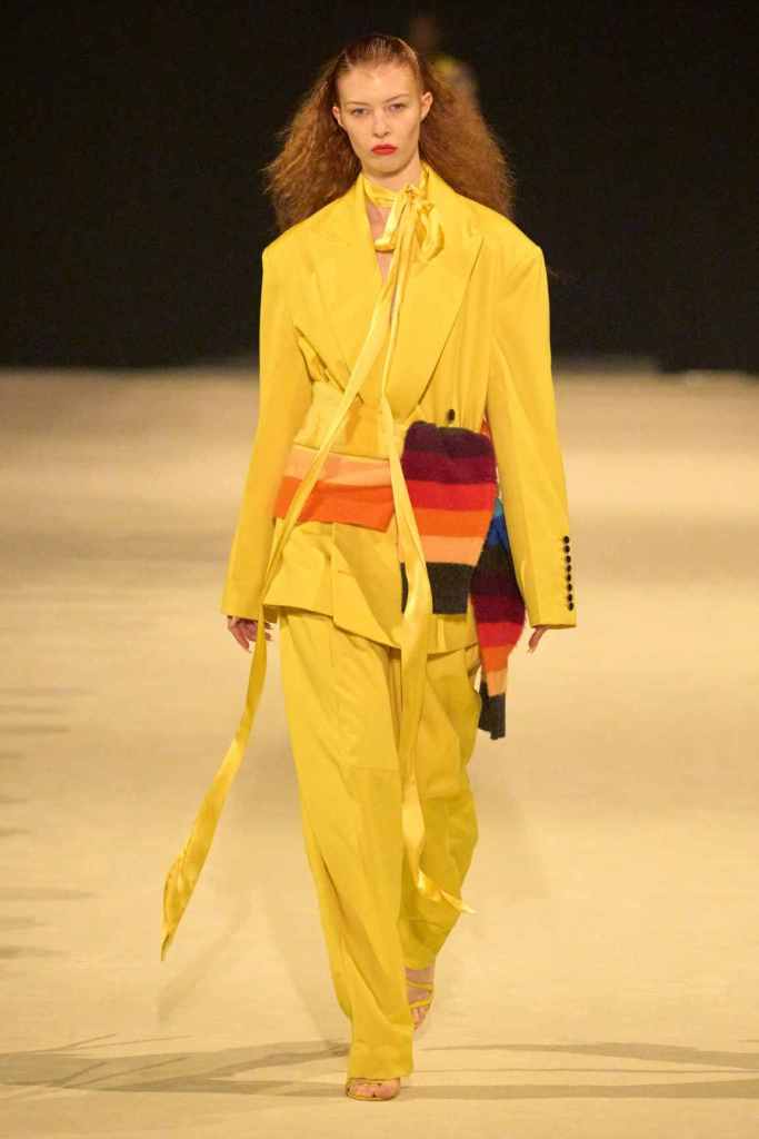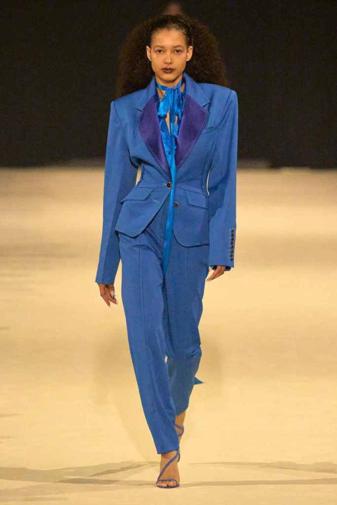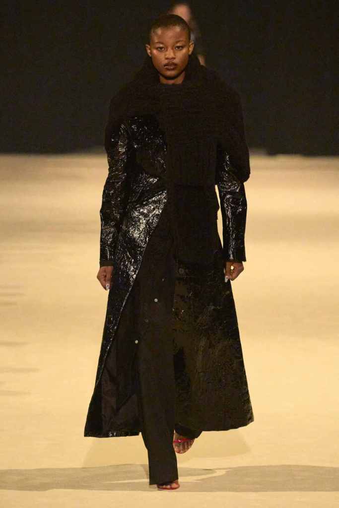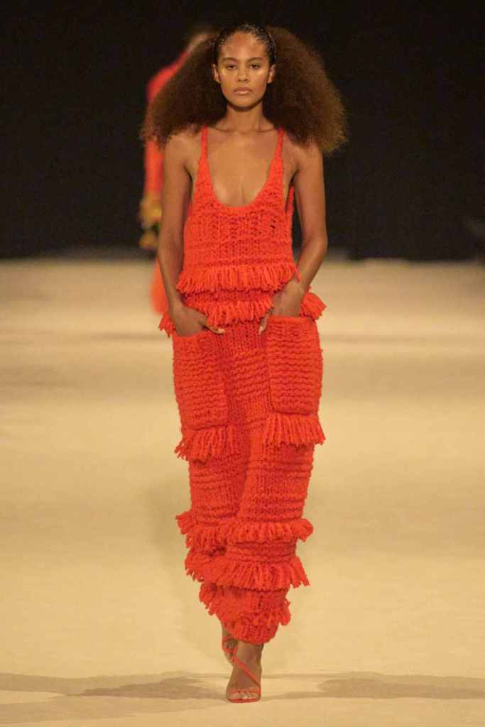 With his signature rainbow stripes and bold polka dots, Rogers takes us on a whimsical journey filled with calming colors and avant-garde silhouettes. Each garment is meticulously crafted, showcasing his mastery of color, texture, and fit. From elegant ball skirts to draped tops, every garment is 100% CJR finesse & theater. From puffy black skirts to glossy finishes and rainbow buttons, Rogers effortlessly combines elements to create a visual feast for the eyes. The styling game is strong too, with shaggy knits and oversized sweater dresses stealing the show. Christopher John Rogers continues to push fashion forward with his brazen individuality. The combination of simplicity and emotions collide to create an uplifting energy.