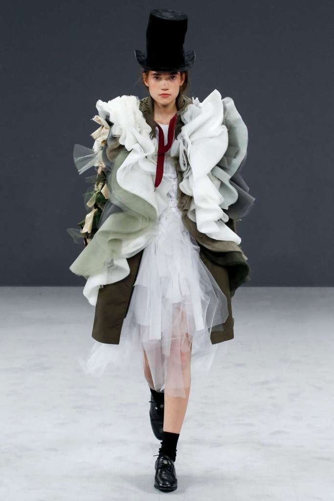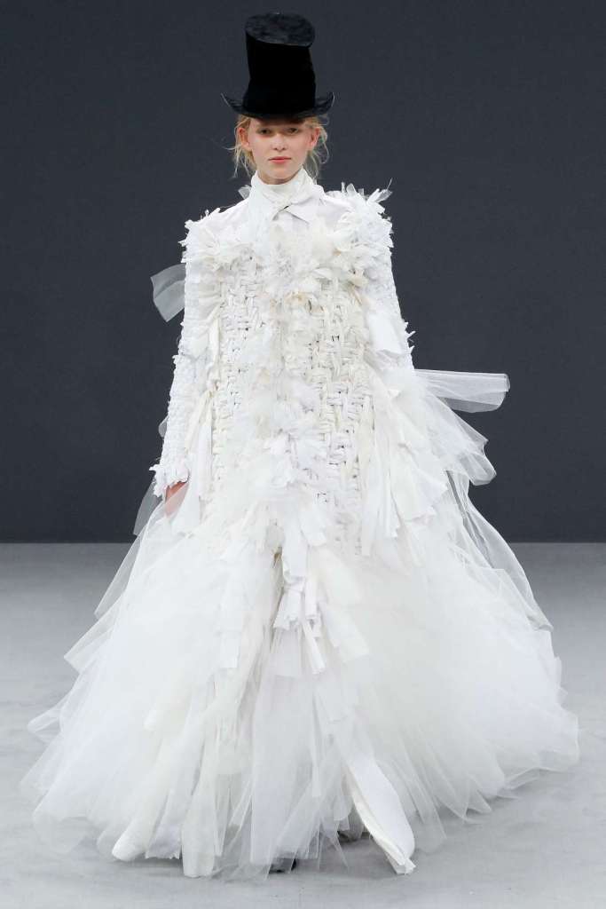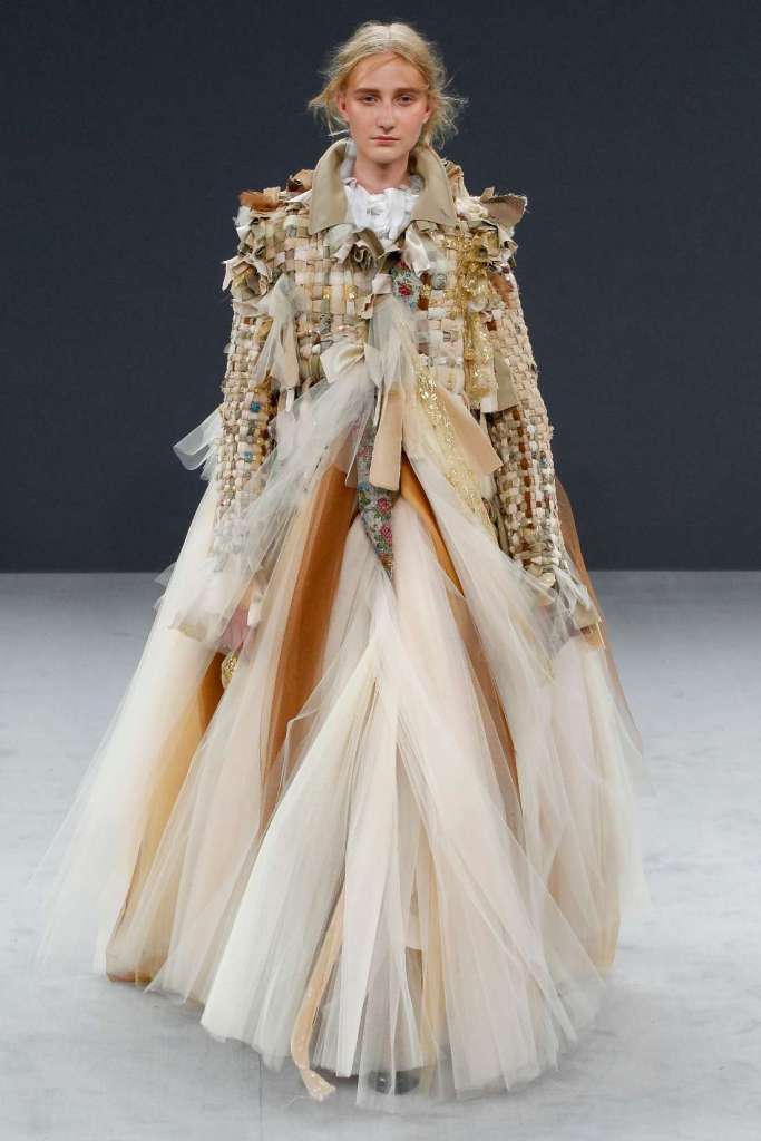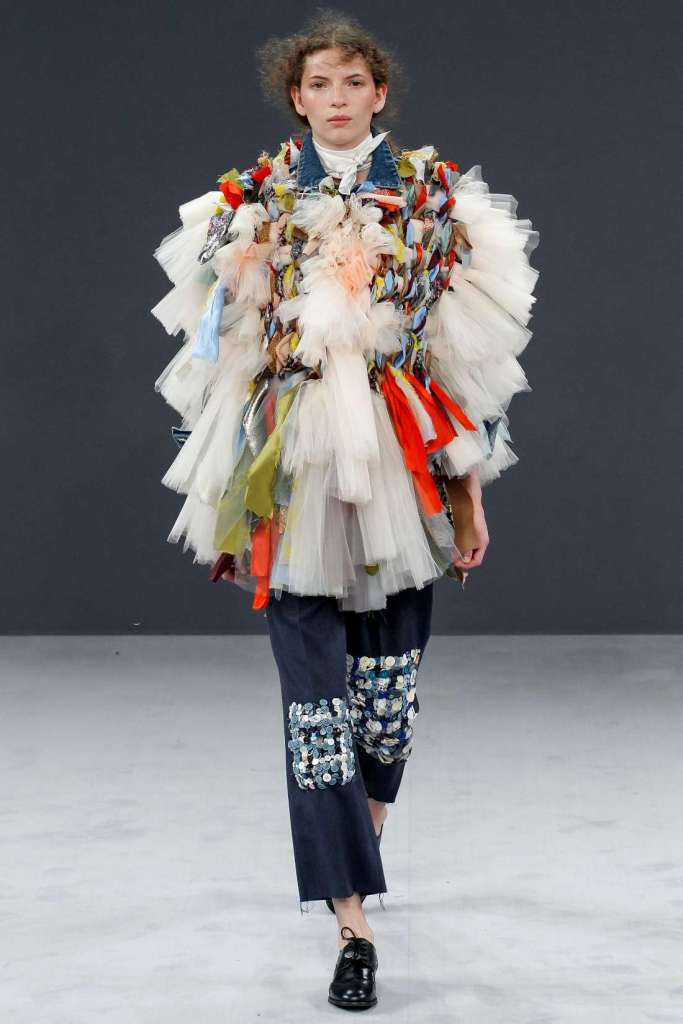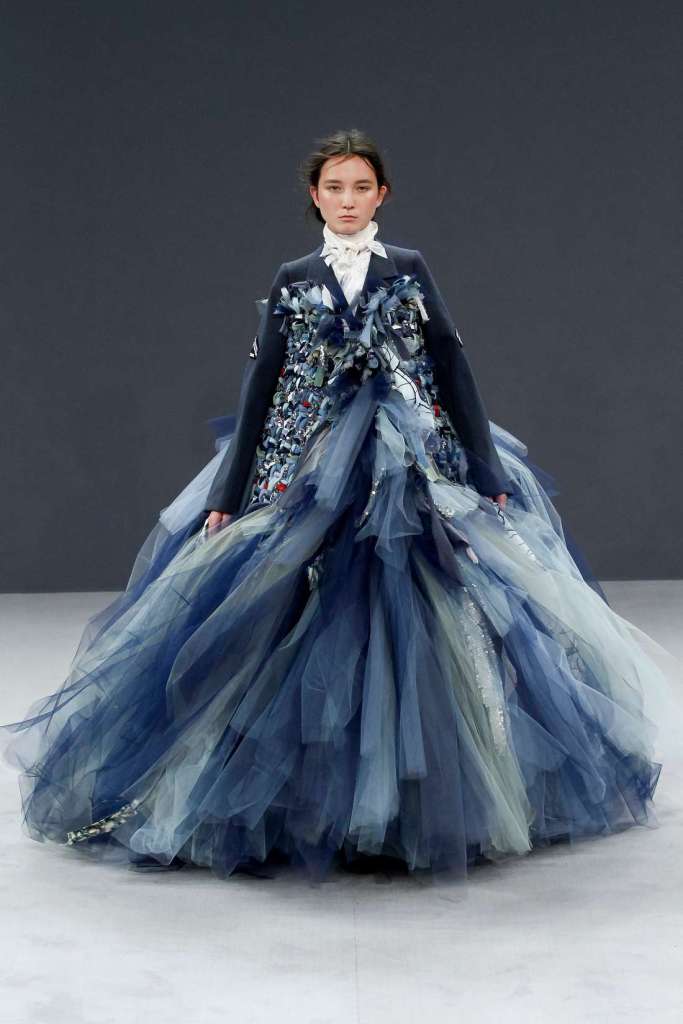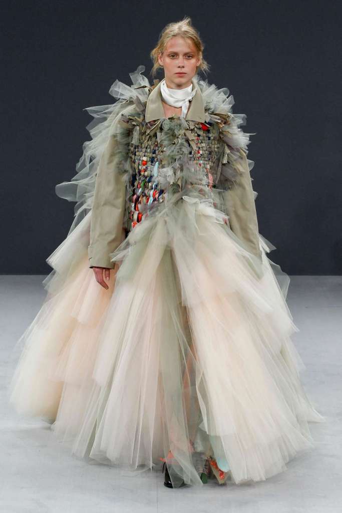 The clothes are a testament to the power of artistic expression and the transformative nature of fashion. With their unparalleled skill and boundless imagination, the designers have created visually rich, colorful and emotionally evocative ensembles. They are deliberately torn and mixed together to form new and voluminous shapes. The collection ended with gorgeous tulle-heavy gowns.