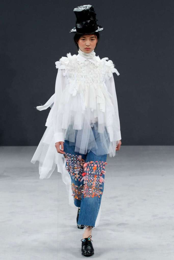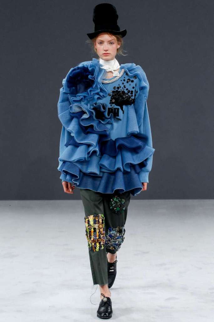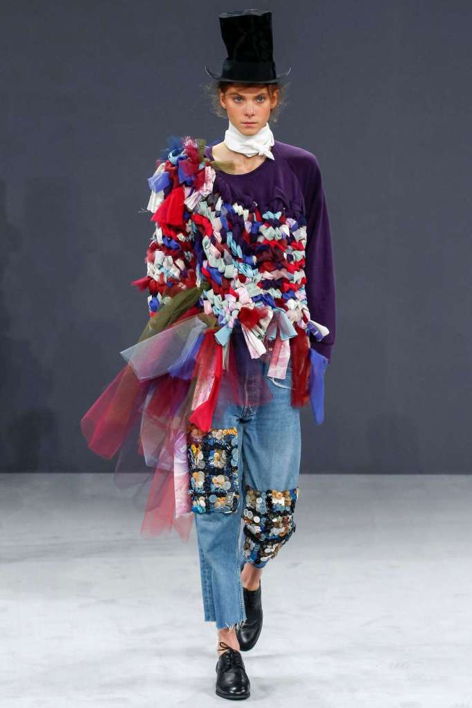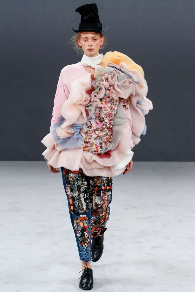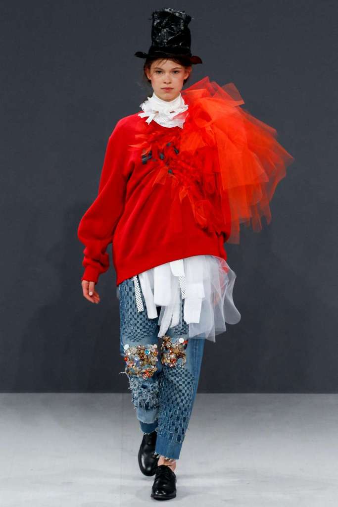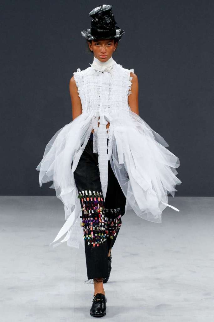 The clothes are a testament to the power of artistic expression and the transformative nature of fashion. With their unparalleled skill and boundless imagination, the designers have created visually rich, colorful and emotionally evocative ensembles. They are deliberately torn and mixed together to form new and voluminous shapes. The collection ended with gorgeous tulle-heavy gowns.