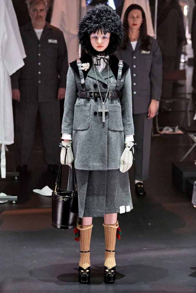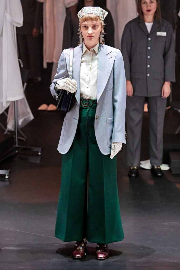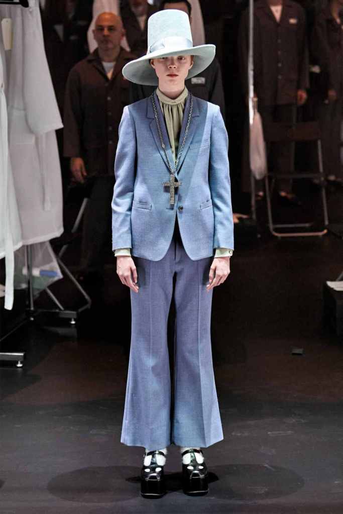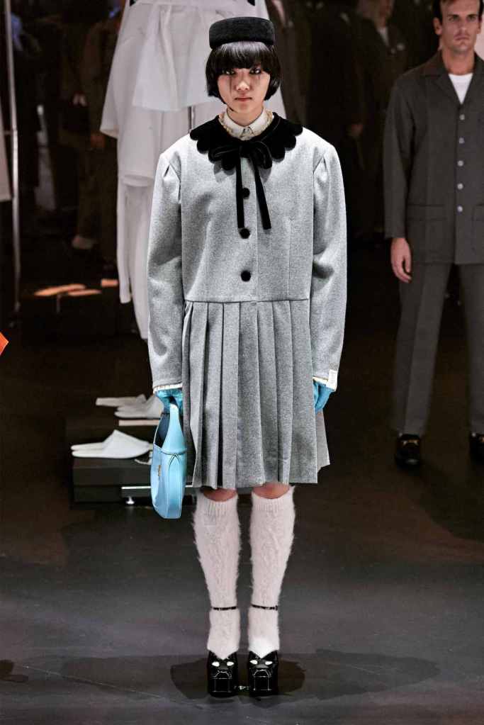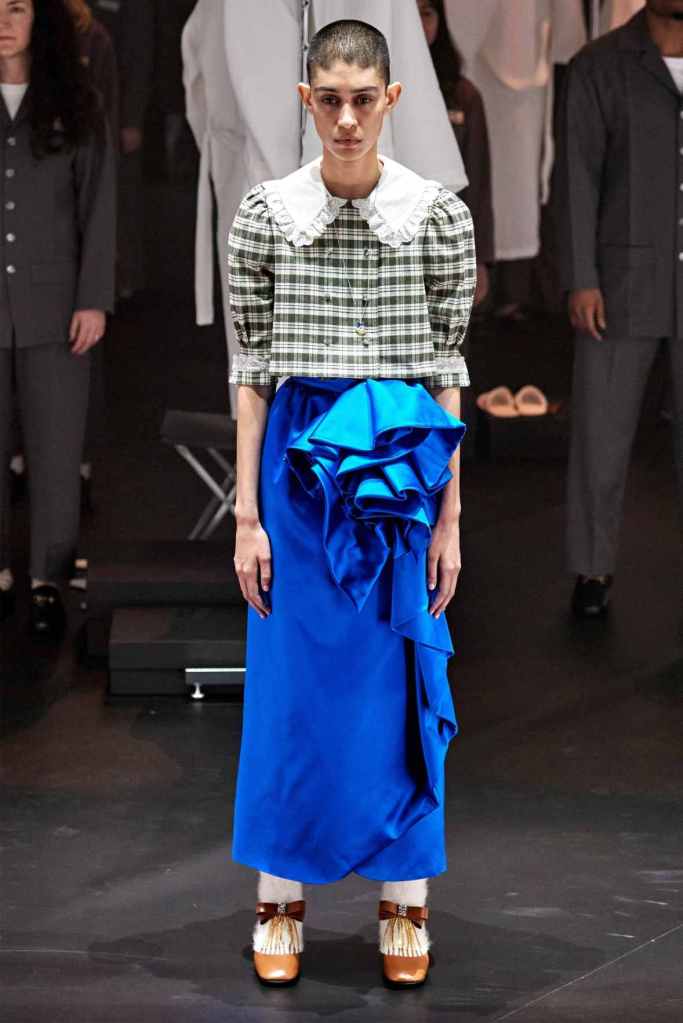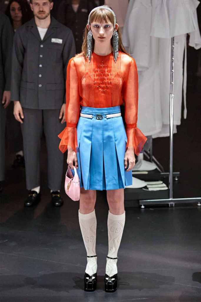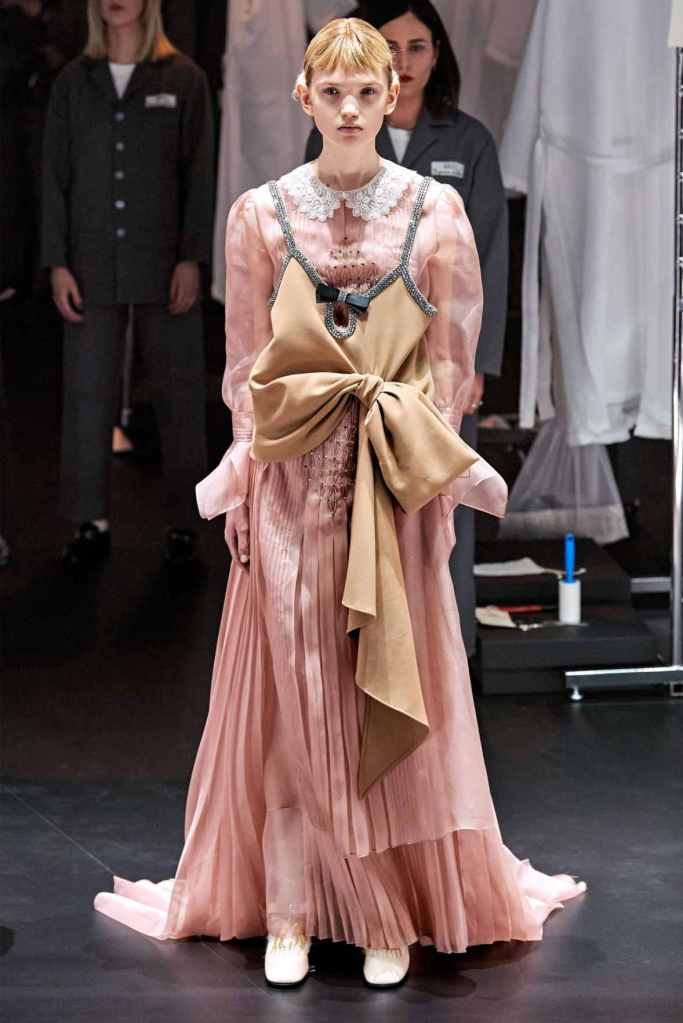 A carousel of Victorian elegance meets modern rebellion, This collection pushes boundaries and breaks conventions. Alessandro Michele brought the hidden chaos and bustling backstage energy to the runway. With an ability to blend contrasting elements seamlessly, he constructs mesmerizing worlds that exist on the delicate border between whimsy and edgy. Clothes looked like they invited us to revel in our distinctiveness. With every ensemble, he reminded us that style is not confined to the boundaries of conformity, but rather a powerful means of self-expression. Some standout pieces included floral suits, leather harnesses, baby doll dresses, tiered tulle skirts, schoolgirl separates, Pilgrim-inspired accessories and Georgian gowns.
