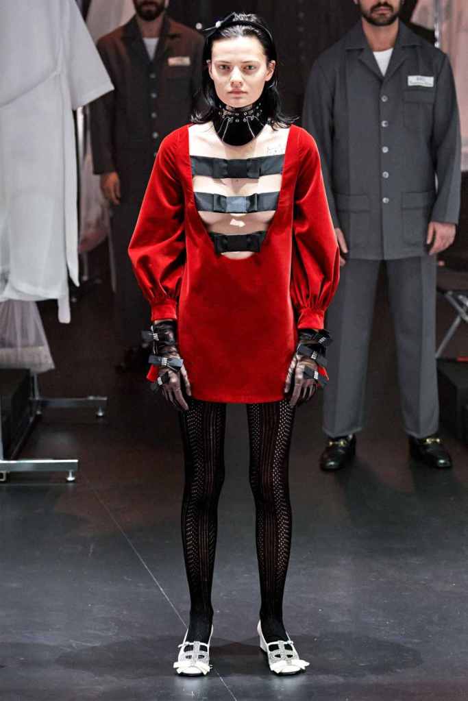 Religious subversion emerged as a prominent thread woven into the fabric of the collection. Michele skilfully challenged societal norms and religious conventions, daring to provoke conversations around the inherent power dynamics within religious institutions. By integrating elements of bondage and kink, he aimed to disrupt traditional perceptions of purity, emphasizing the potential for independence within the realm of spirituality. Michele challenged the status quo, provoking conversations about power, spirituality, and liberation. This collection is a testament to Michele’s unmatched talent, featuring powerful clothes that empower.