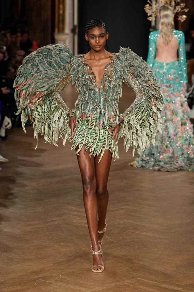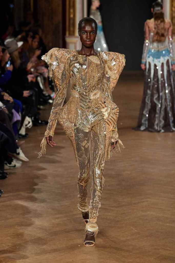 From elegantly tailored bodysuits that embrace the contours of the body to vast, dramatic mini-dresses that exude an aura of enchantment. Each piece reflects the designer’s keen eye for detail and his ability to create wearable art that evokes emotion.