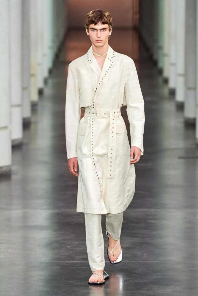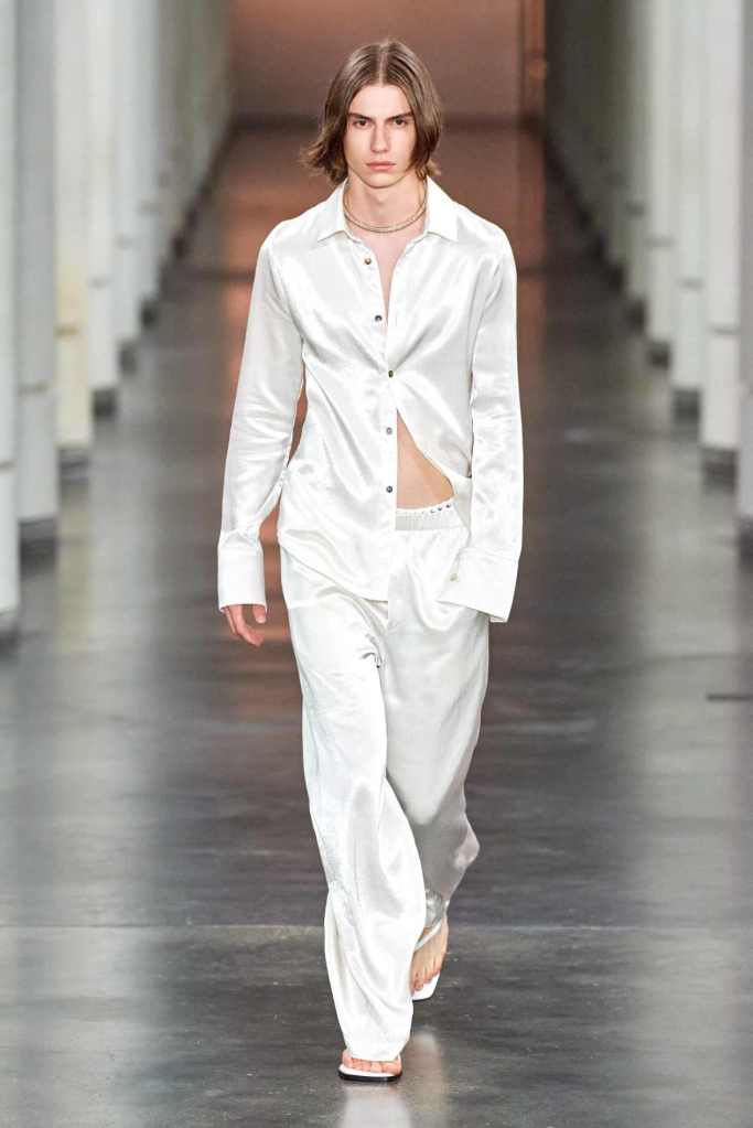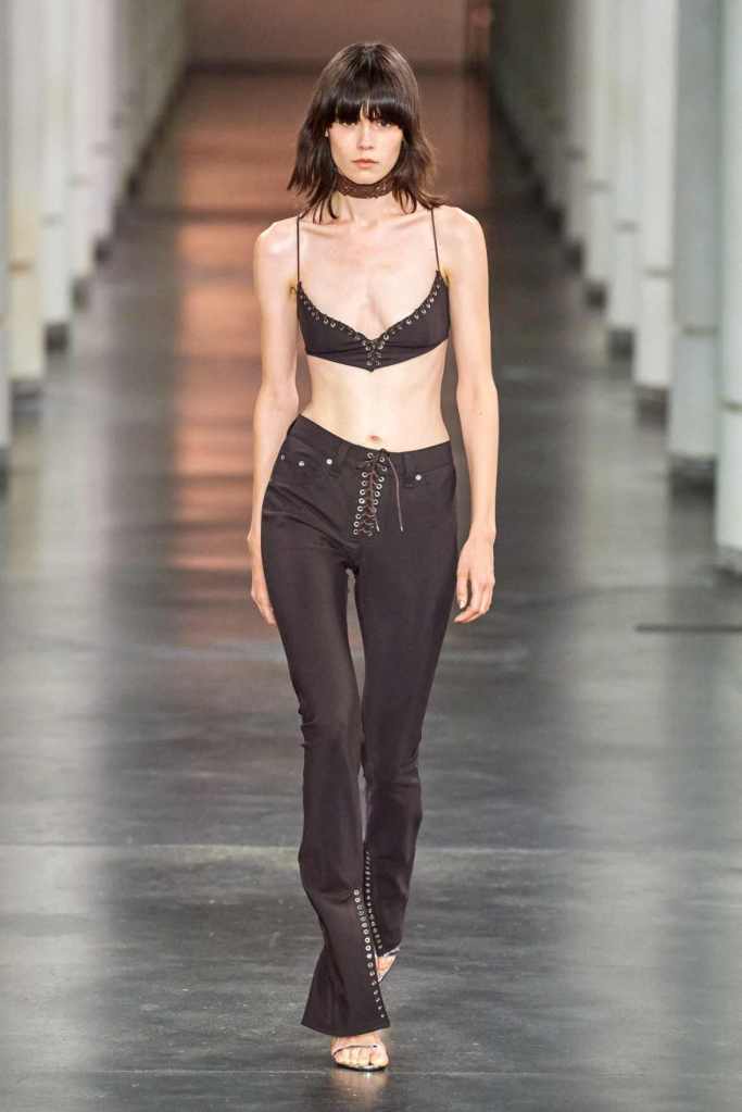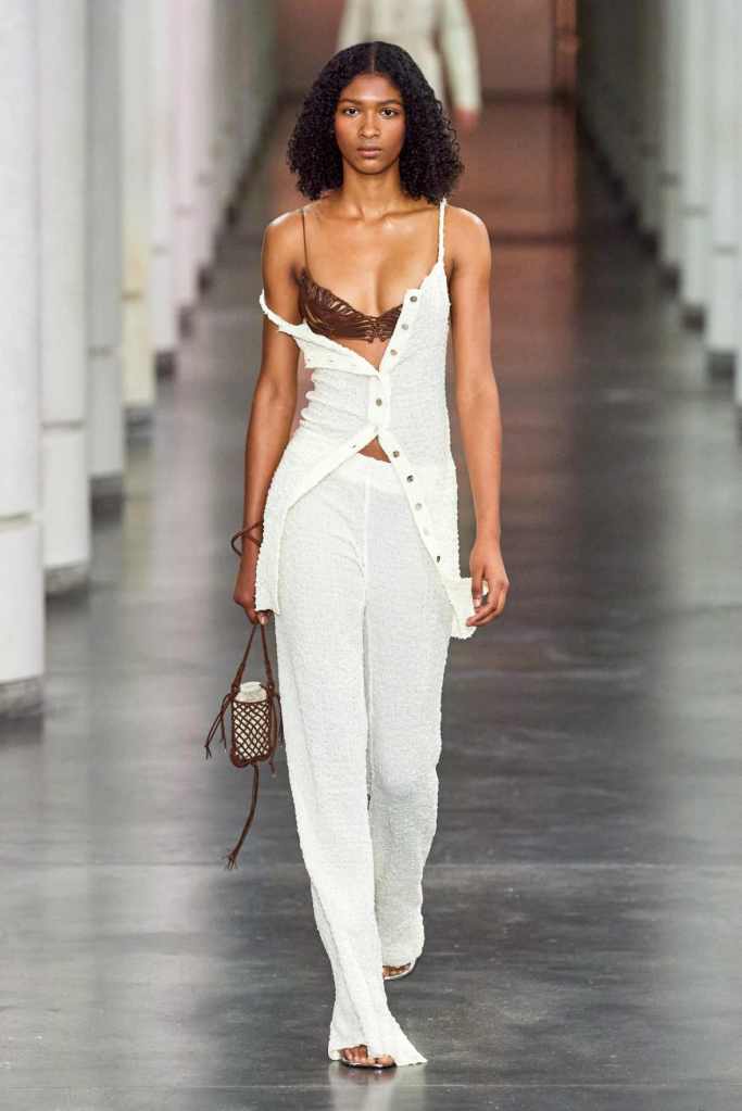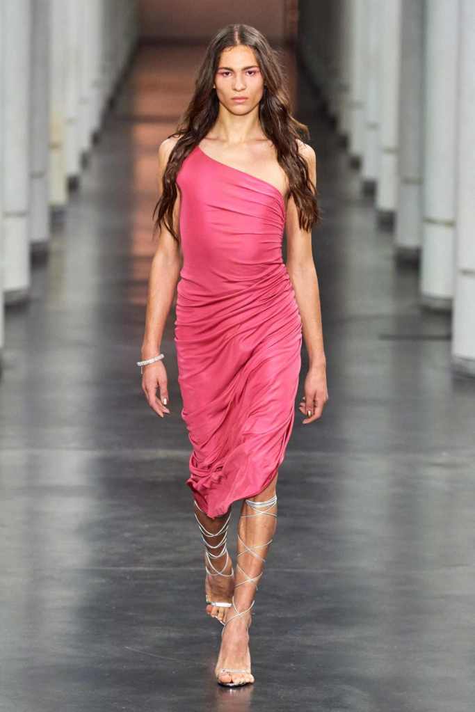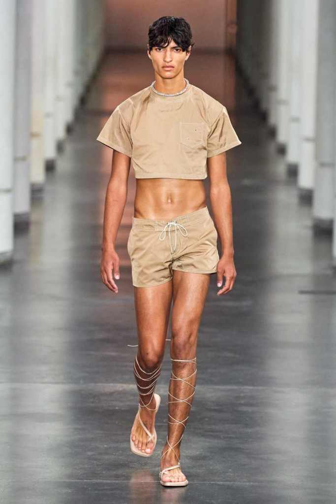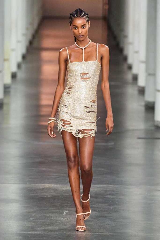 Ludovic de Saint Sernin sets the runway on fire, literally. From braided leather dresses to shimmery sheer dresses, he leaves no doubt that the point is to showcase the body. The French pioneer of sex-positive fashion unveiled a collection pulsating with sensuality. In collaboration with Pornhub, this provocative show pushed boundaries even more. Saint Sernin blurs the lines of intimate wear and outerwear, showcasing elasticated-waist pants, asymmetrical hems, micro bralettes, and ruched minidresses that cling and reveal. Fiery Hot Clothes – Love to see it!