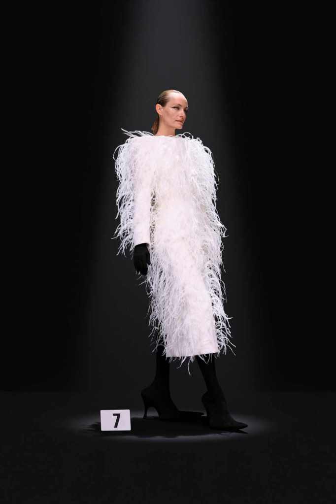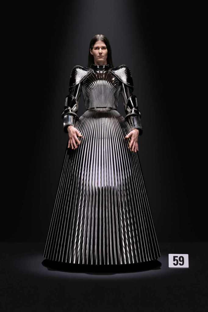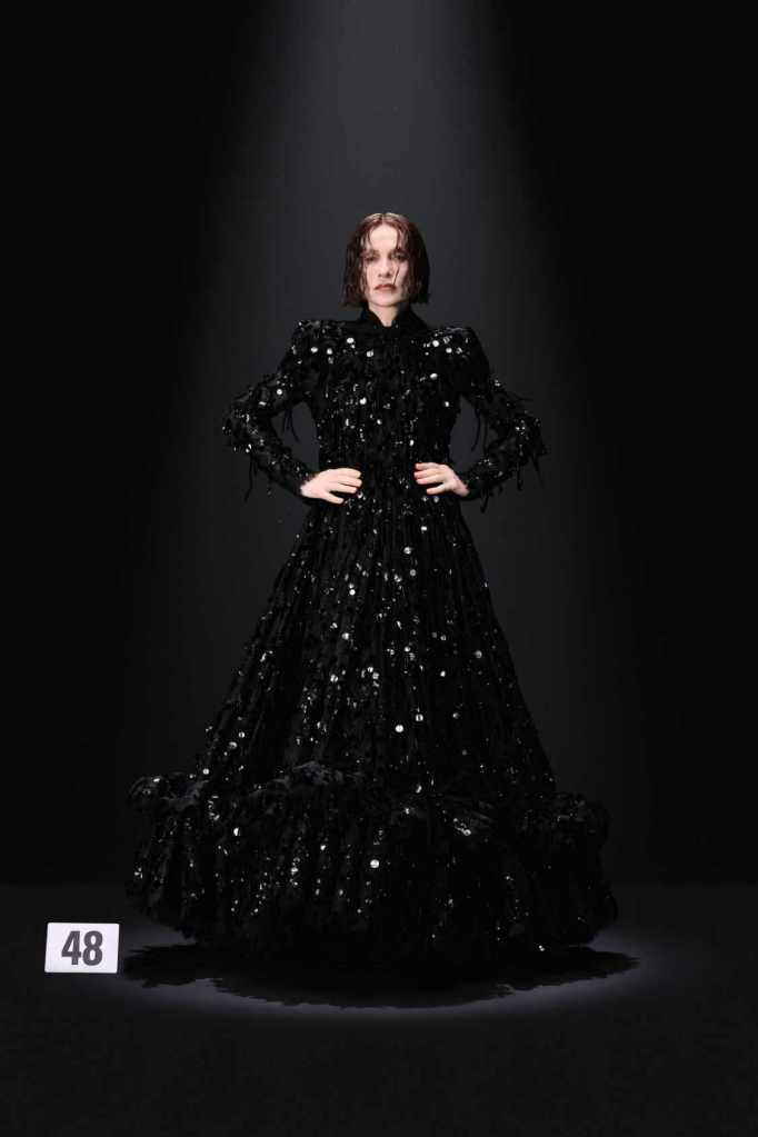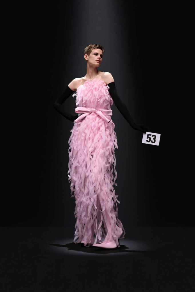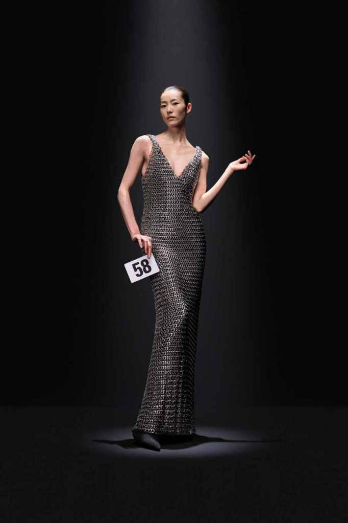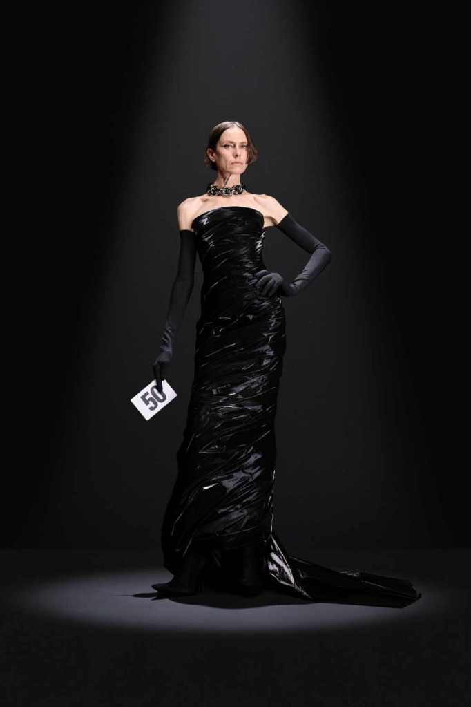 This collection is a bridge between past and present, honoring the art of couture while embracing innovation. The collection featured dresses entirely made of ribbons, trenches that look like they’re perpetually in motion, or denim that is actually oil-painted canvas. couture is a lot about details which Demna has been mastering quite well. His approach to creating garments that look exquisitely normal but have a rich history of technical construction has been the moat of this work. And of course, this is perfectly represented in the closing look was a 3-D printed chromed resin armor gown inspired by Joan of Arc. Craftsmanship of course impeccable with sharp silhouettes – suffice to say that the clothes were brilliant.