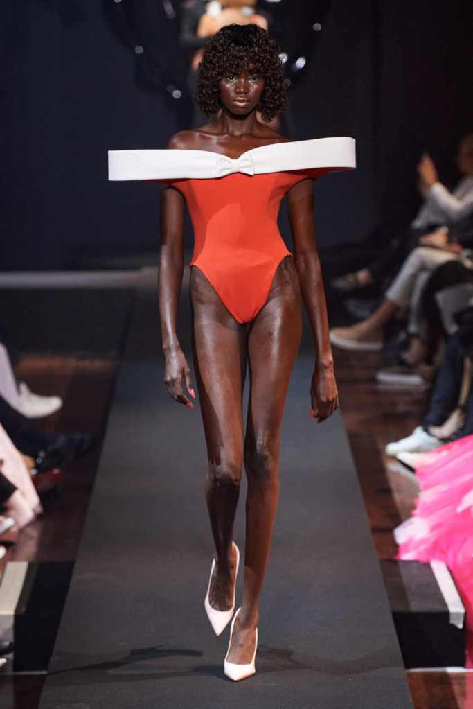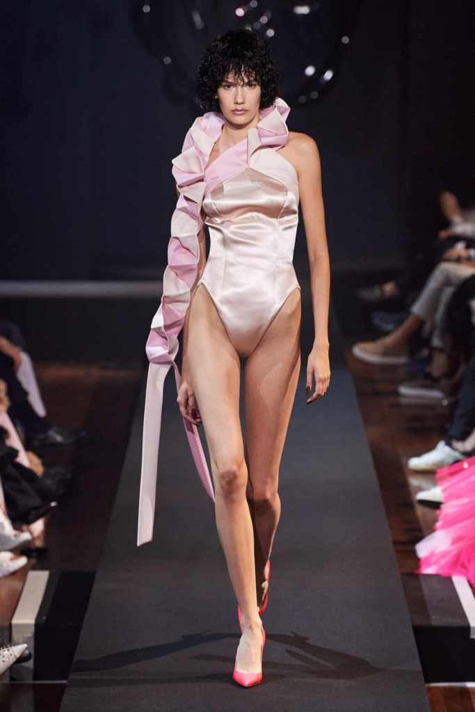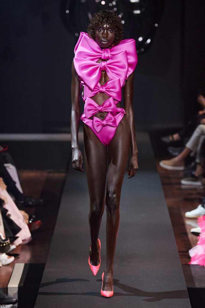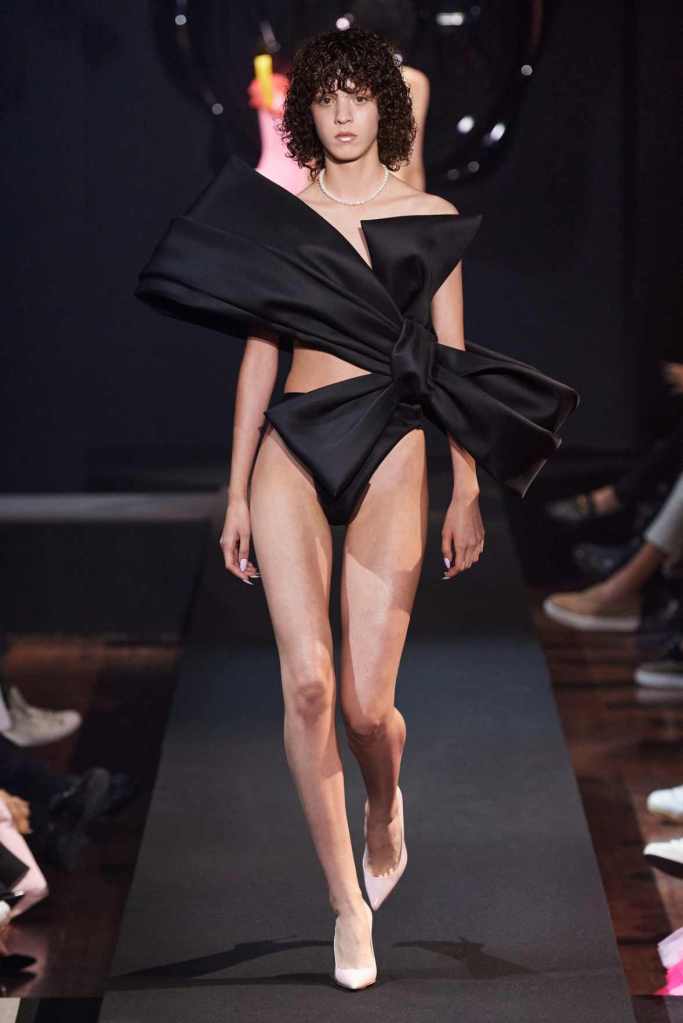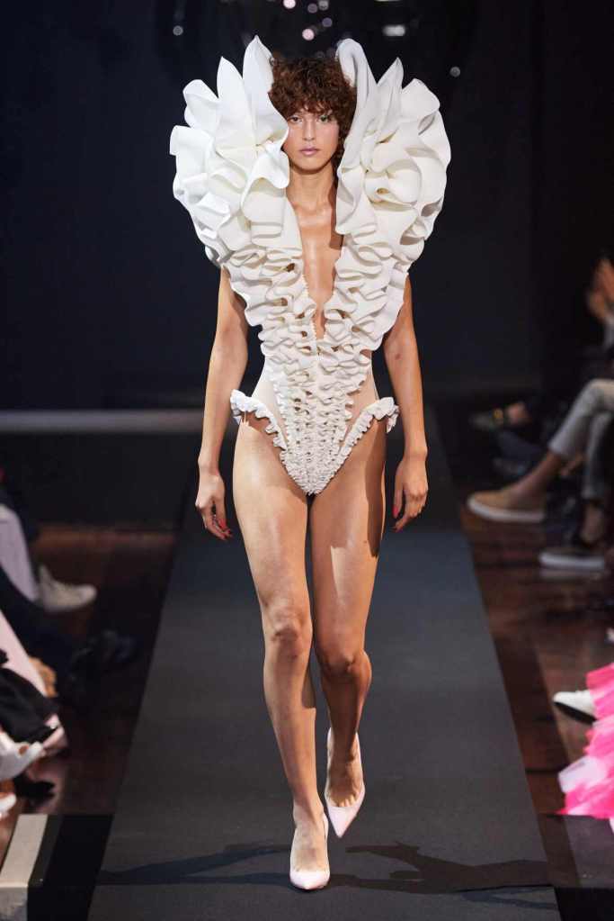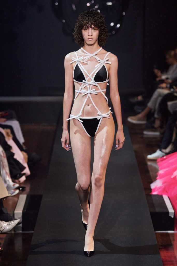 I do believe that it is next to impossible to dislike a collection by Viktor & Rolf. For this collection, the spotlight was on swimsuits. Even though there have been many couture swimsuits across the decades, I have never thought of swimsuits in a good Couture-esque way. The designer duo takes on the humble garment and transforms it into countless humorous interpretations. There are references to their own iconic ideas: heavy ruffles, 3D cubic catchphrases, massive bows, and headless mannequins hanging off the models. The designers have never been shy of experimentation, and this blend of an everyday clothing item into their landmark creative motifs is somehow very typical of them, but of course, it is unexpected.