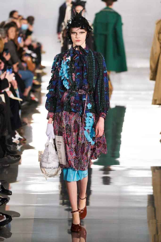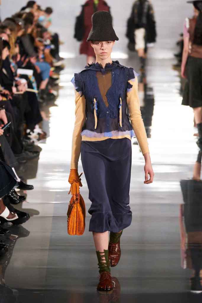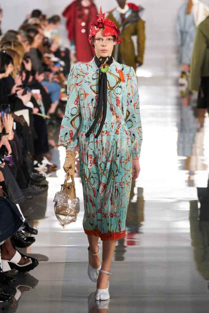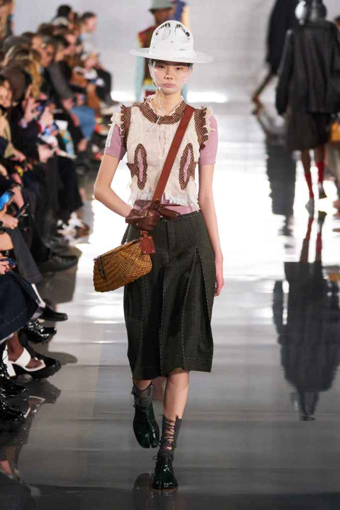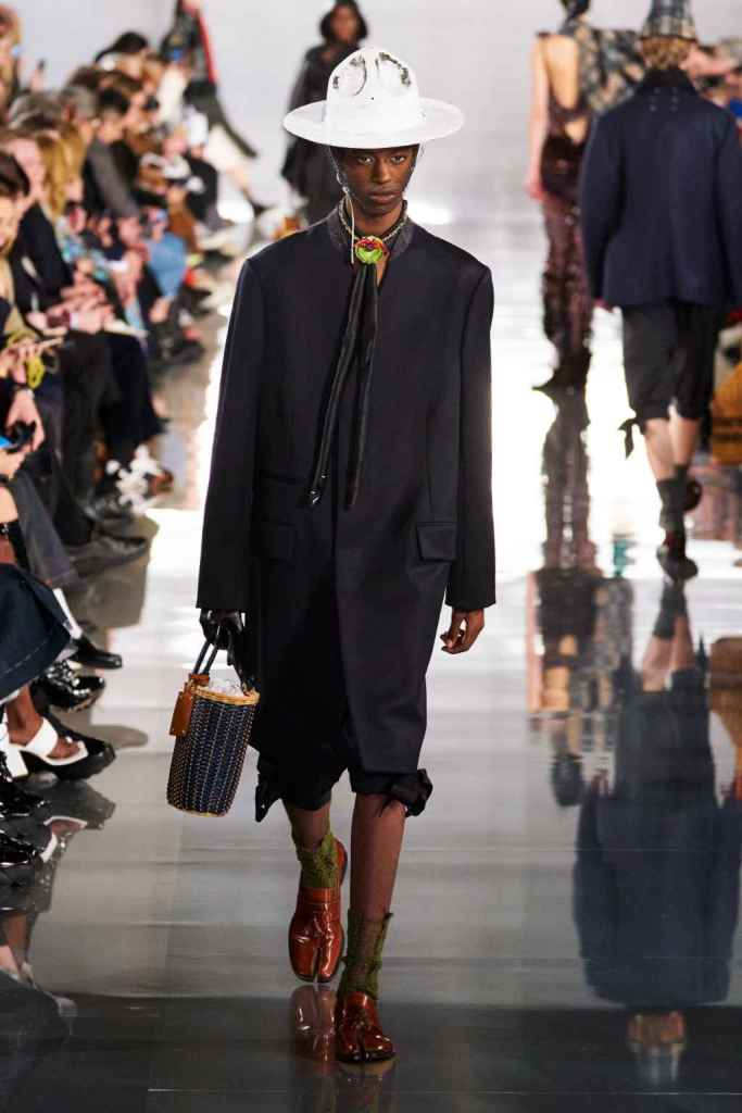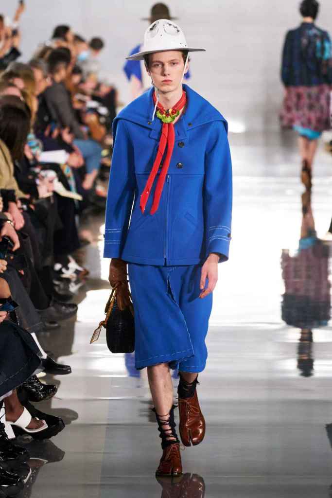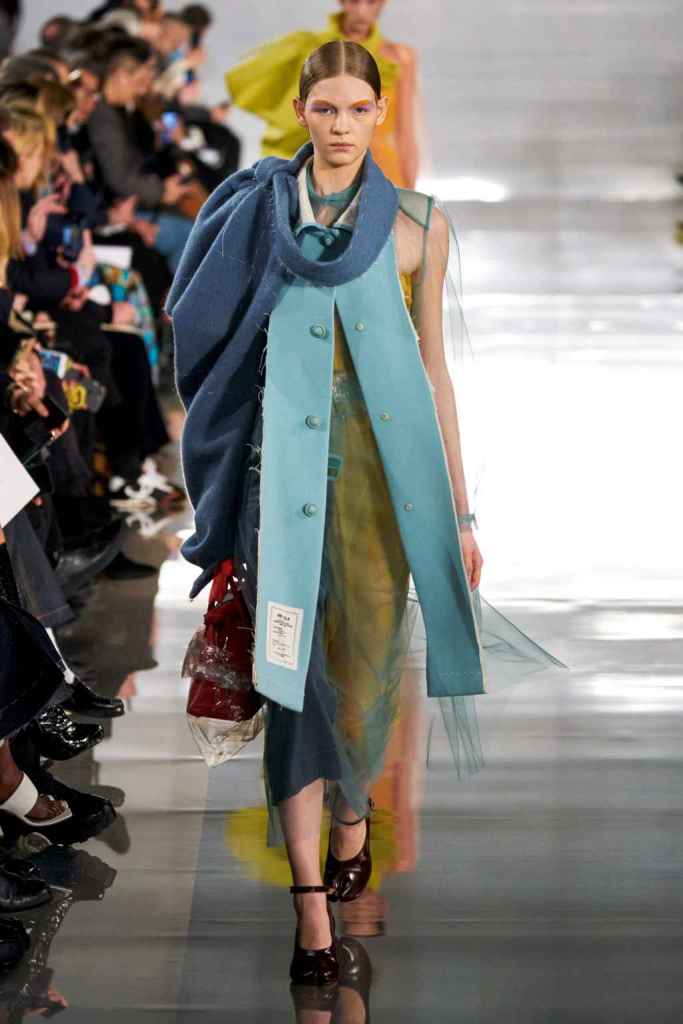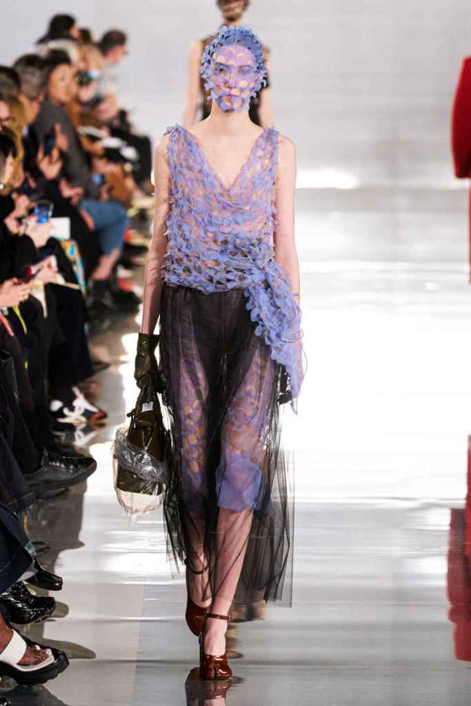 Galliano’s unparalleled skill shines through with ‘work-in-progress’ techniques, producing runway wonders that effortlessly transition into real life. The palette, inspired by Edward Hopper’s paintings, captivates with exquisite blues, greens, and oranges. Additionally, the ‘Recicla’ initiative brings vintage treasures back to life, intertwining them with modern designs. The deconstruction process becomes an art form in itself, as elements are rearranged and recontextualized to create new and unexpected compositions. The raw edges, exposed seams, and asymmetrical cuts become visual narratives.