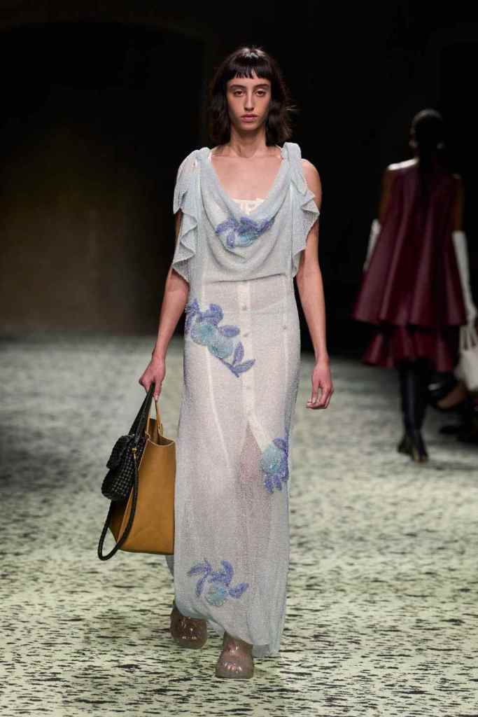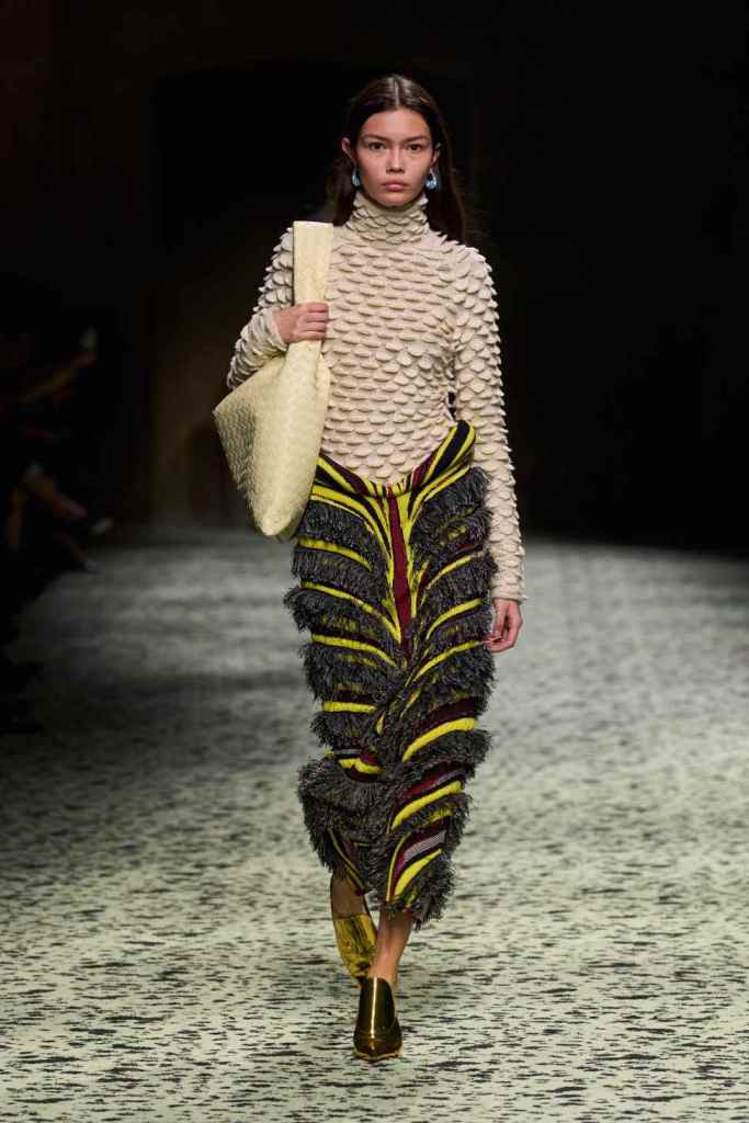 This third installment in the series is unique because it continues to redefine what it means to be luxury. Matthieu Blazy has successfully wow-ed us three times in a row; This season marks the conclusion of Matthieu Blazy’s ‘Italia’ shows for Bottega Veneta. The brand abandons its perception of luxury and focuses instead on the perfection of fundamentals. The clothes are the essence of lowkey chic; an idea the brand has always stood for. Garments feature luxurious textures and fabrics used to craft silhouettes ranging from structured to flowy. Range is the keyword here, but also brings the question of did we really need 81 looks. His vision could be summed up in a much simpler streamlined way, nevertheless, the clothes were beautiful. We also saw a wide range of options ranging from daywear to tropical to subtle evening wear and some ultra-chic workwear. The designer imagines this collection to be a parade in Italy, a mighty well-dressed parade. Simplicity wins us over with this collection; it translates and solidifies Blazy’s work in the best way possible.