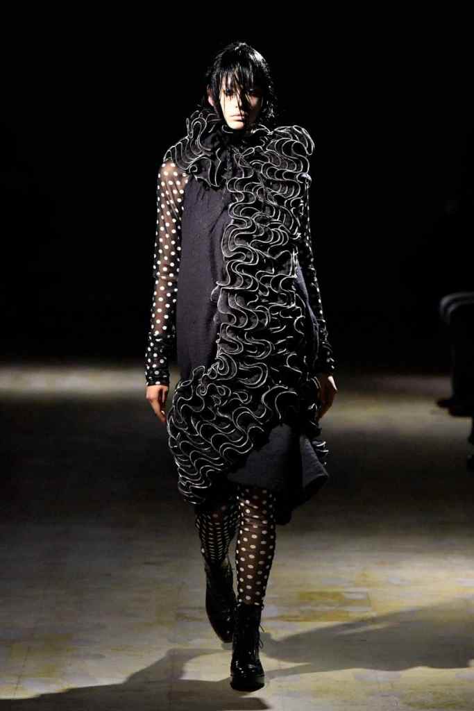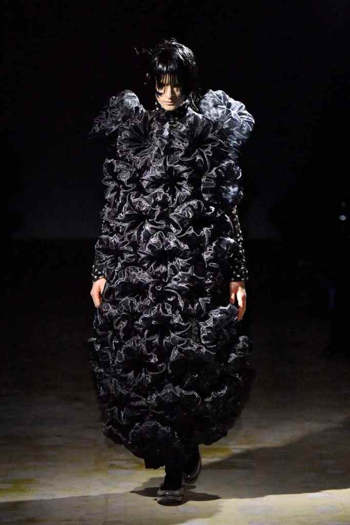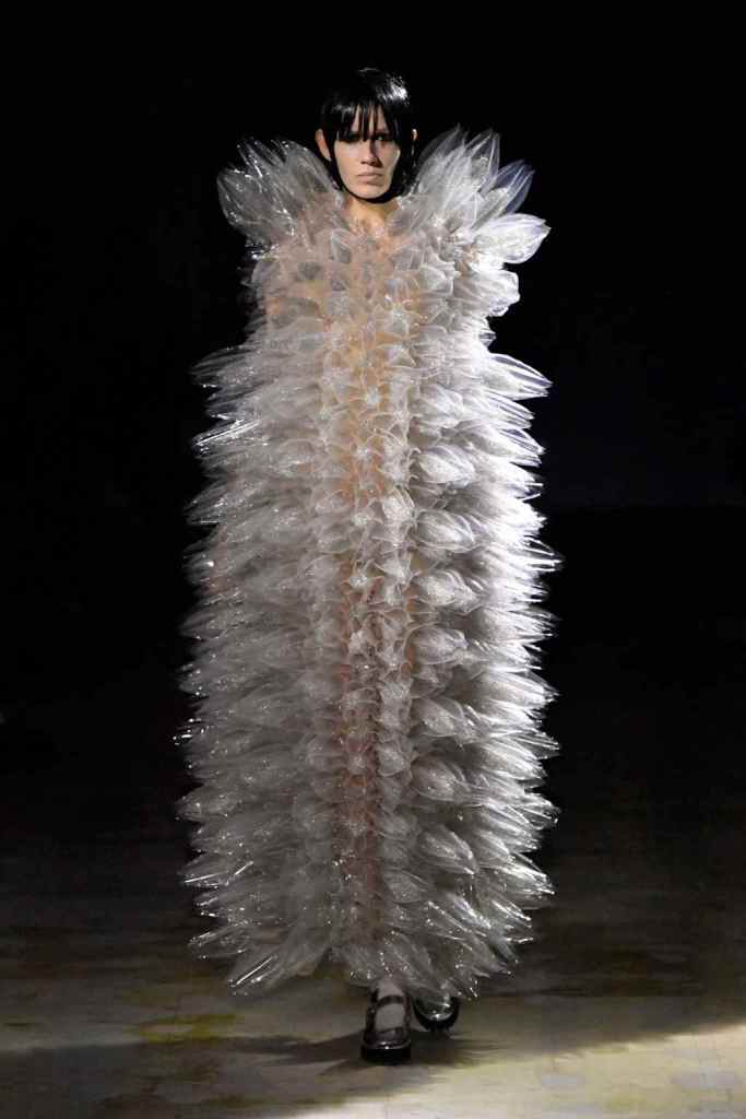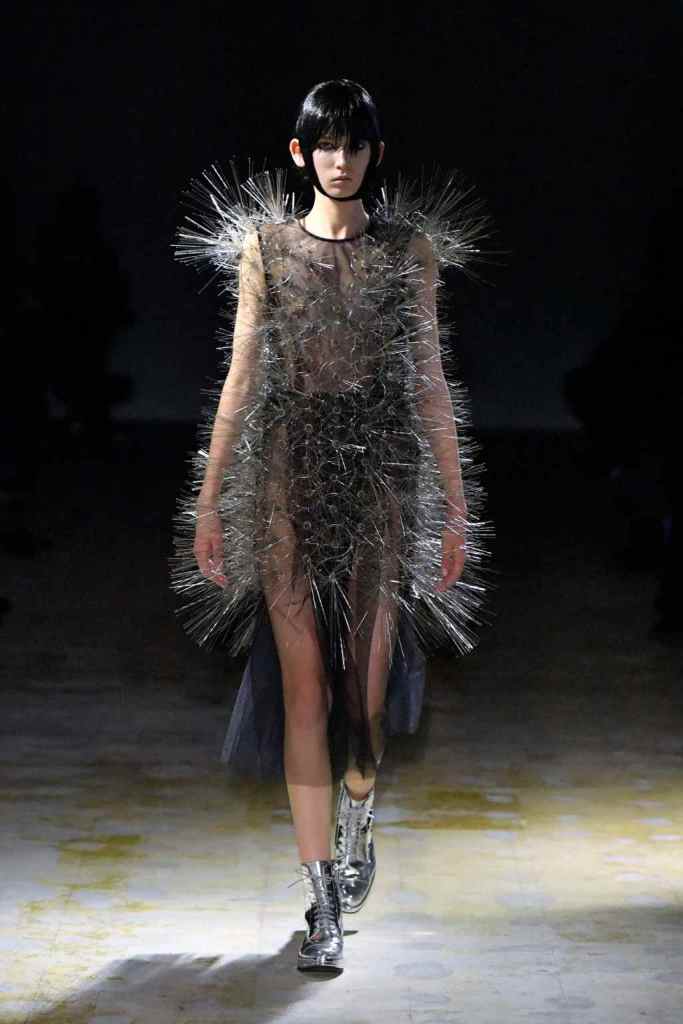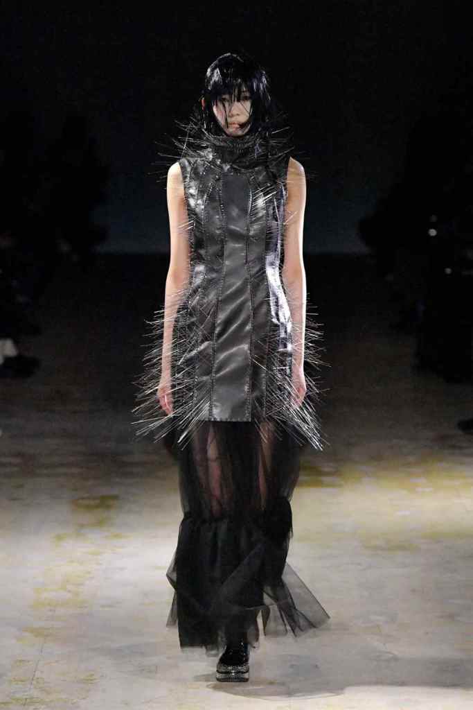 With stainless-steel spikes dominating the pieces, It’s no surprise that the designer coined this collection as ‘Metal Couture’. With an unwavering determination to defy conventions, he embarked to reshape the very essence of these metal elements. Through an exploration of experimental silhouettes, the designer challenges the very essence of form and texture, transcending the limits of traditional aesthetics. Ninomiya invites us to venture beyond the realm of ordinary fashion, and I’m thrilled to explore.