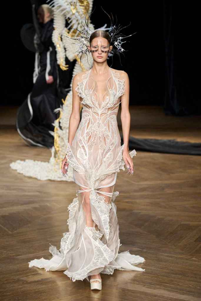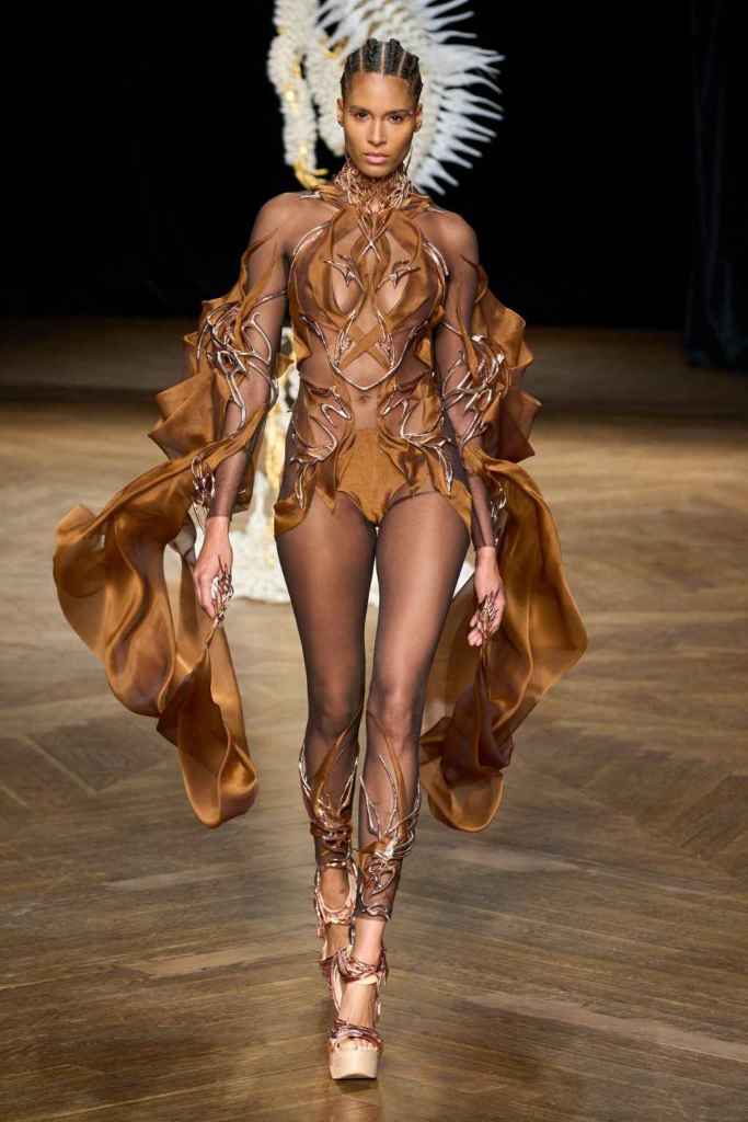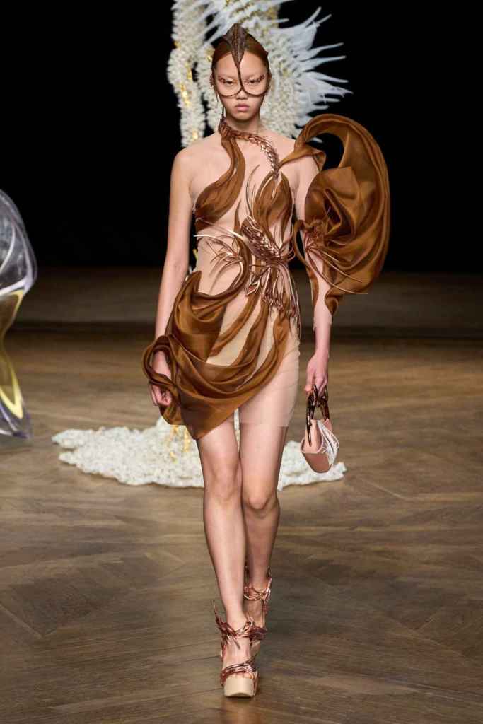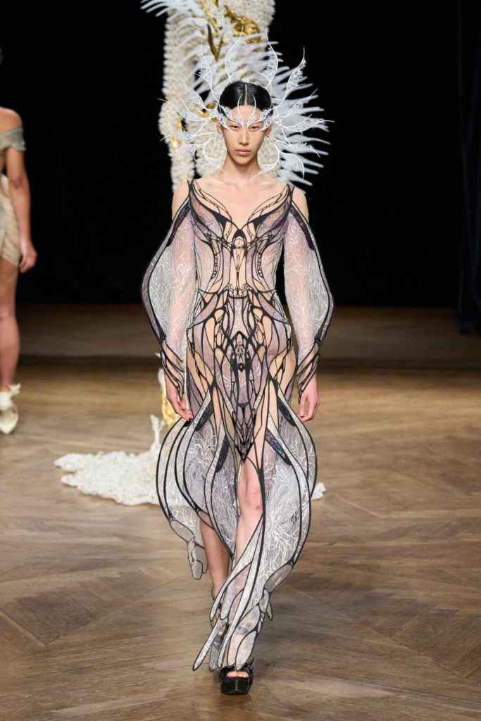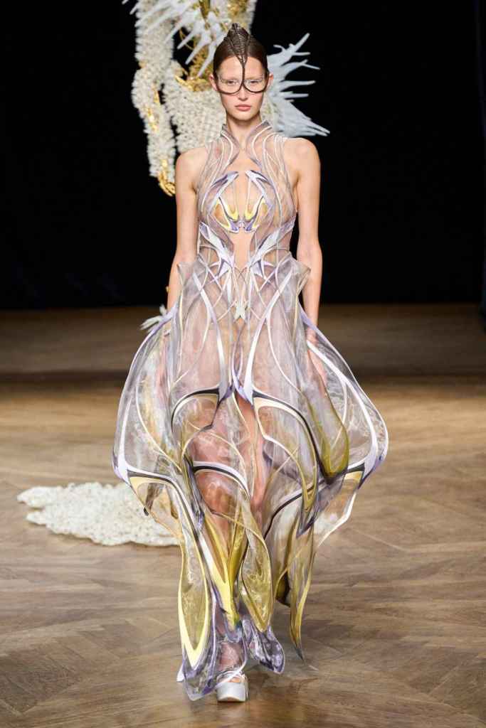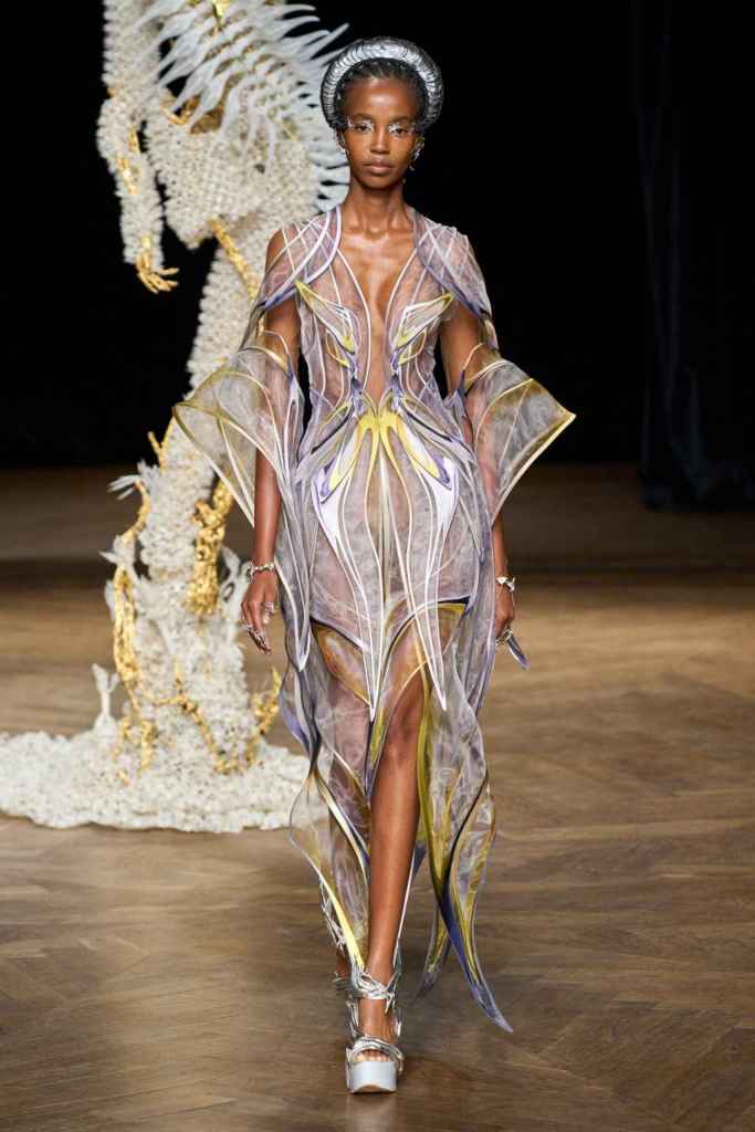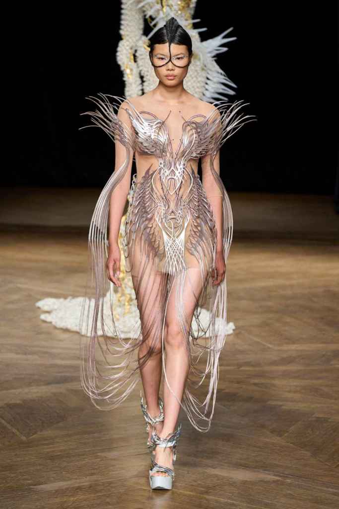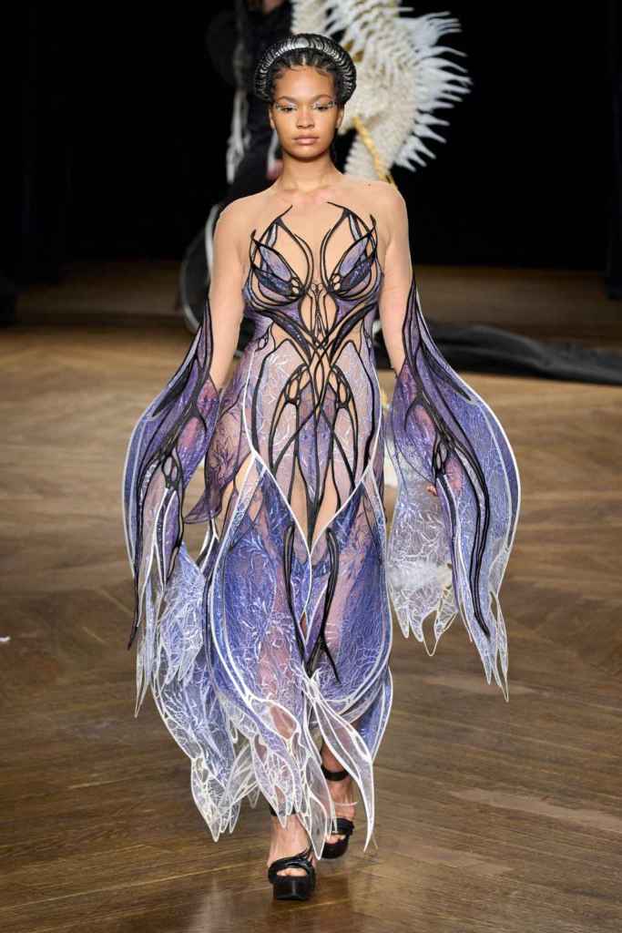 The brand has been game-changing in how we perceive Couture and fashion tech. From biodegradable fabrics to 3D printed innovation, Iris’s creations blend sustainability and artistry. Truly avant garde designs and immaculate details bring life to this collection. From the nails to braids there was sophistication in everything. She has been at the forefront of merging technology and couture, redefining the boundaries of what couture needs to be.