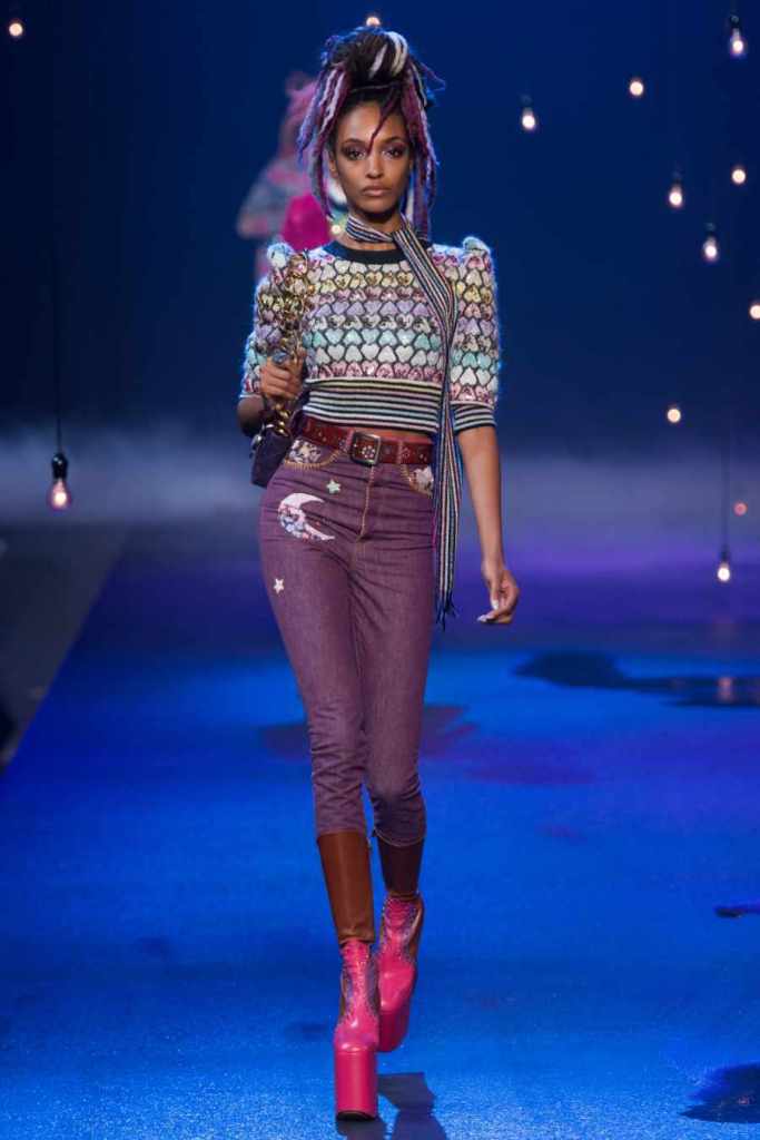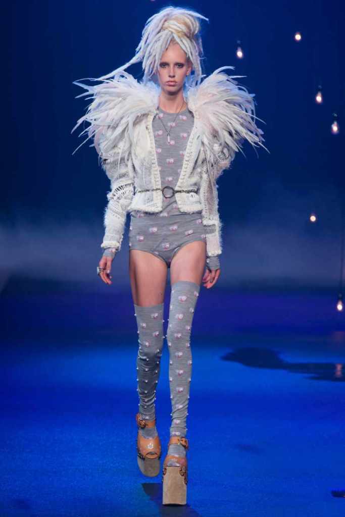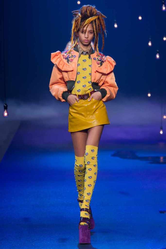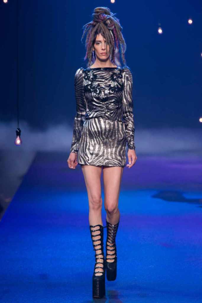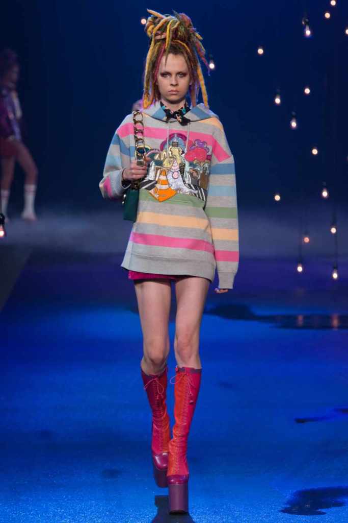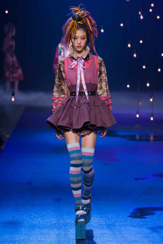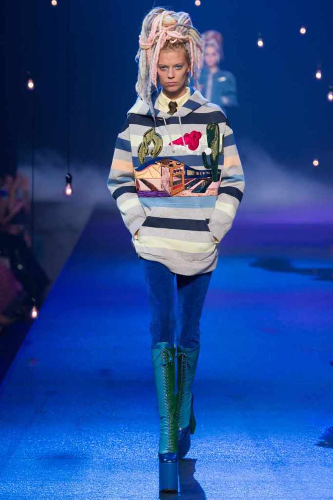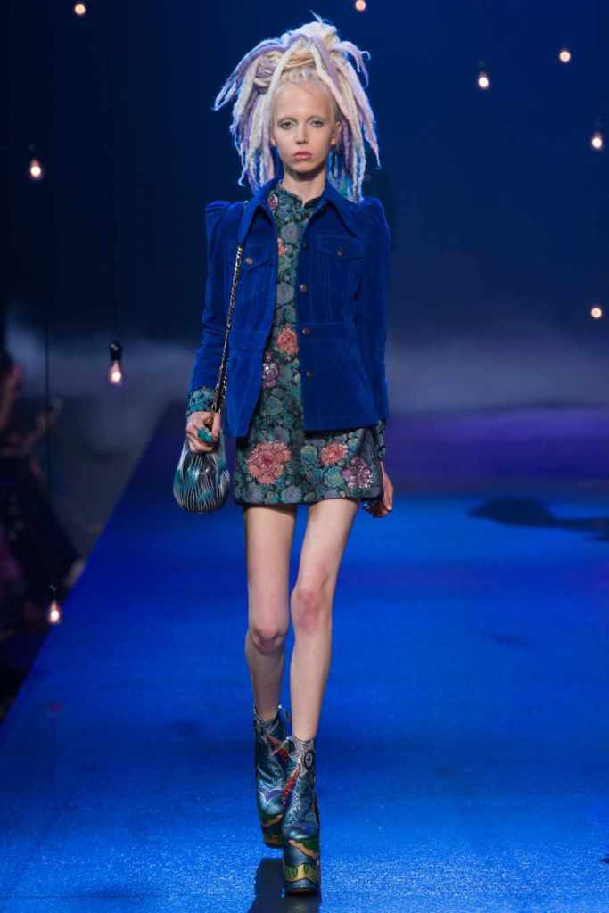 The clothes blended high school, streetwear, circus, and rave aesthetics, creating a captivating fusion of styles. With a nod to the mid-2010s outfit trends, Marc Jacobs managed to exude surprising chicness. Apart from the dreadlocks, it was a remarkably powerful collection by Jacobs. Amidst the sparkle, camouflage, satin, and snakeskin, the fusion of metallic extravagance and everyday staples was well achieved. Mini high-waisted shorts, towering platform boots, Victorian blouses, candy-colored hoodies, and an array of statement jackets were the defining pieces of the lineup. The message was clear: dress boldly.