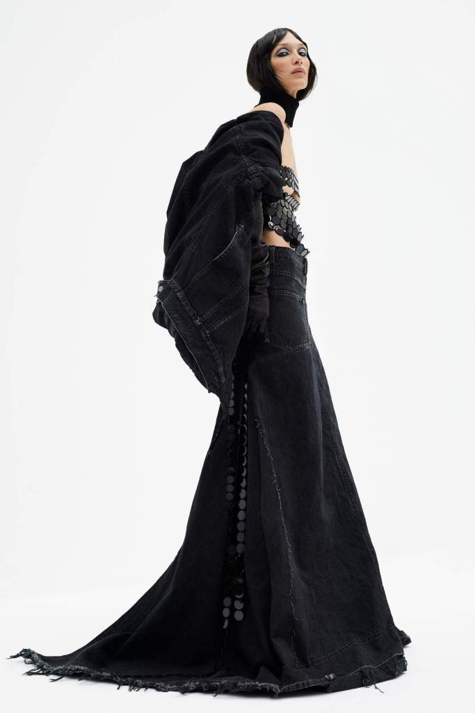 This collection was almost slowing down with a focus on the cloud-like exaggerated silhouettes Marc Jacobs has been tooling with for the past couple of seasons. Jacobs expands on these concepts through monochrome looks, oversized garments, and enormous proportions. The collection features a restrained neutral color palette with pops of striking red and soft yellow. We also see some of the mega-high platforms that Jacobs has embedded into every fashion girl’s heart. In a fusion of deconstruction and glamour, cargo pants are transformed into skirts, monograms turn into fringe, and plastic paillettes are adorned with post-apocalyptic flair.