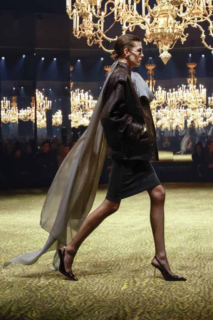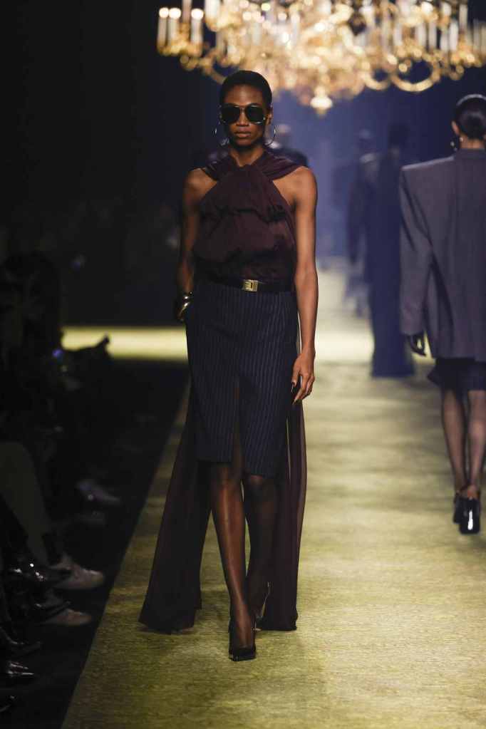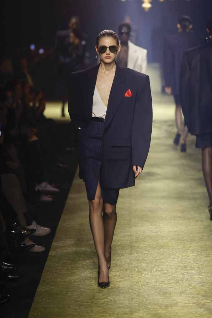 Anthony Vaccarello brought some serious class and glamour to the table. His collection featured oversized blazers with sharp shoulders paired with slim-fitting pencil skirts, creating a retro-inspired office look. The collection also had some badass ’80s glam rock elements, with tons of luxe expertly layered together. The androgynous clothes blurred gender boundaries effortlessly and with sophistication along with timeless glamour. Vaccarello’s exceptional show solidifies that he is moving the brand in the right direction. Vaccarello chose to forego his previous typically extravagant fashion shows for a more subdued, intimate, and vintage feeling event. The clothes are sensual and make the wearer feel the same. Saint Laurent equals Desire, and this collection is a testament to that.