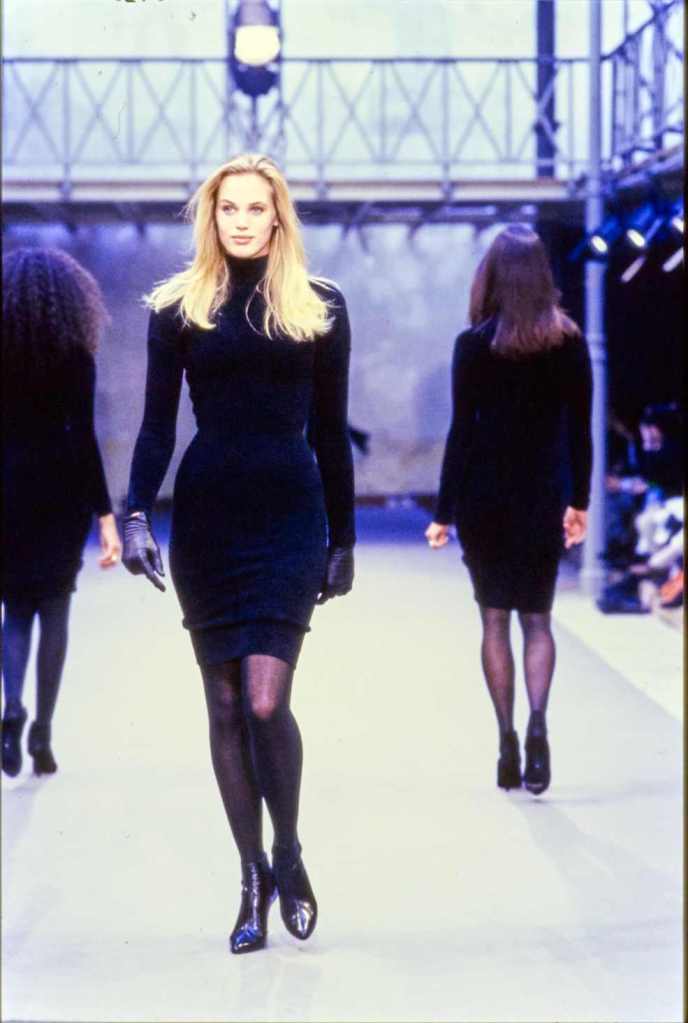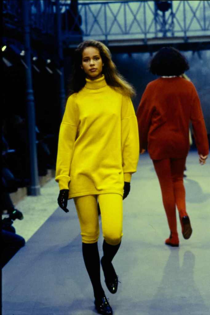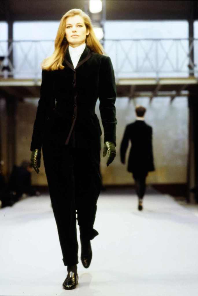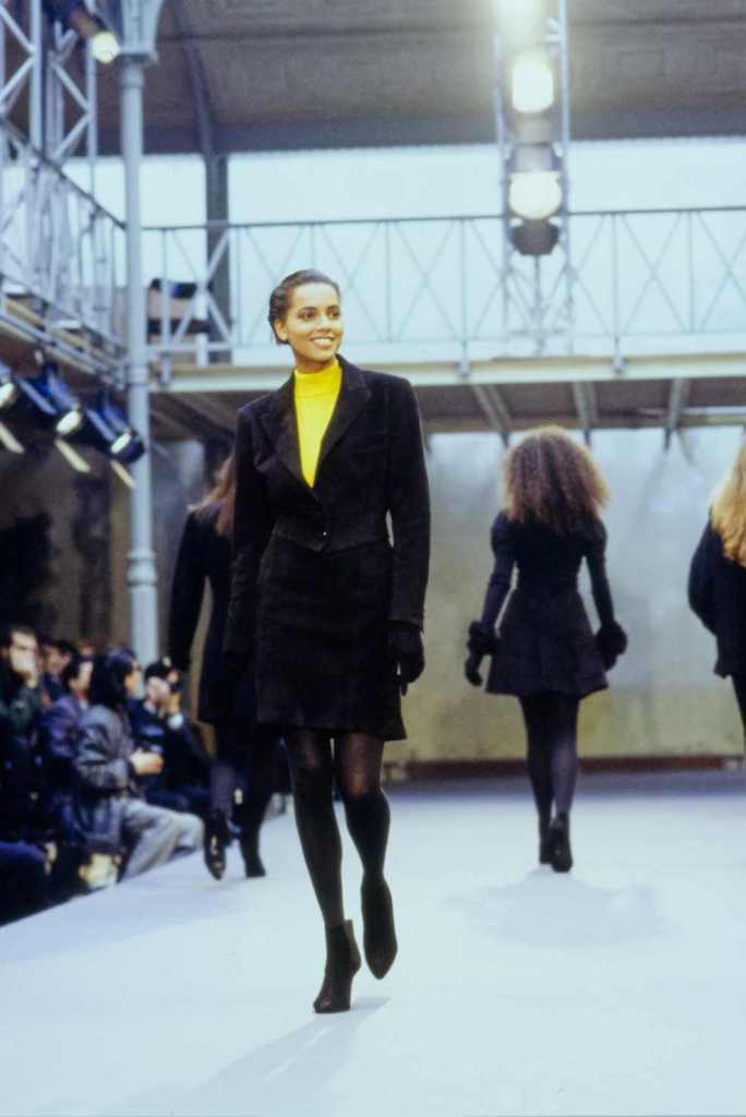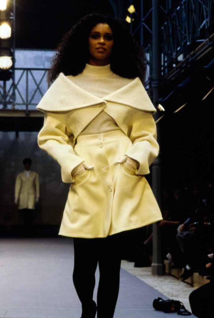 Clothes by Azzedine Alaïa were never conservative but if there was a connection that lean in that direction it was this one. We saw big collared trench coats, sharply tailored coat dresses, body-hugging knit dresses sculpted to perfection, and some flowy shiny bias-cut minidresses. The collection was mostly in black with pops of yellow, orange red here and there. Alaïa was never a minimalist but his clothes carried a sense of sophisticated simplicity is hard to come by, especially when paired with his signature seductive appeal. This collection portrayed exactly that.