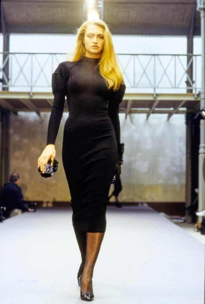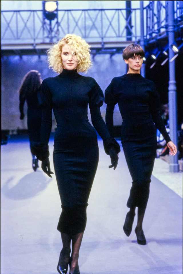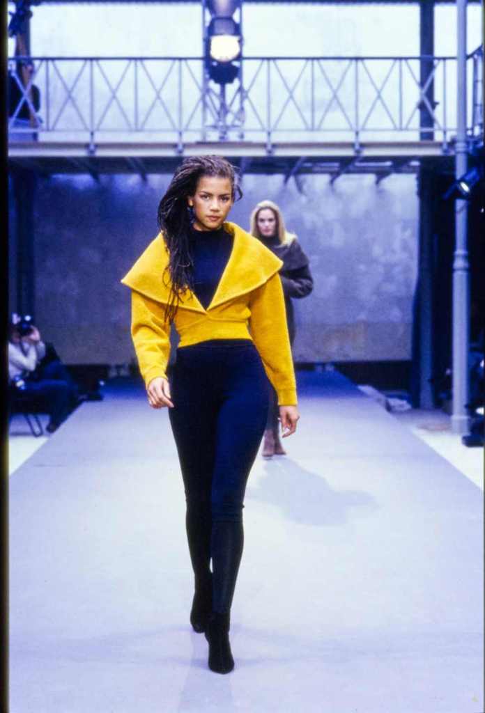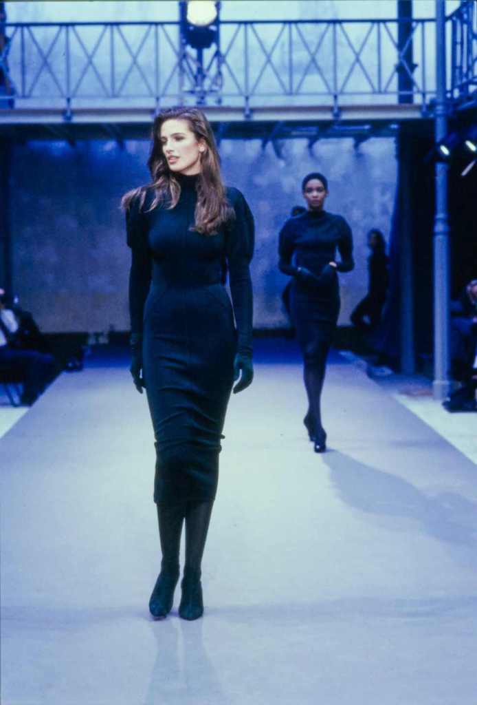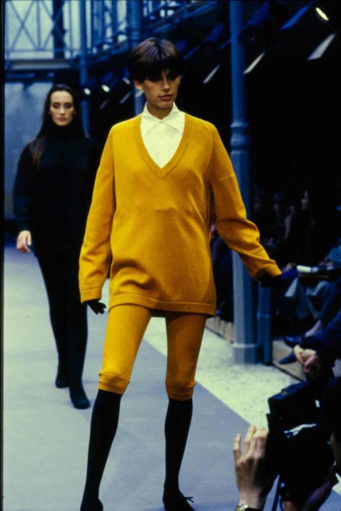 Clothes by Azzedine Alaïa were never conservative but if there was a connection that lean in that direction it was this one. We saw big collared trench coats, sharply tailored coat dresses, body-hugging knit dresses sculpted to perfection, and some flowy shiny bias-cut minidresses. The collection was mostly in black with pops of yellow, orange red here and there. Alaïa was never a minimalist but his clothes carried a sense of sophisticated simplicity is hard to come by, especially when paired with his signature seductive appeal. This collection portrayed exactly that.