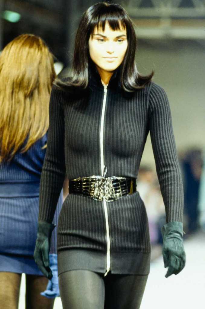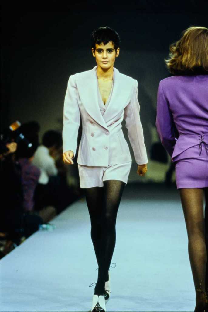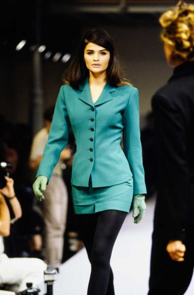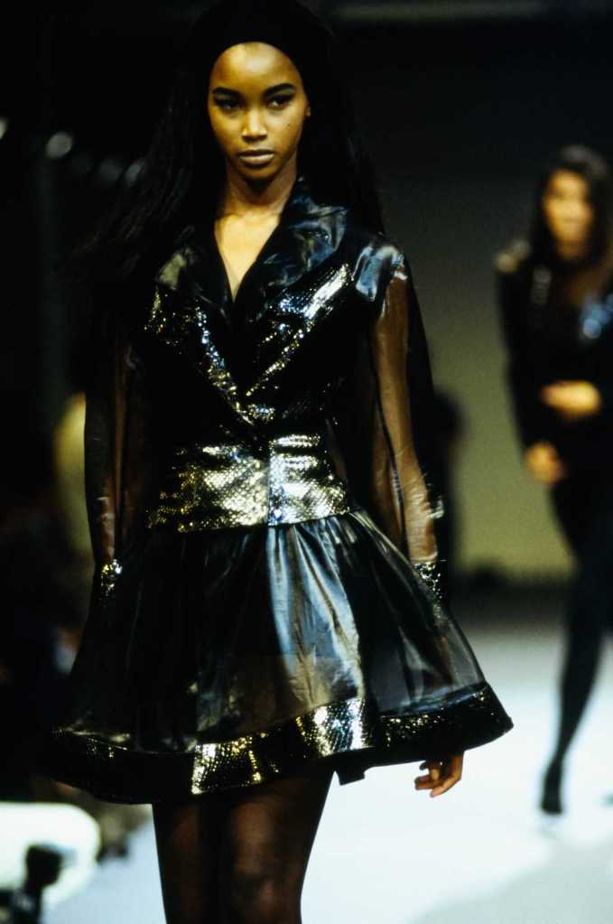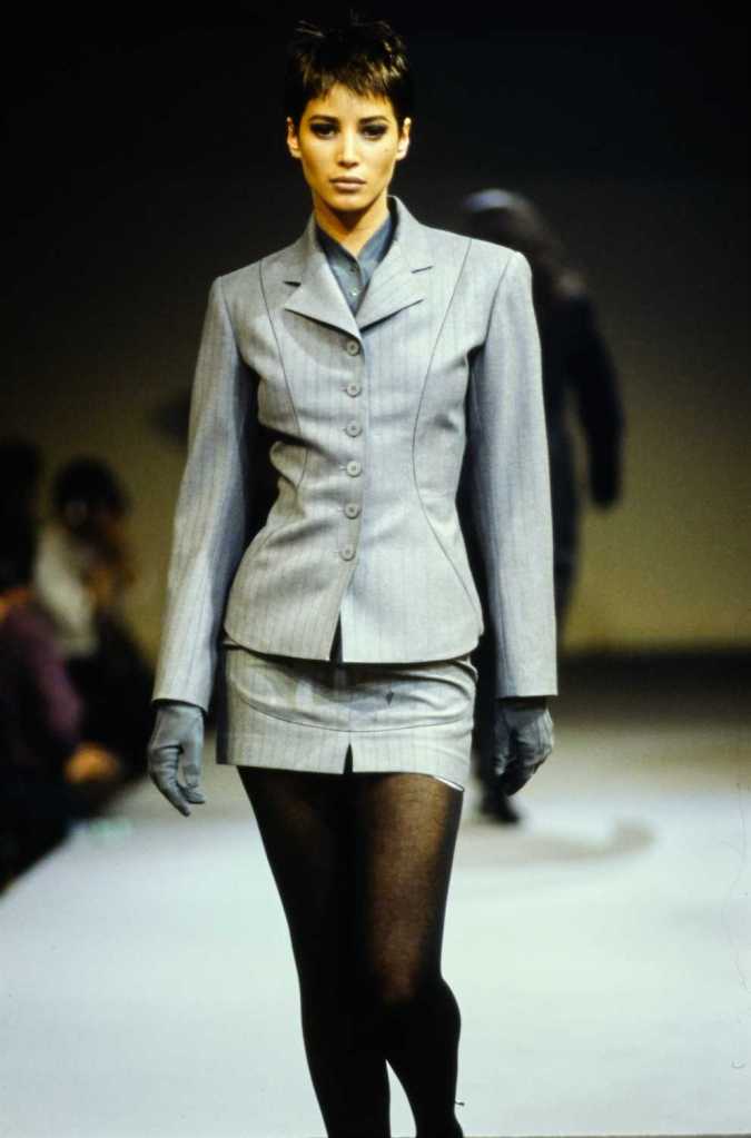 This collection was a lot about super sexy tiny skirt suits – who doesn’t love that? There are suits in classic pinstripe, colorful suede and some ultra-glossy leather. The clothes capture the perfect blend of 80s extravaganza with 90s minimalism – workwear made salacious. The show ends with a slew of cocktail dresses from shimmery disco balls to hot leopard print minis.