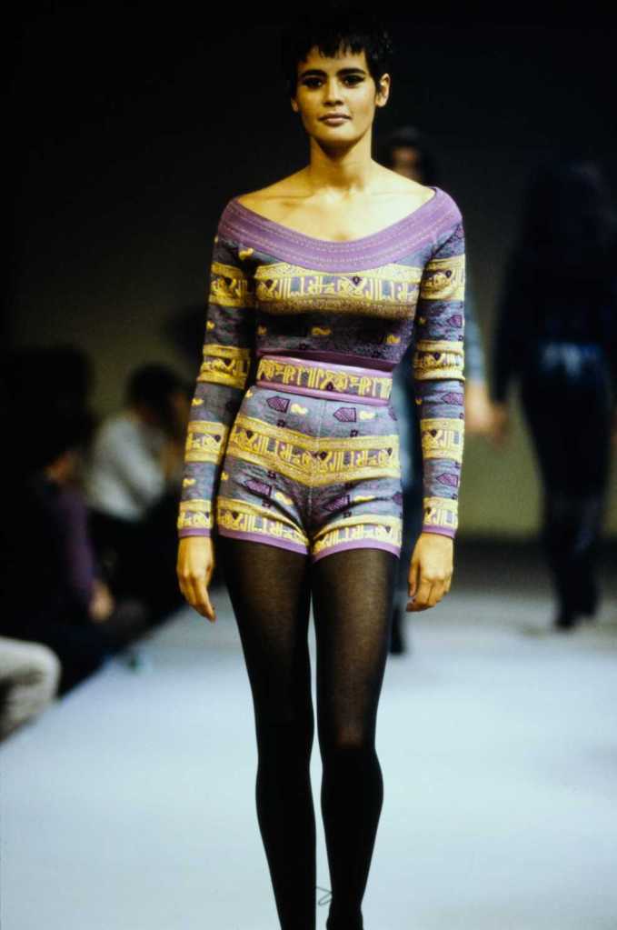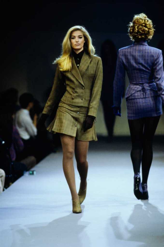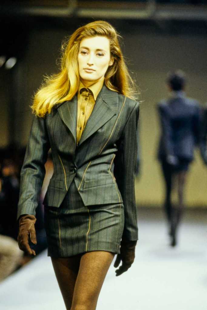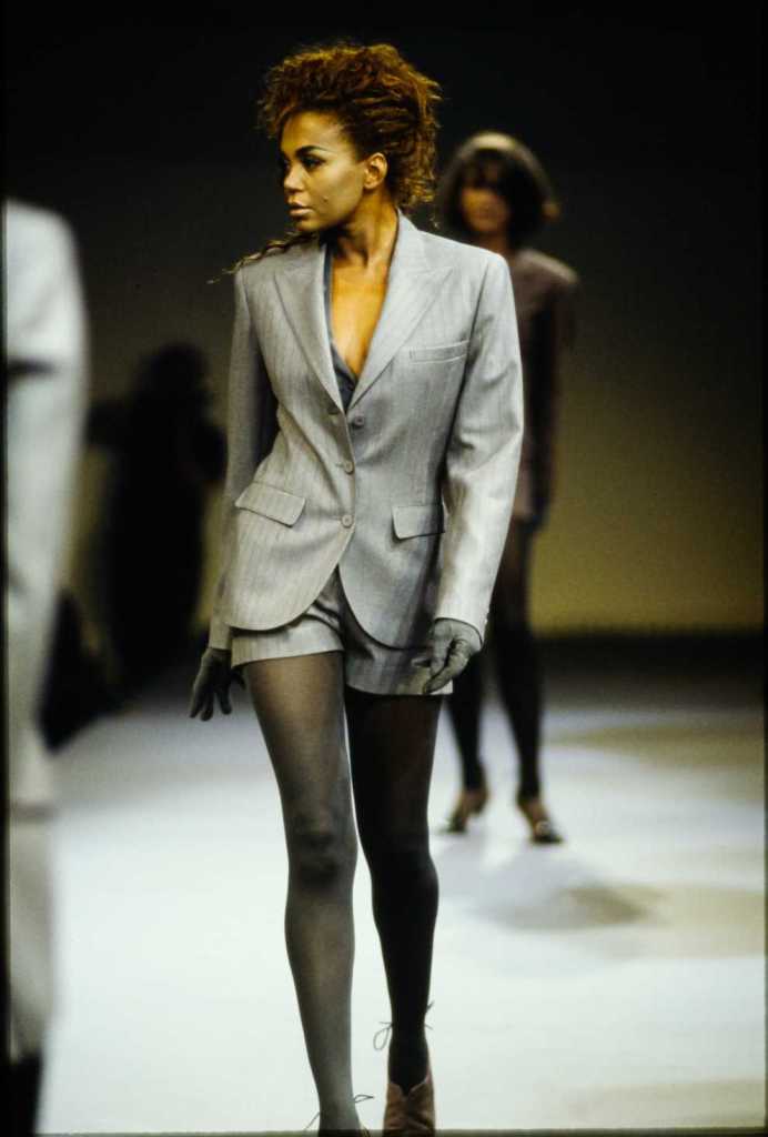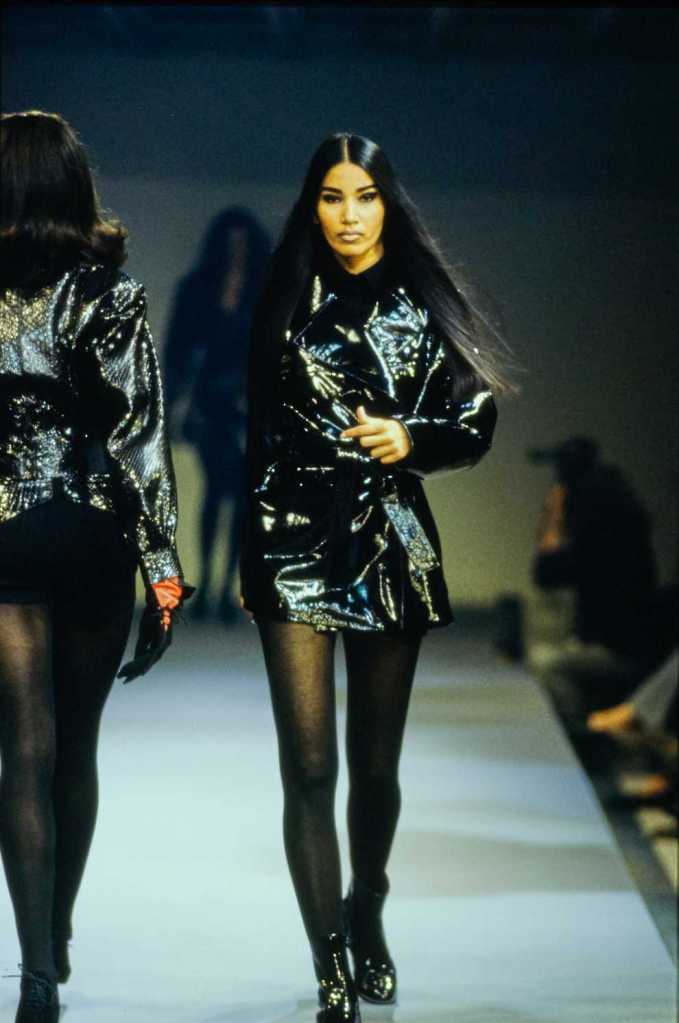 This collection was a lot about super sexy tiny skirt suits – who doesn’t love that? There are suits in classic pinstripe, colorful suede and some ultra-glossy leather. The clothes capture the perfect blend of 80s extravaganza with 90s minimalism – workwear made salacious. The show ends with a slew of cocktail dresses from shimmery disco balls to hot leopard print minis.