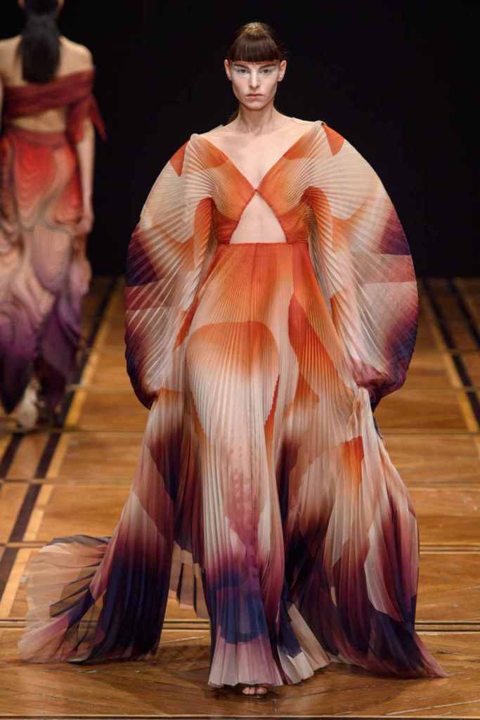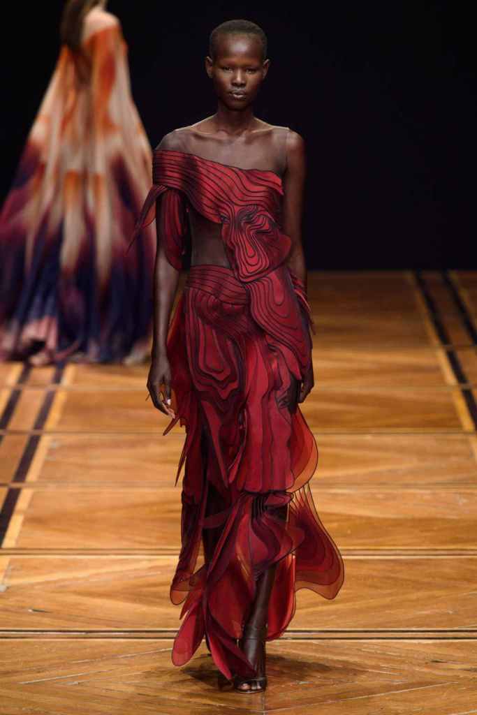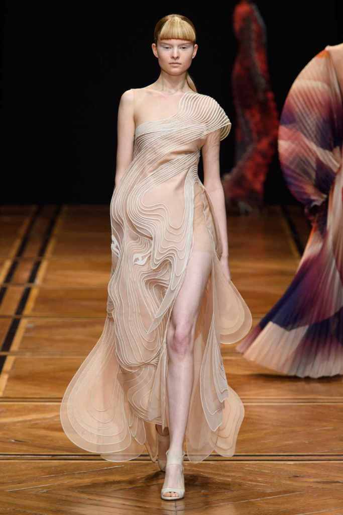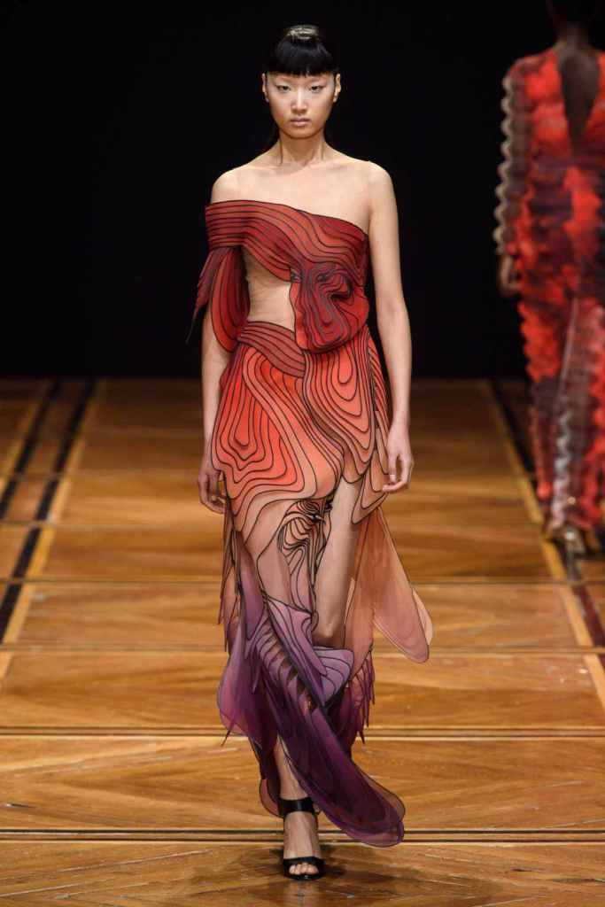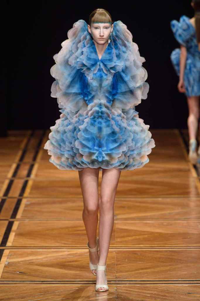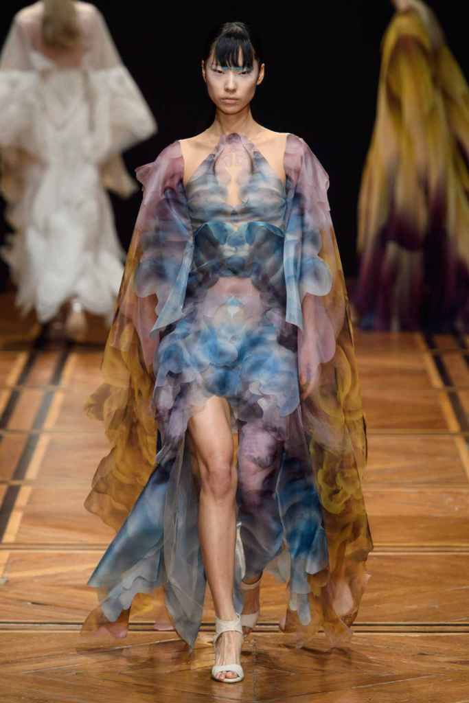 By blending elements of history, science, art, and the future, Van Herpen crafts a mesmerizing statement. From jewelry that molds to the contours of the face using 3D printing to dresses resembling ethereal clouds made of translucent organza, her creations evoke a sense of surrealism and elegance. This collection, ‘Shift Souls’, embraces a sense of lightness and delicate silhouettes, capturing the true essence of femininity. Van Herpen’s artistic journey paves the way for new possibilities and leaves an enduring impact. ‘Surreal Cosmica’ merges midnight-blue gowns, celestial cartography, and whimsical elements into ethereal cloud-inspired minidresses. Inspired by Kim Keever’s artistry and Iris van Herpen’s vision, it explores the fluidity of identity and the beauty of Couture.