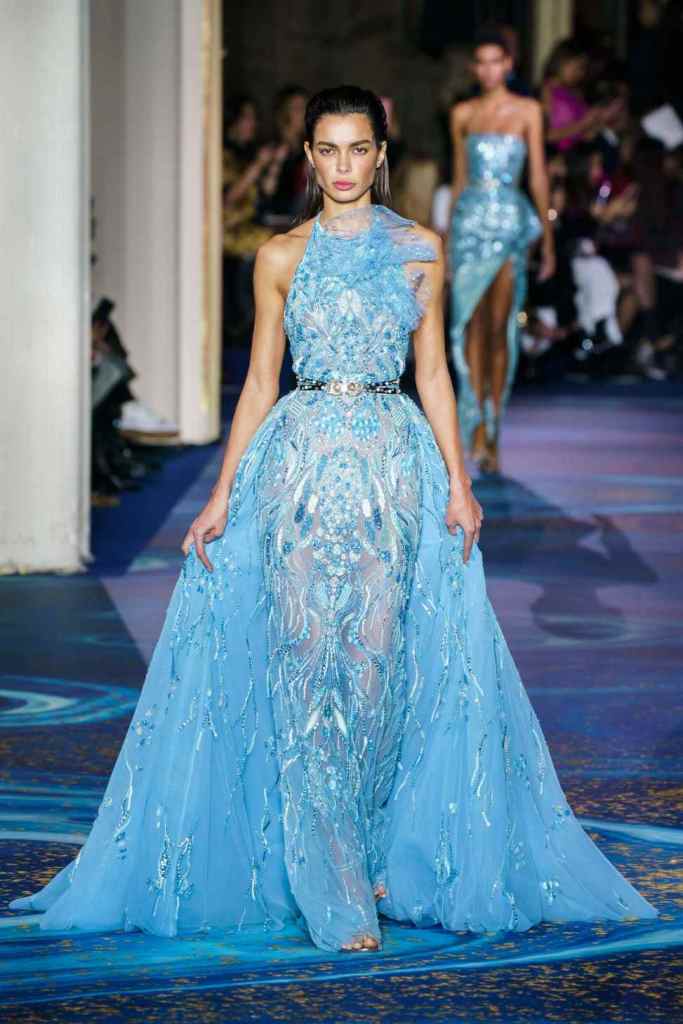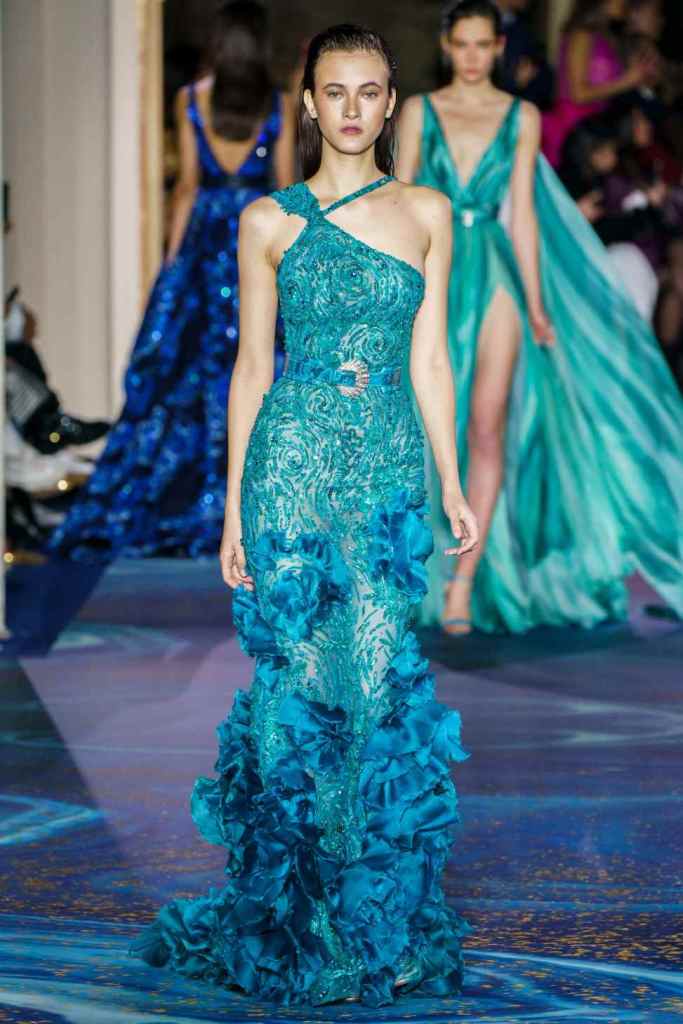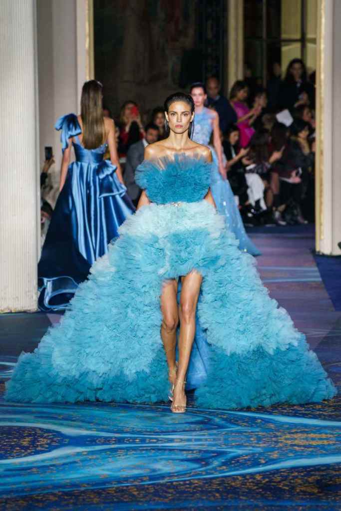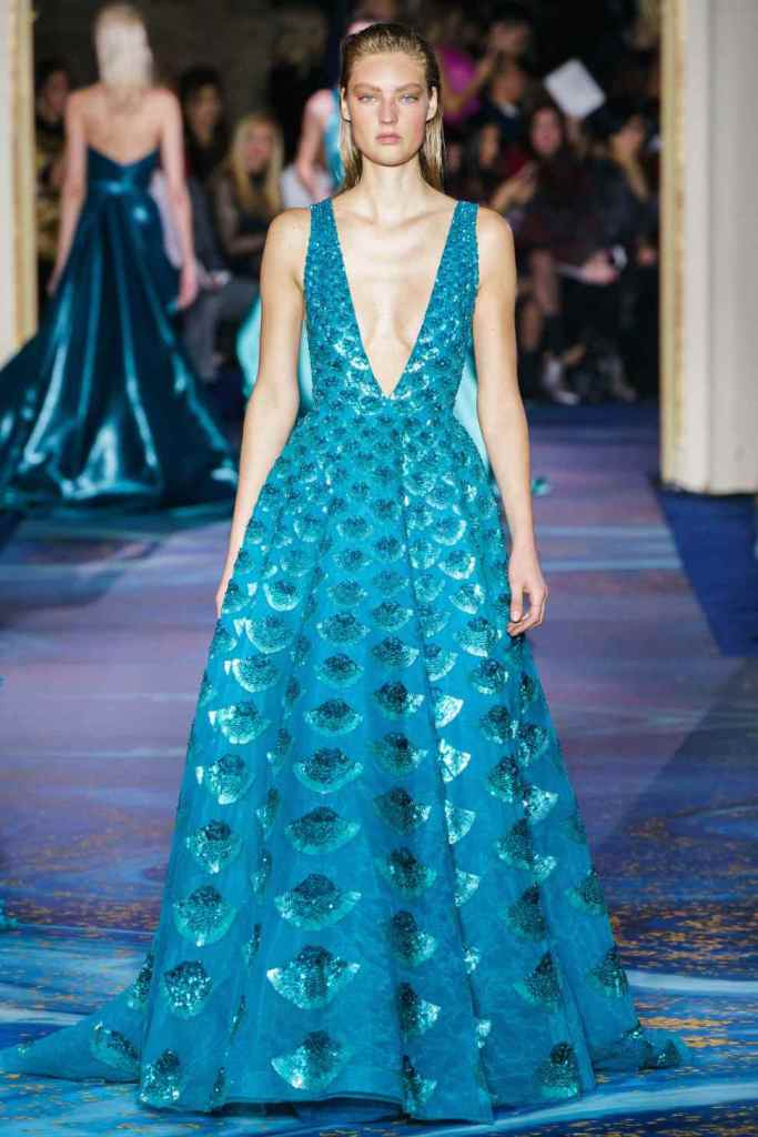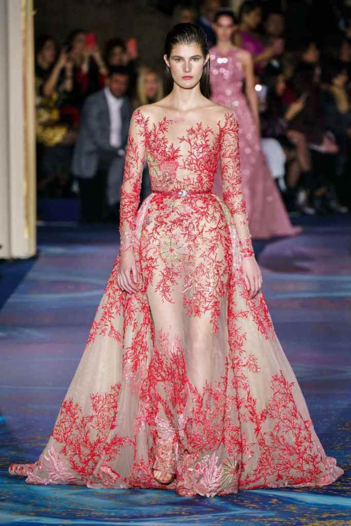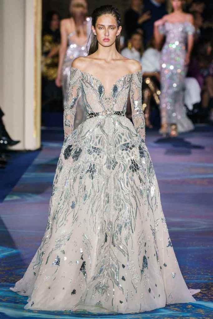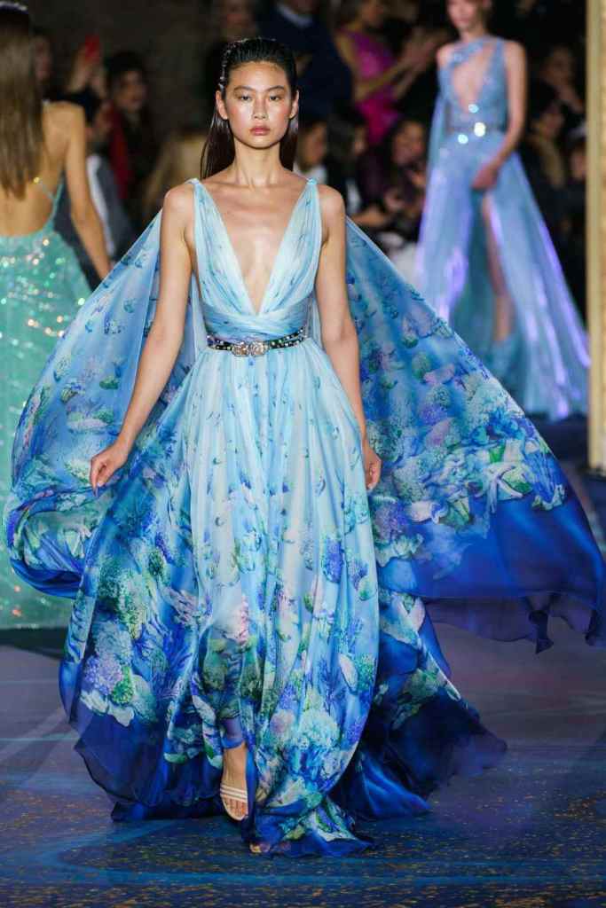 Inspired by the enchanting life of mermaids, sea creatures and the world beneath the waves, this lineup combines opulent themes and mysterious flair. From deep ocean-inspired hues to luminous mother-of-pearl shades, Murad takes us on Couture meets aquatic fantasy. The designer showcased a fusion of dark and romantic elegance by blending his signature feminine designs with structured precise motifs. Murad’s meticulous craftsmanship and attention to detail shine through, as intricate embellishments and delicate embroideries adorn the ensembles.
