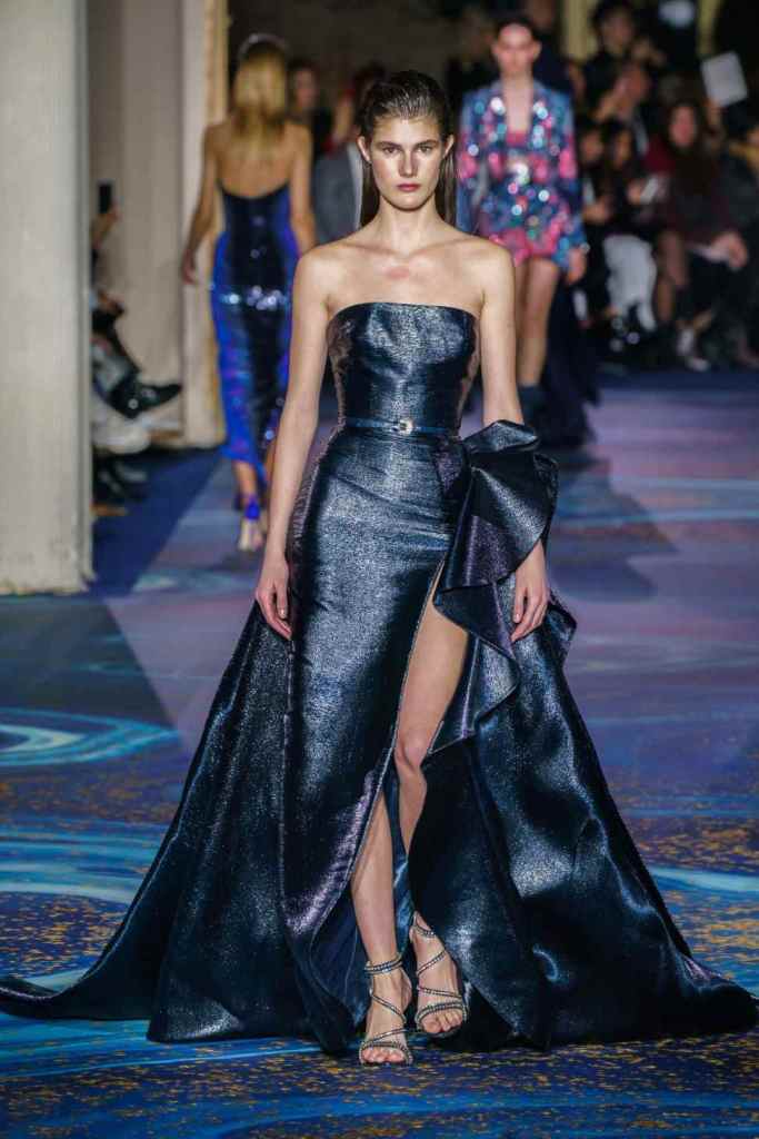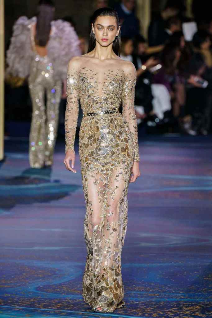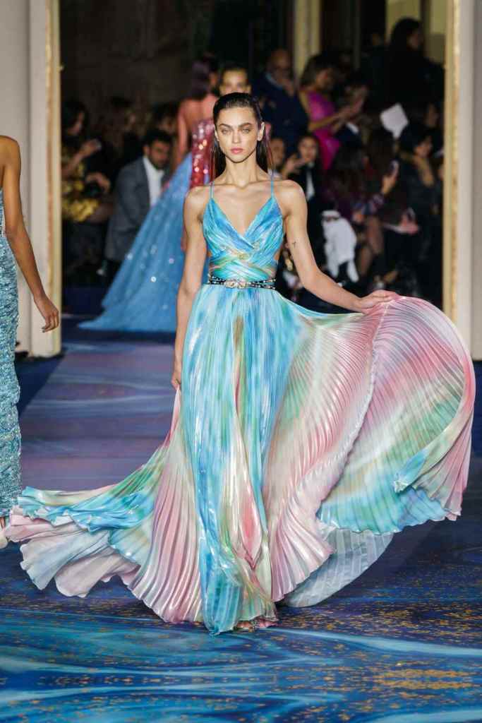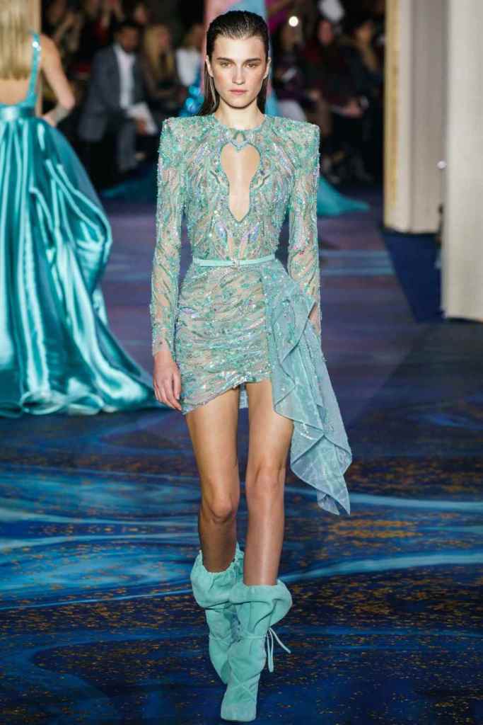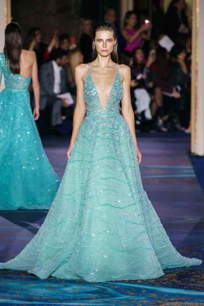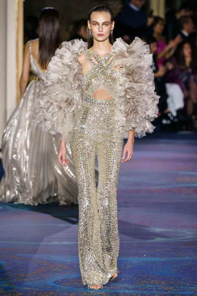 Inspired by the enchanting life of mermaids, sea creatures and the world beneath the waves, this lineup combines opulent themes and mysterious flair. From deep ocean-inspired hues to luminous mother-of-pearl shades, Murad takes us on Couture meets aquatic fantasy. The designer showcased a fusion of dark and romantic elegance by blending his signature feminine designs with structured precise motifs. Murad’s meticulous craftsmanship and attention to detail shine through, as intricate embellishments and delicate embroideries adorn the ensembles.
