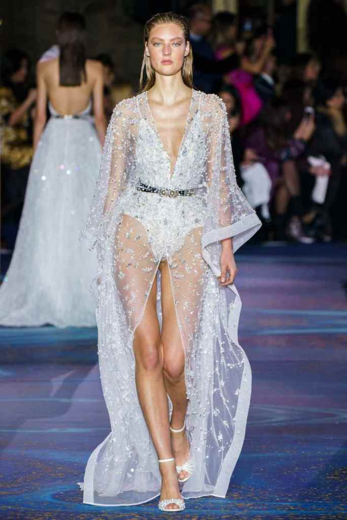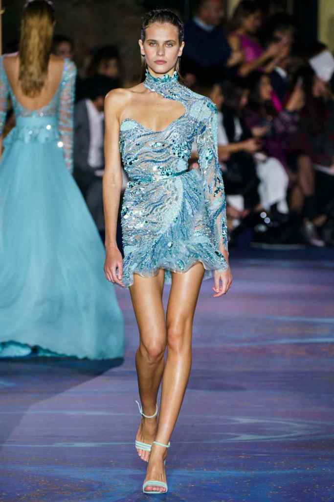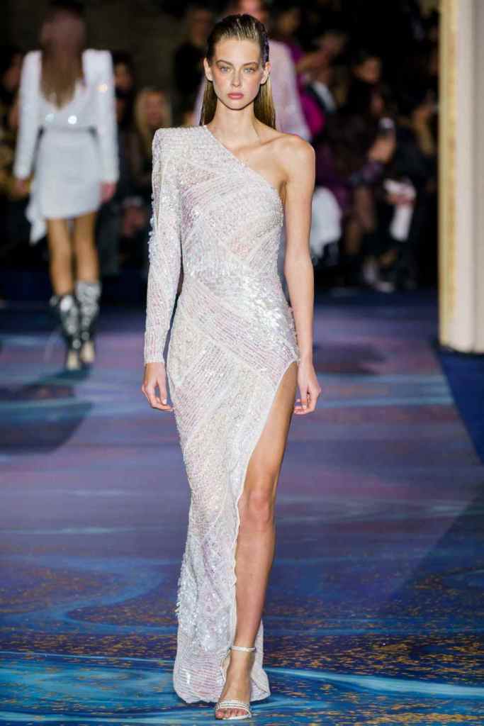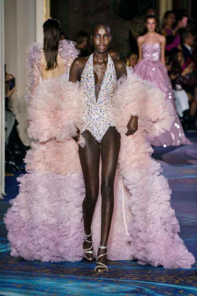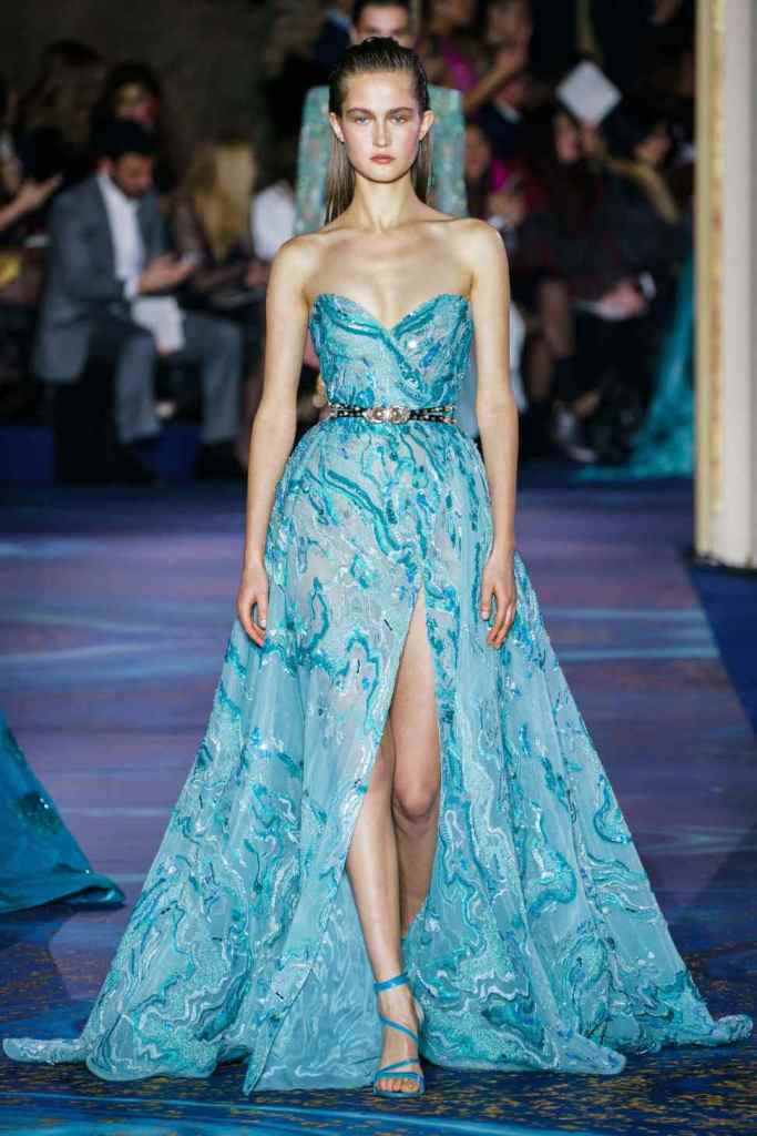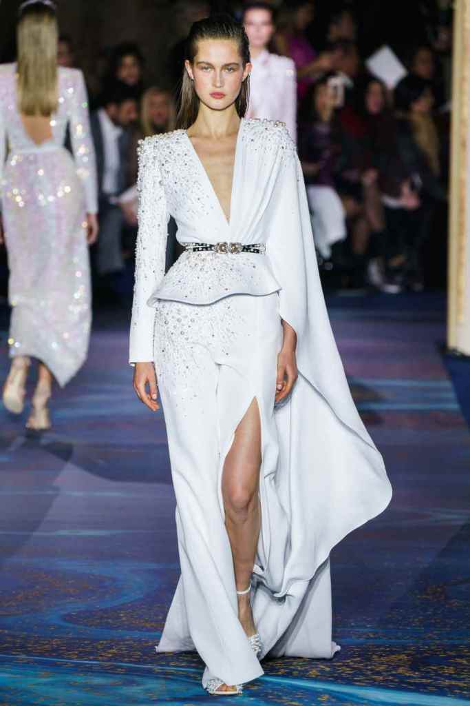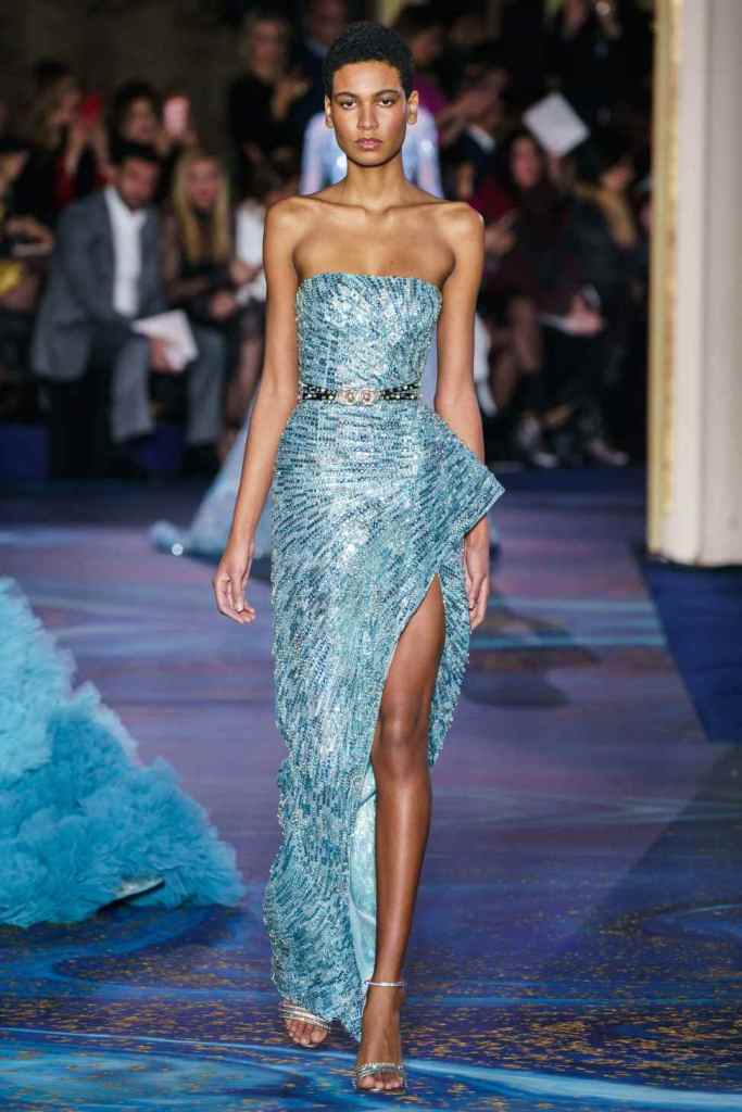 Inspired by the enchanting life of mermaids, sea creatures and the world beneath the waves, this lineup combines opulent themes and mysterious flair. From deep ocean-inspired hues to luminous mother-of-pearl shades, Murad takes us on Couture meets aquatic fantasy. The designer showcased a fusion of dark and romantic elegance by blending his signature feminine designs with structured precise motifs. Murad’s meticulous craftsmanship and attention to detail shine through, as intricate embellishments and delicate embroideries adorn the ensembles.