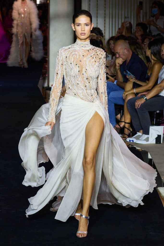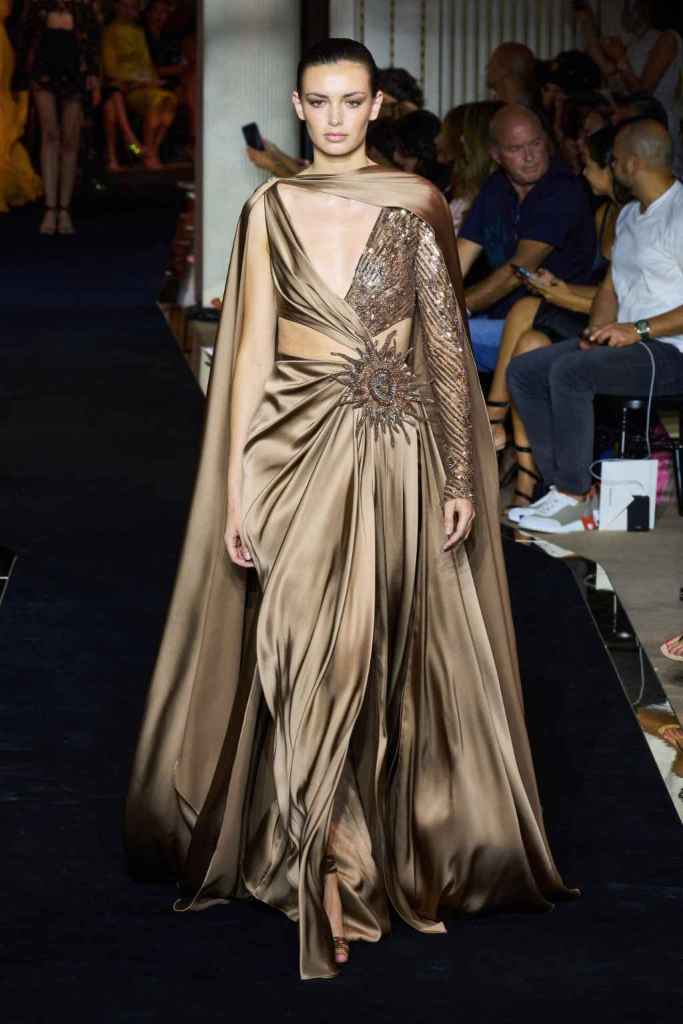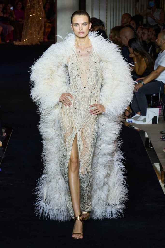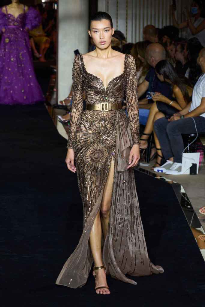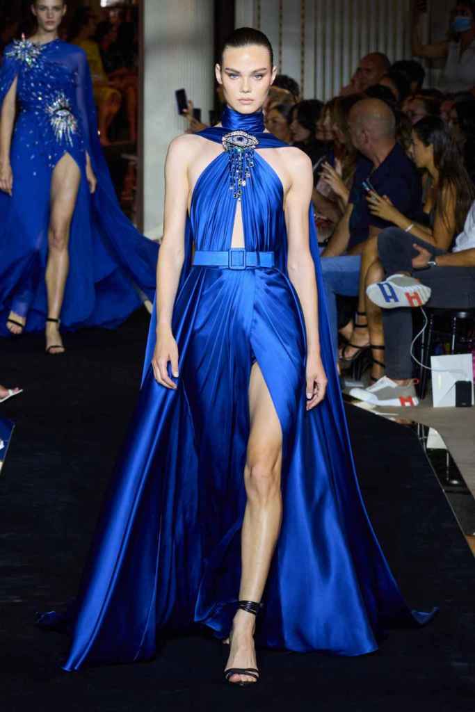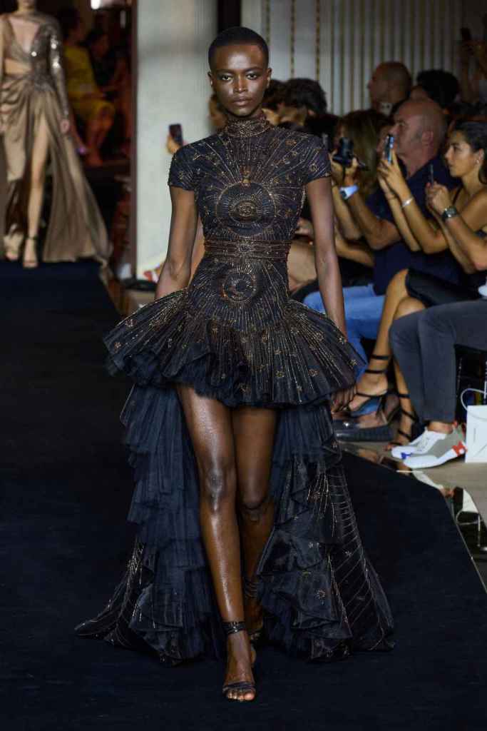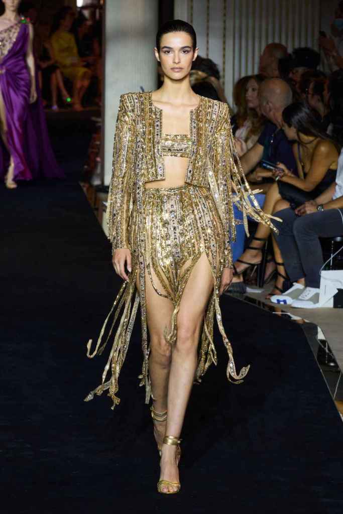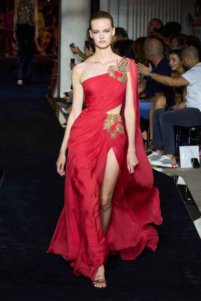 Symbolizing mystical spirituality, Zuhair Murad incorporates planets, horoscopes, and the magic of the cosmos. Murad believes couture can attract love, fortune, and happiness. Tarot cards, all-seeing eyes, zodiac signs, cryptic symbols and golden snakes adorn colorful creations, while sensual purple and Klein blue ensembles add zest to the lineup. From gypsy skirts to silk turbans, every piece is a manifestation of esoteric allure. His fascination with the unknown is evident as he weaves ancient and enigmatic elements into his designs.