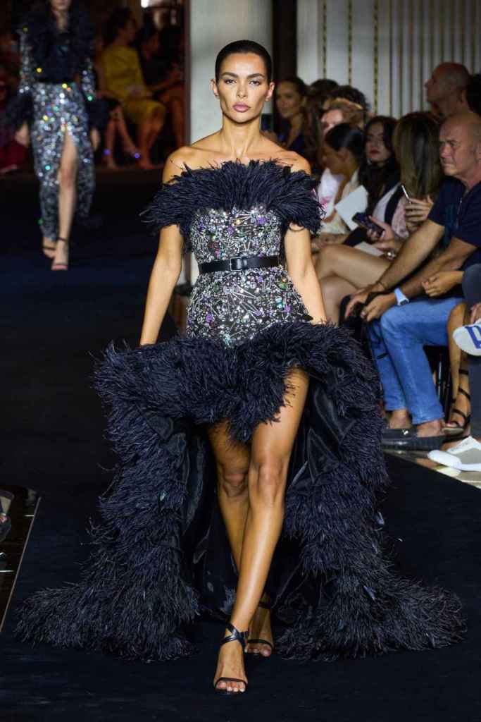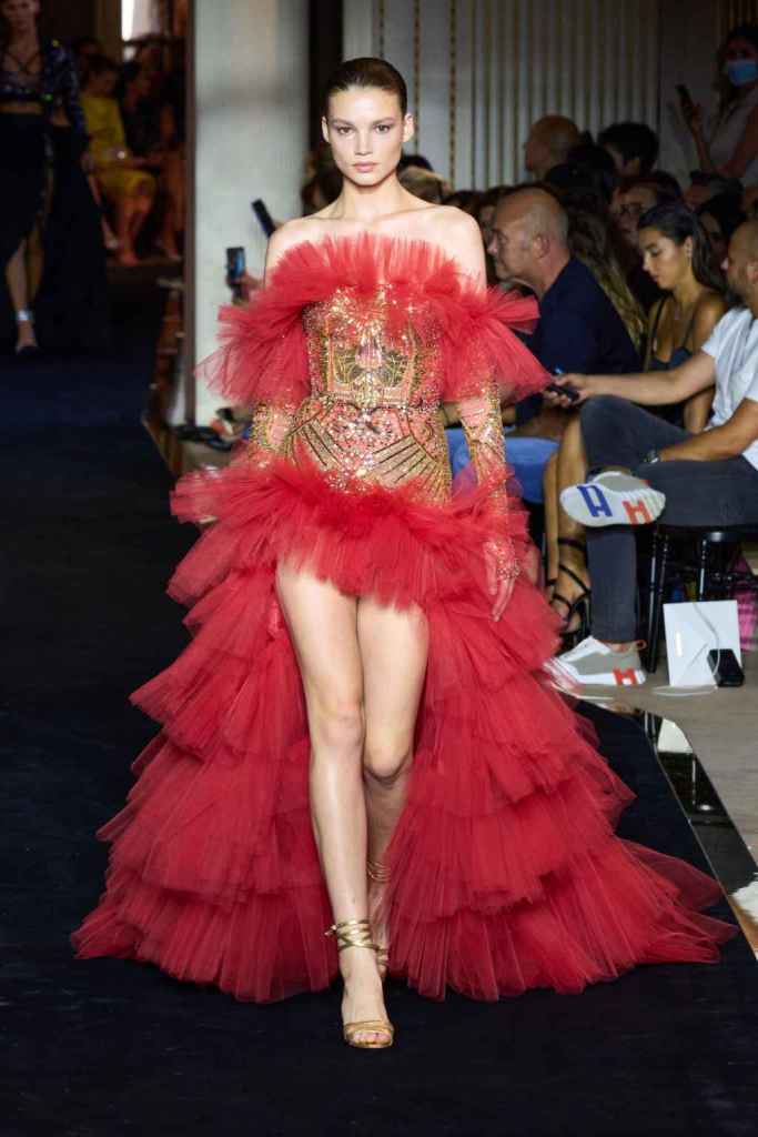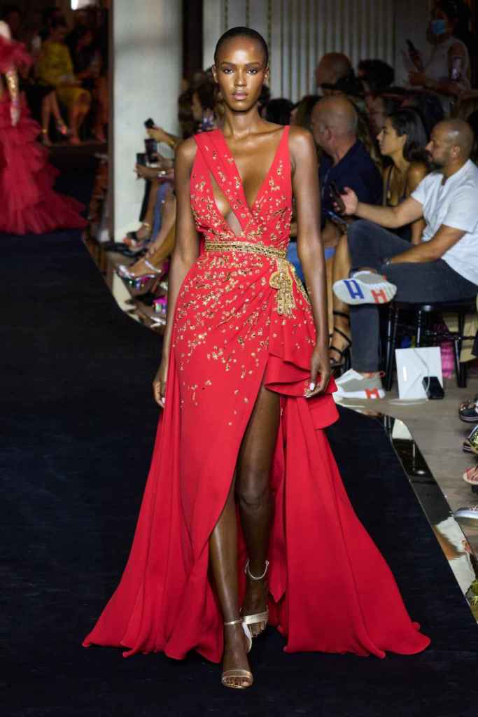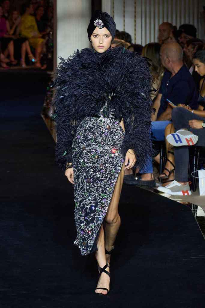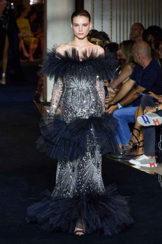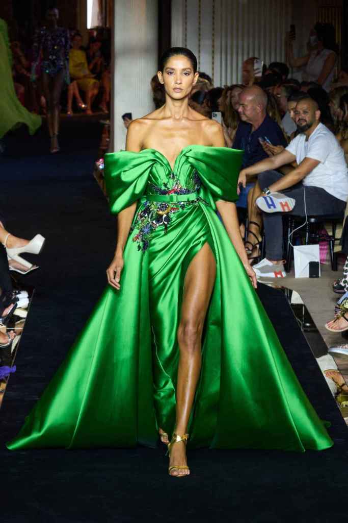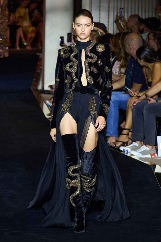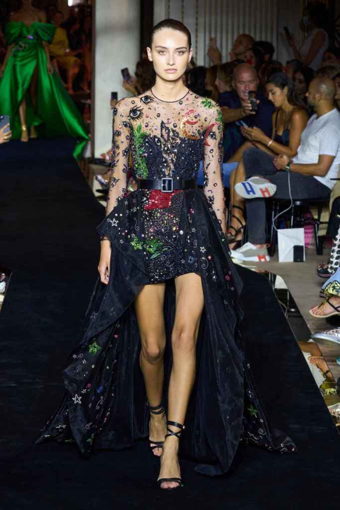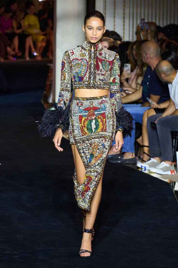 Symbolizing mystical spirituality, Zuhair Murad incorporates planets, horoscopes, and the magic of the cosmos. Murad believes couture can attract love, fortune, and happiness. Tarot cards, all-seeing eyes, zodiac signs, cryptic symbols and golden snakes adorn colorful creations, while sensual purple and Klein blue ensembles add zest to the lineup. From gypsy skirts to silk turbans, every piece is a manifestation of esoteric allure. His fascination with the unknown is evident as he weaves ancient and enigmatic elements into his designs.