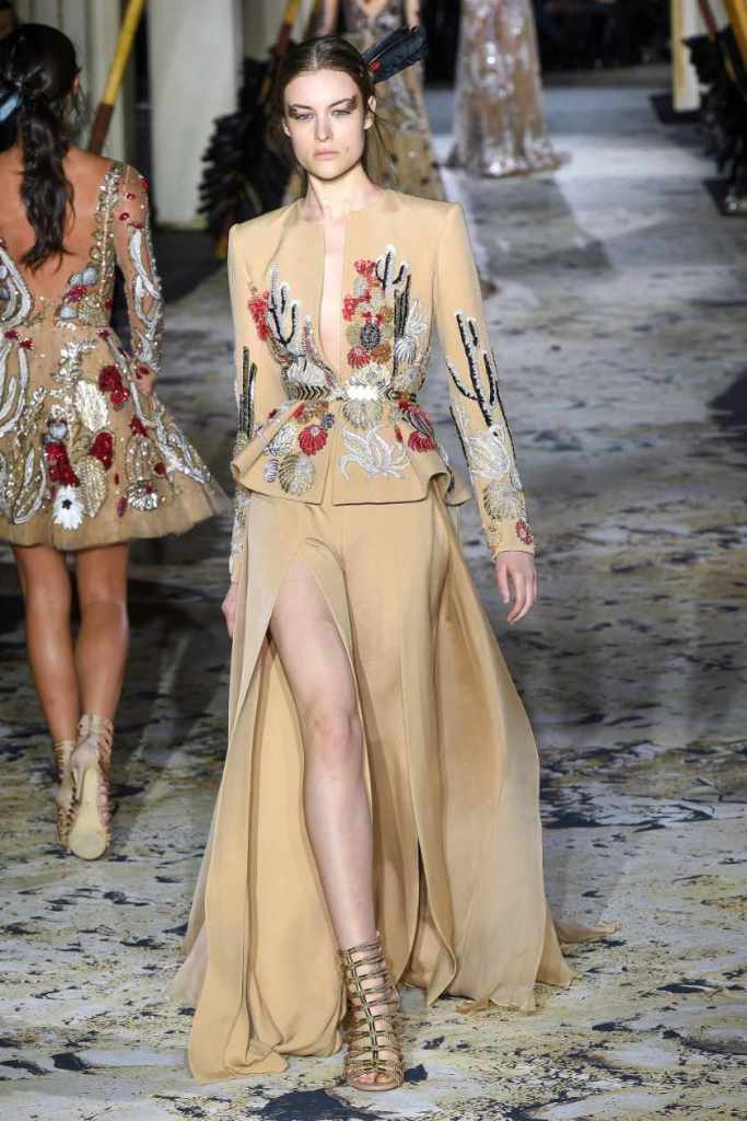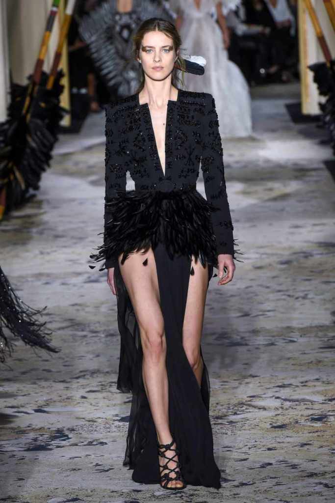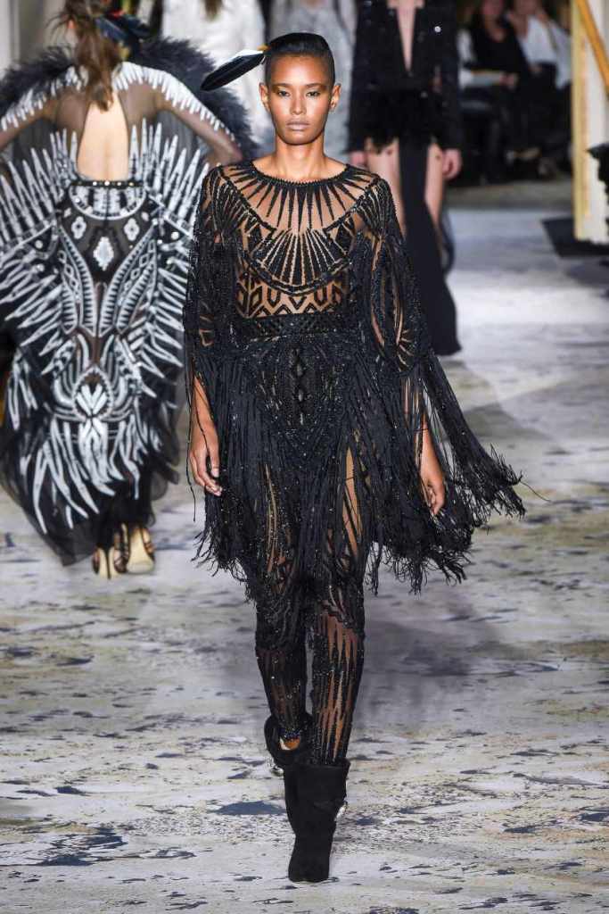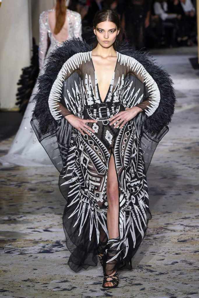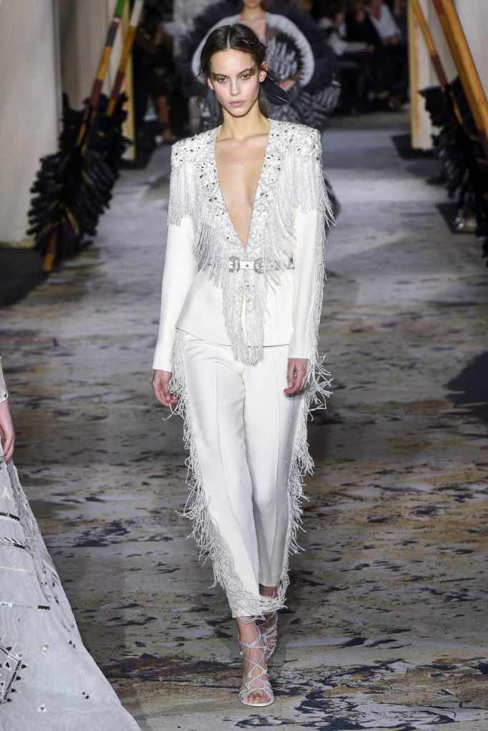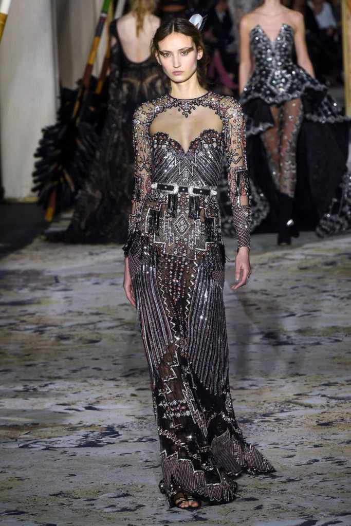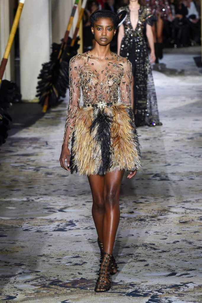 This collection was Zuhair Murad’s exploration and celebration of Native American culture. But where doesn’t celebration end and appropriation began? This collection had quite a lot going on. Inspiration from global culture and countries is completely okay but with such a sensitive history it is best to be cautious and more importantly respectful. Even the title ‘Indian Summer’ feels like an unfortunate taunt. The show notes literally read “Native American culture would be observed from a fantasized and respectful perspective.” as reported by Refinery29.com. Despite the shortcomings, Murad’s meticulous craftsmanship managed to save some looks, especially towards the end. The eveningwear featured looks inspired by ancient tribes, with feathers, pearls, crystals, fringing, and filigree embroideries in white, gold black and striking red. If he just removed the theme and problematic communication, this would be a pretty good collection.