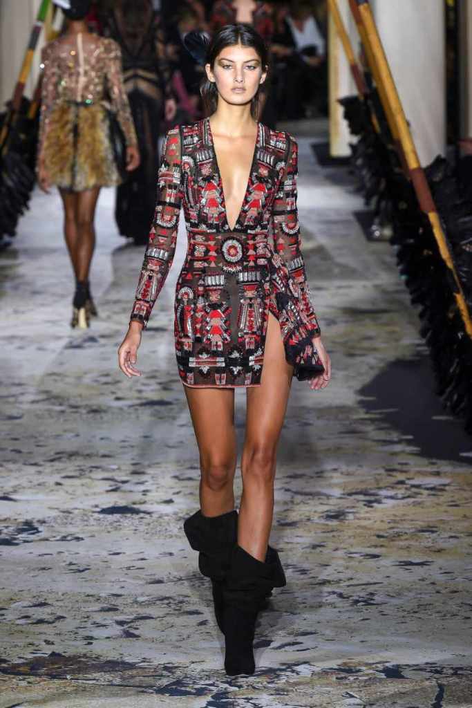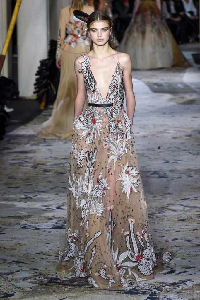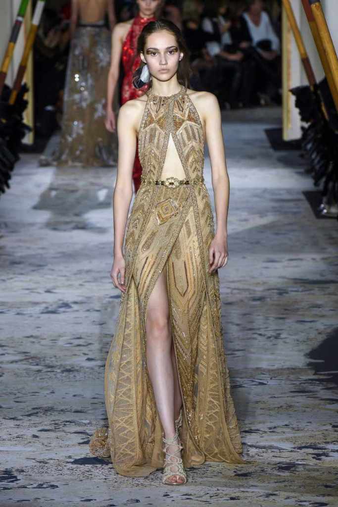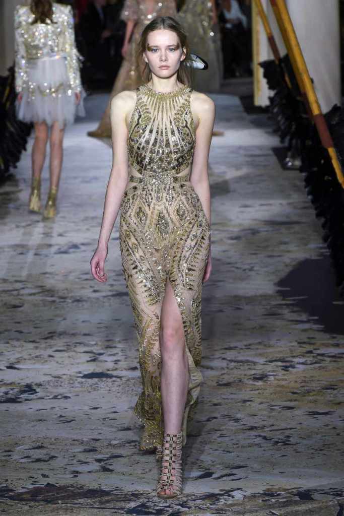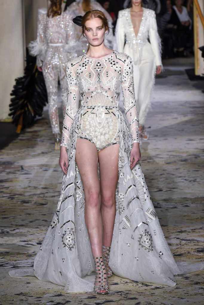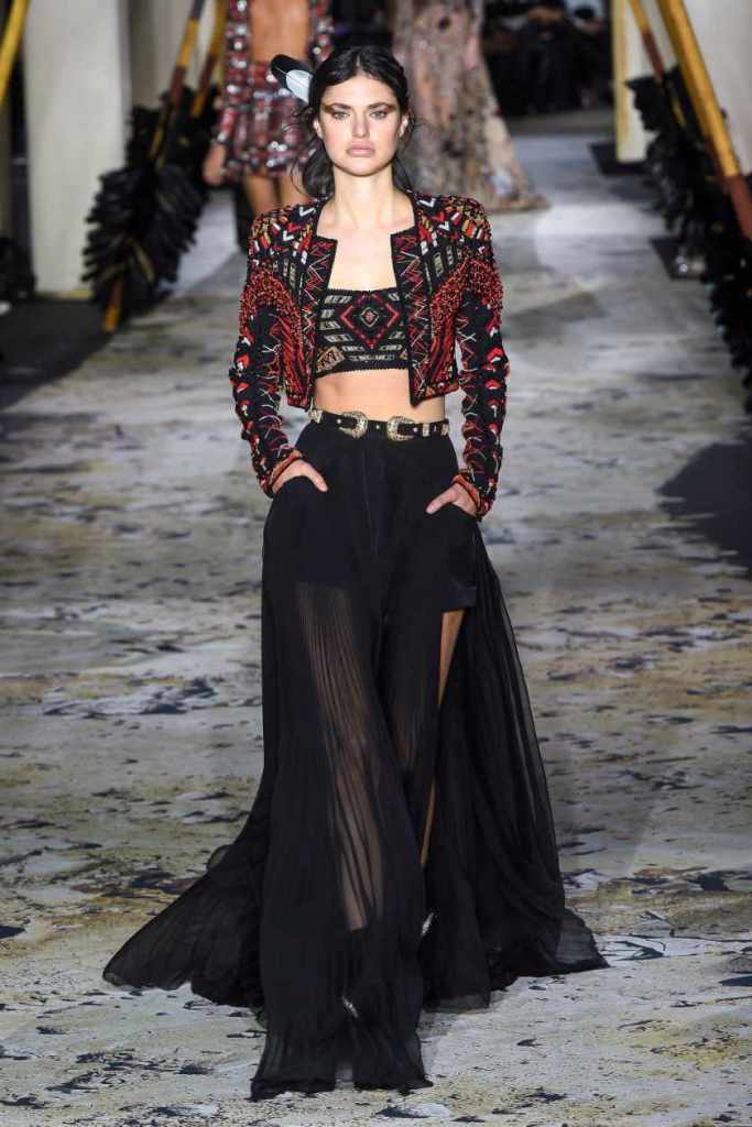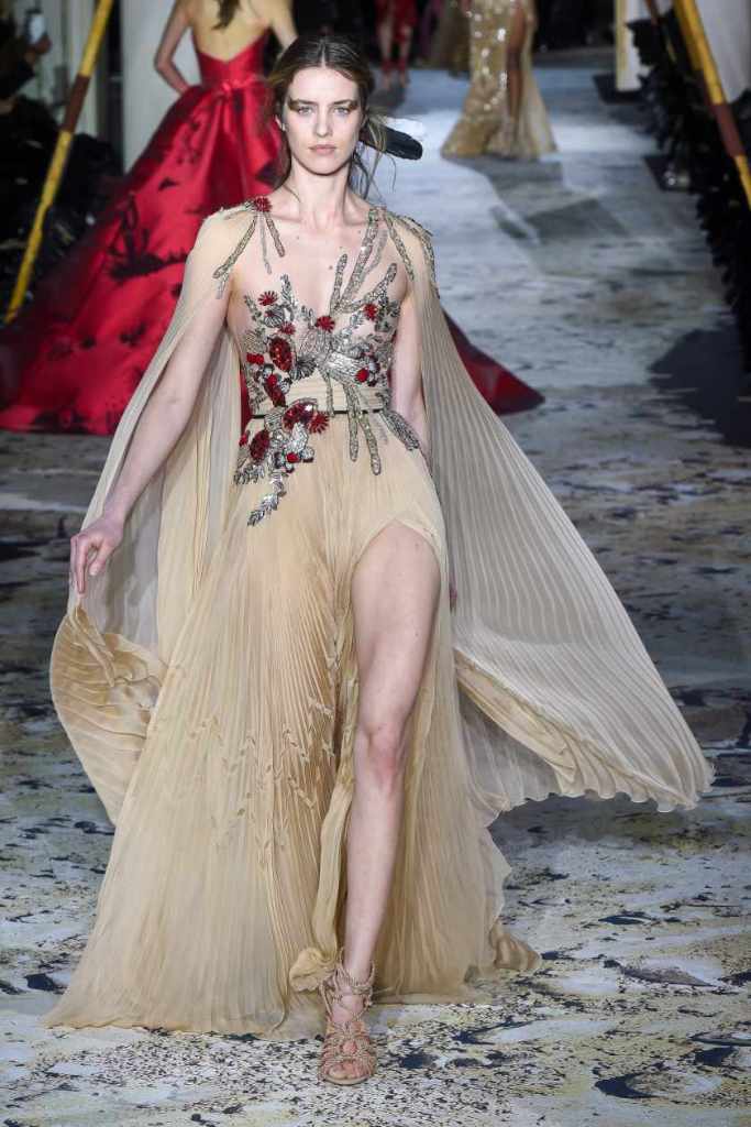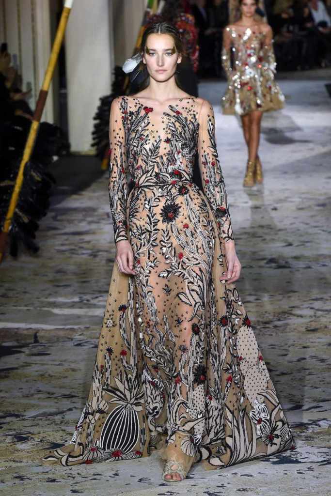 This collection was Zuhair Murad’s exploration and celebration of Native American culture. But where doesn’t celebration end and appropriation began? This collection had quite a lot going on. Inspiration from global culture and countries is completely okay but with such a sensitive history it is best to be cautious and more importantly respectful. Even the title ‘Indian Summer’ feels like an unfortunate taunt. The show notes literally read “Native American culture would be observed from a fantasized and respectful perspective.” as reported by Refinery29.com. Despite the shortcomings, Murad’s meticulous craftsmanship managed to save some looks, especially towards the end. The eveningwear featured looks inspired by ancient tribes, with feathers, pearls, crystals, fringing, and filigree embroideries in white, gold black and striking red. If he just removed the theme and problematic communication, this would be a pretty good collection.