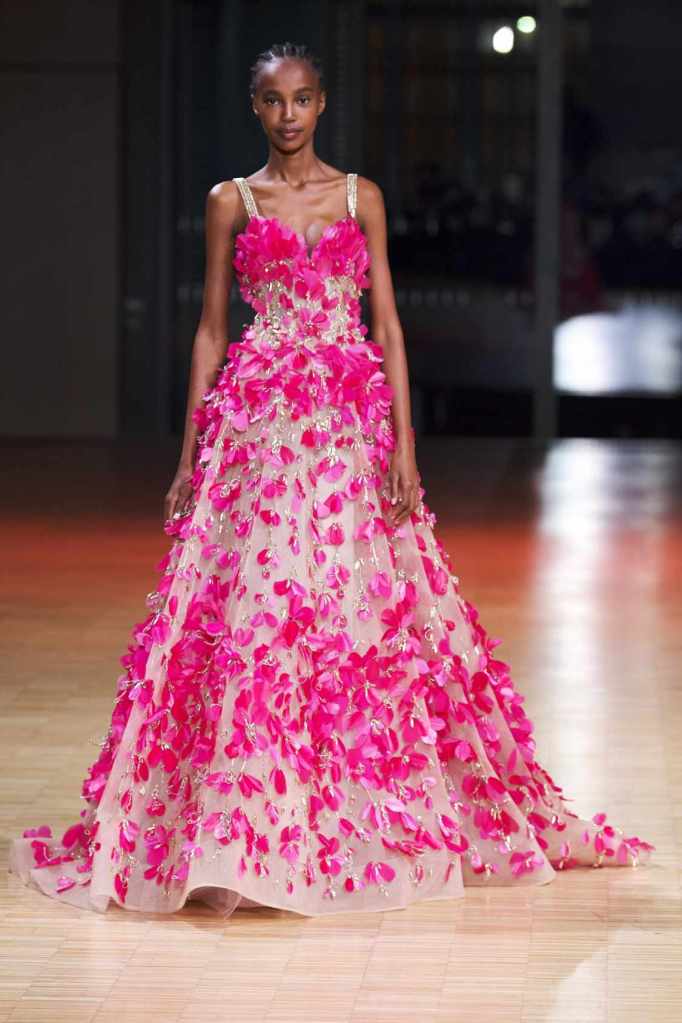 Summer dreams come to life here, Elie Saab’s vision transports us to a Mediterranean oasis! Dreamy dresses made in pretty colors, classic silhouettes, intricate embellishments and a whole lot of that signature Saab extravaganza. Delicate appliques, floral motifs, big ruffles, glossy fringe, feathers, rhinestones, sequins helped craft this romantic and fantastical lineup. Quintessential Couture looks that make a girl dream!