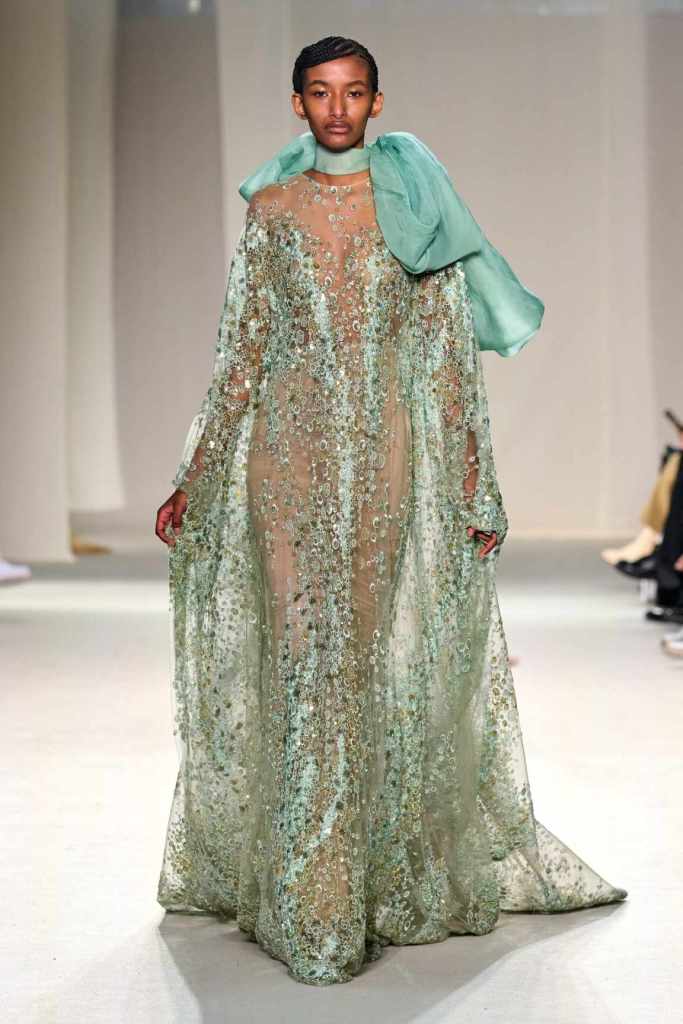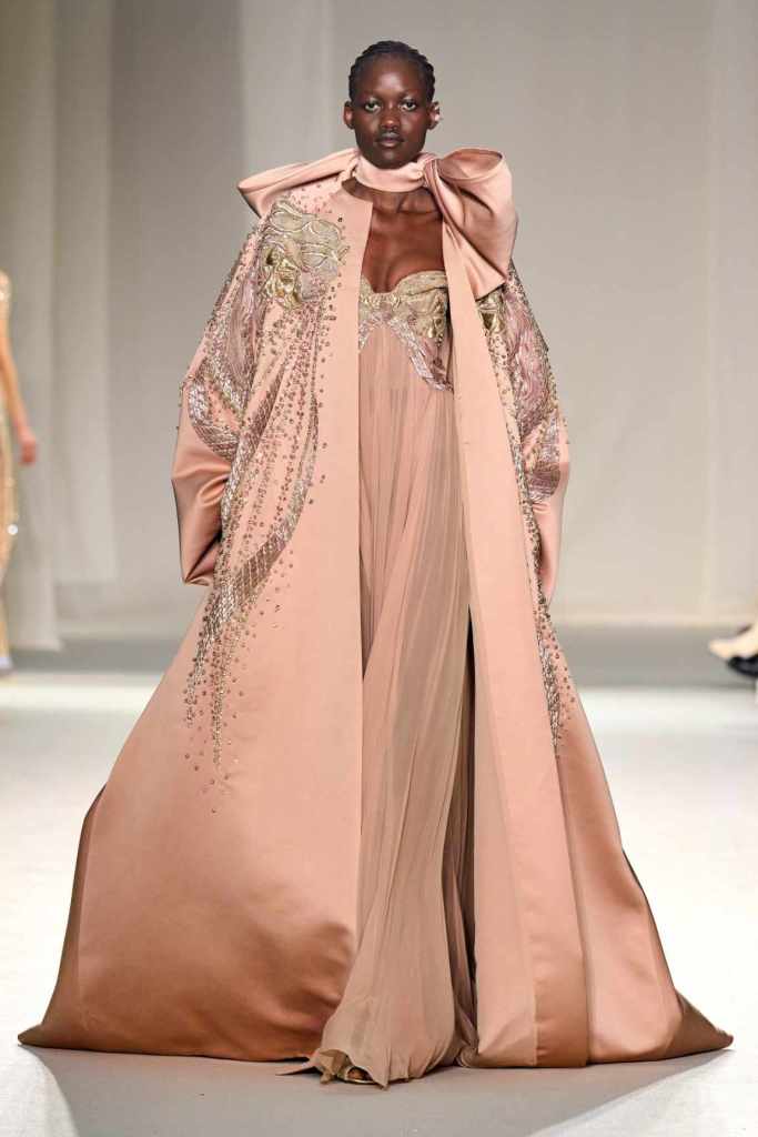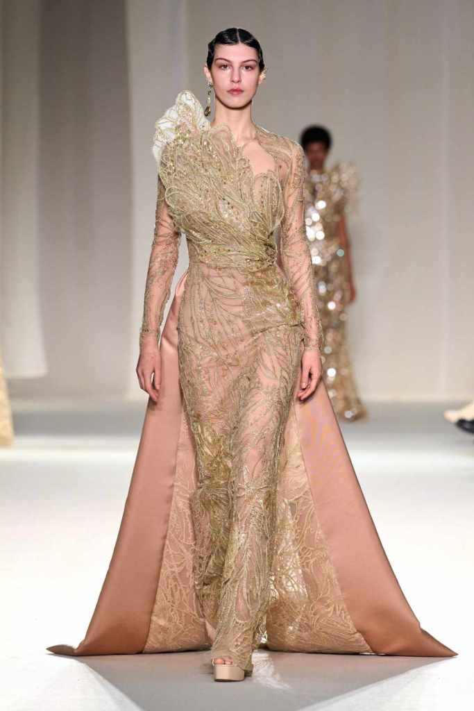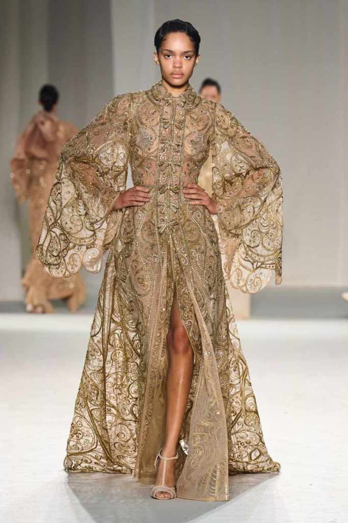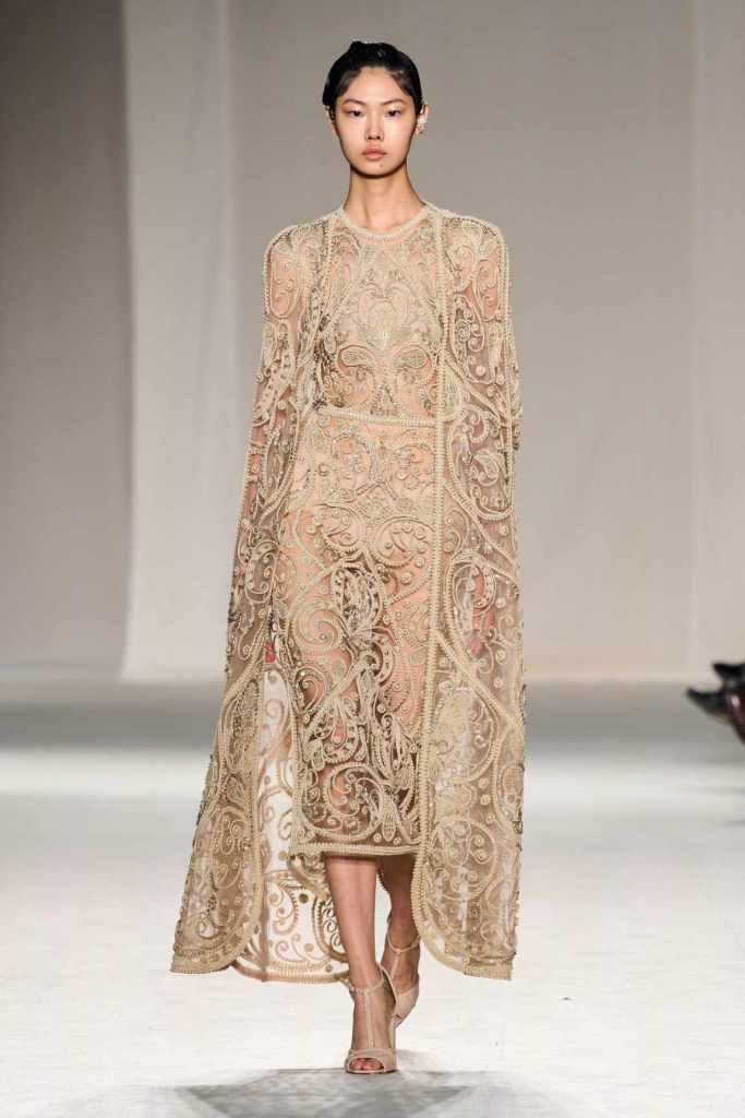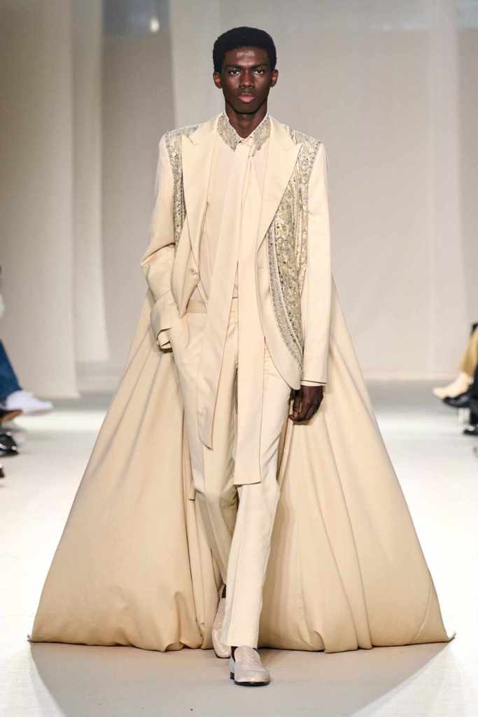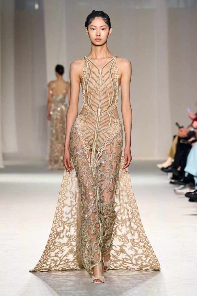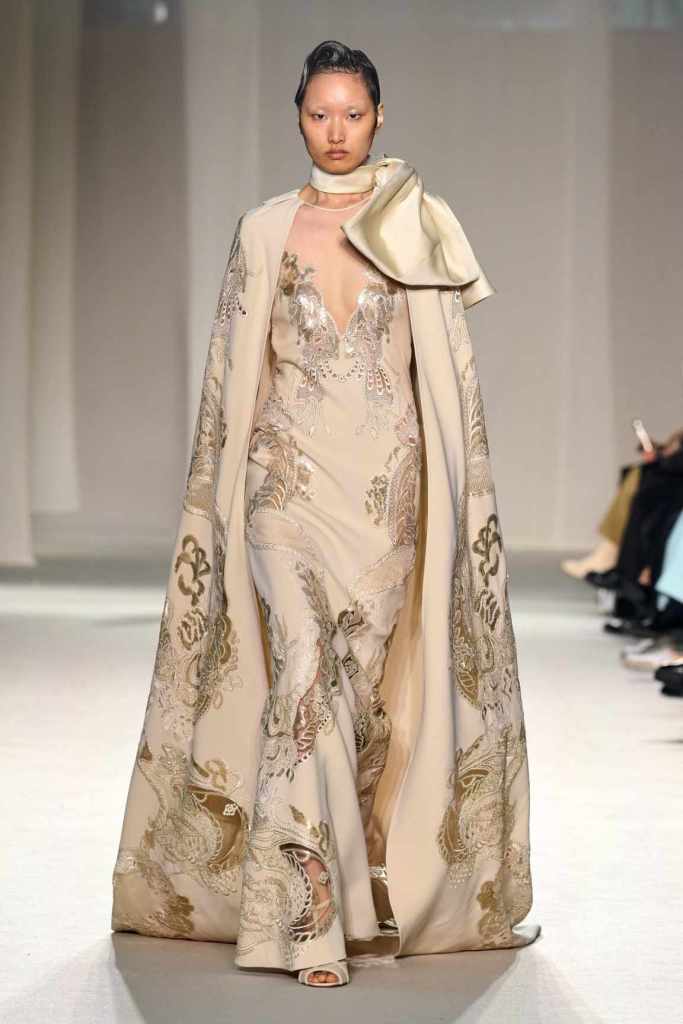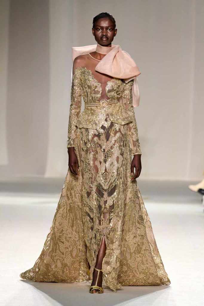 This collection titled “Golden Dawn” celebrates the magnificence of Thailand; Elie Saab is a designer who has a clear vision and knows how to create truly beautiful clothes. The designer has managed to craft a unique & recognizable design USP in a rather traditional fashion aesthetic. There were skin-hugging embellished gowns, sheer majestic gowns, regal capes, asymmetrical cutouts and endearing cocktail dresses. These looks were decorated with intricate necklines, detailed embellishments, striking appliqués and some breezy neck scarfs. I can’t talk about this collection without mentioning the sublime men’s couture; neatly tailored and sumptuously decorated.