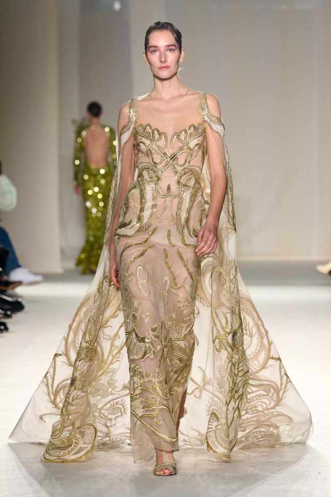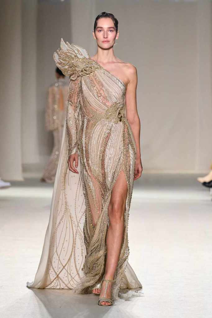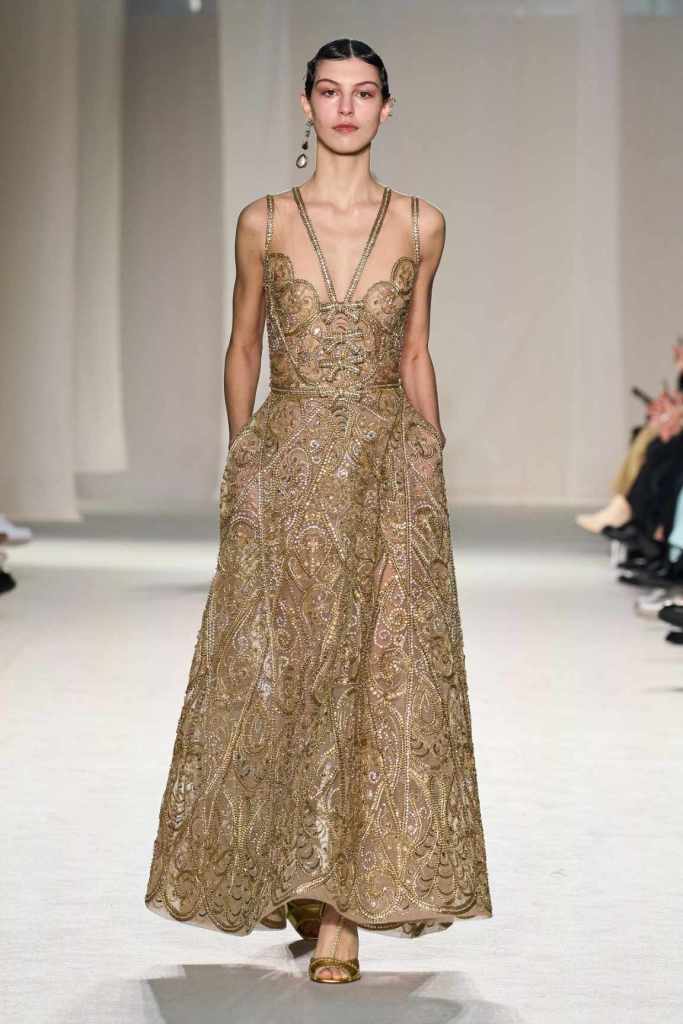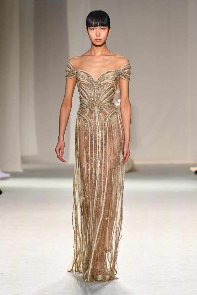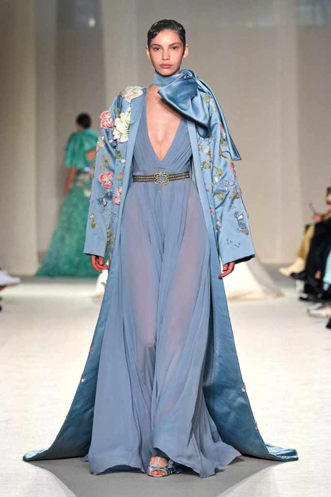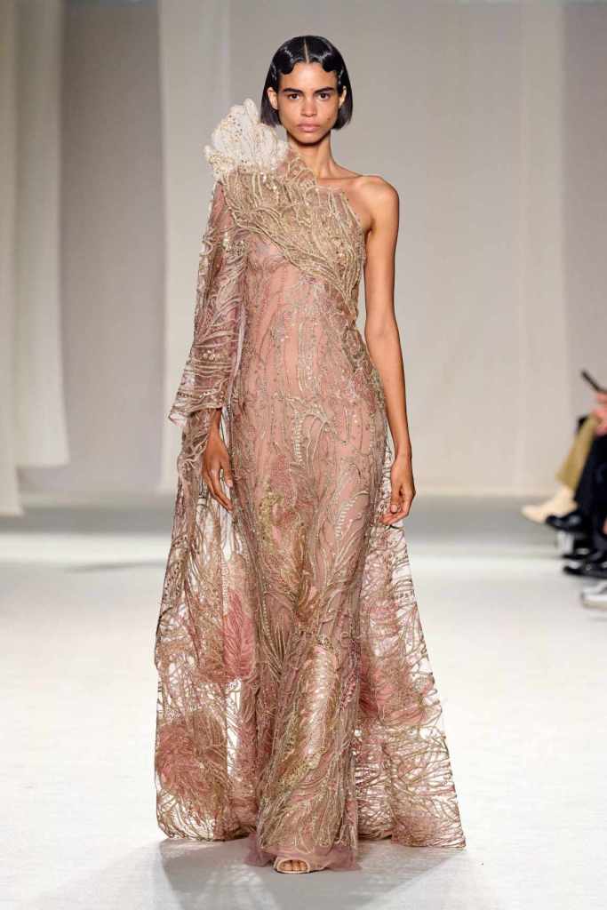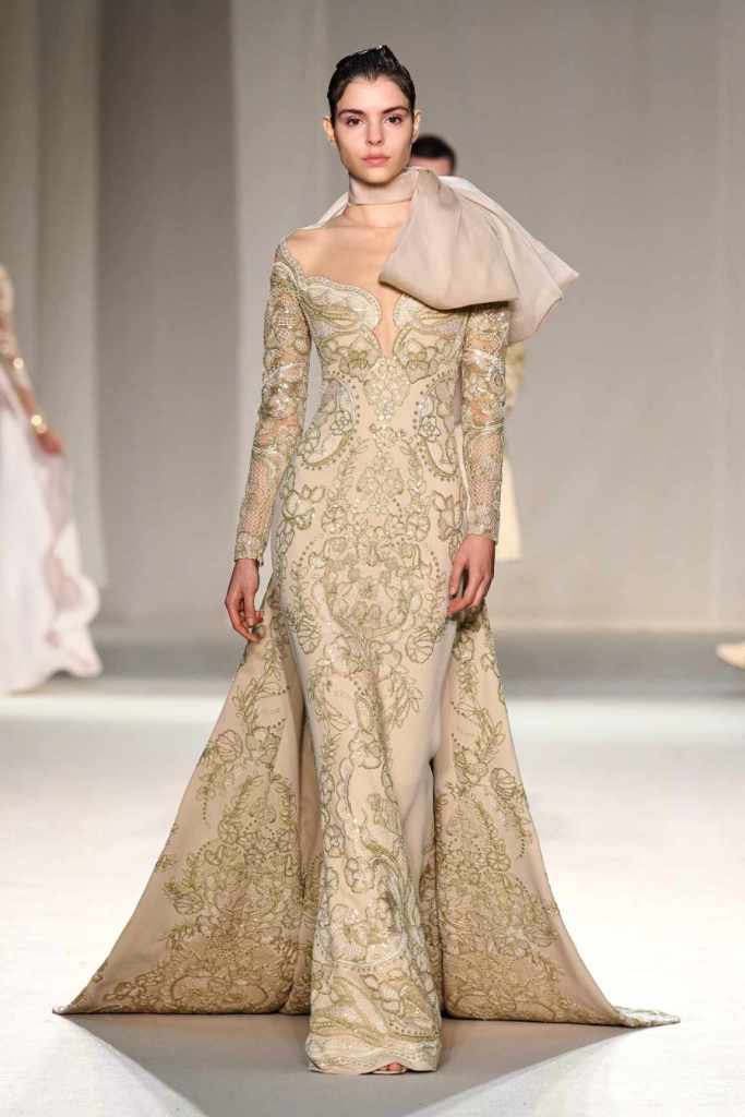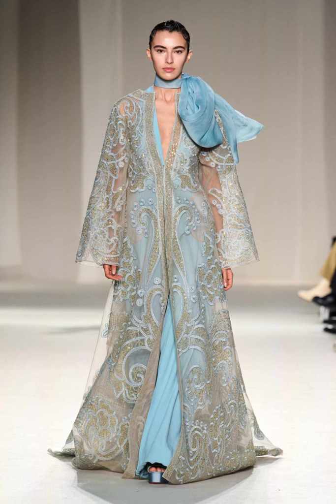 This collection titled “Golden Dawn” celebrates the magnificence of Thailand; Elie Saab is a designer who has a clear vision and knows how to create truly beautiful clothes. The designer has managed to craft a unique & recognizable design USP in a rather traditional fashion aesthetic. There were skin-hugging embellished gowns, sheer majestic gowns, regal capes, asymmetrical cutouts and endearing cocktail dresses. These looks were decorated with intricate necklines, detailed embellishments, striking appliqués and some breezy neck scarfs. I can’t talk about this collection without mentioning the sublime men’s couture; neatly tailored and sumptuously decorated.