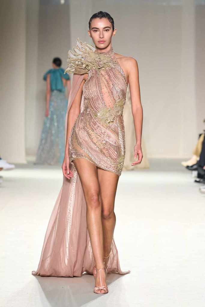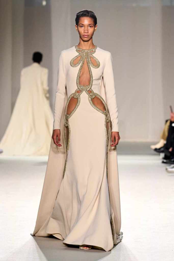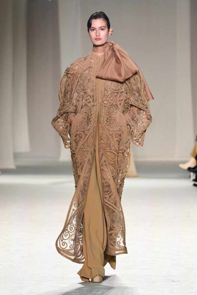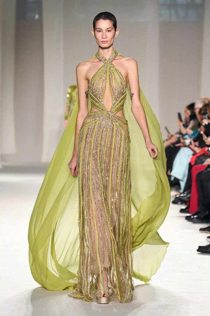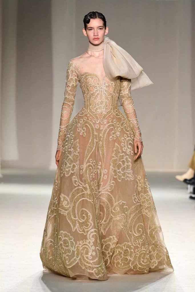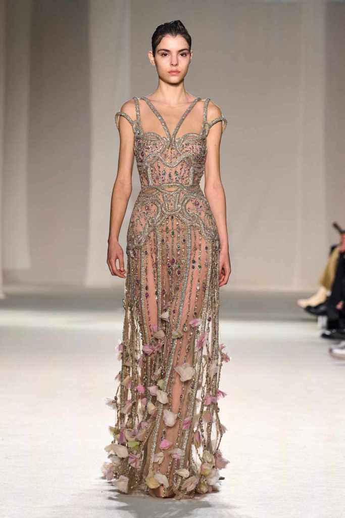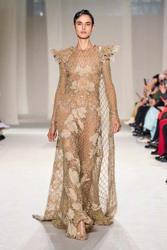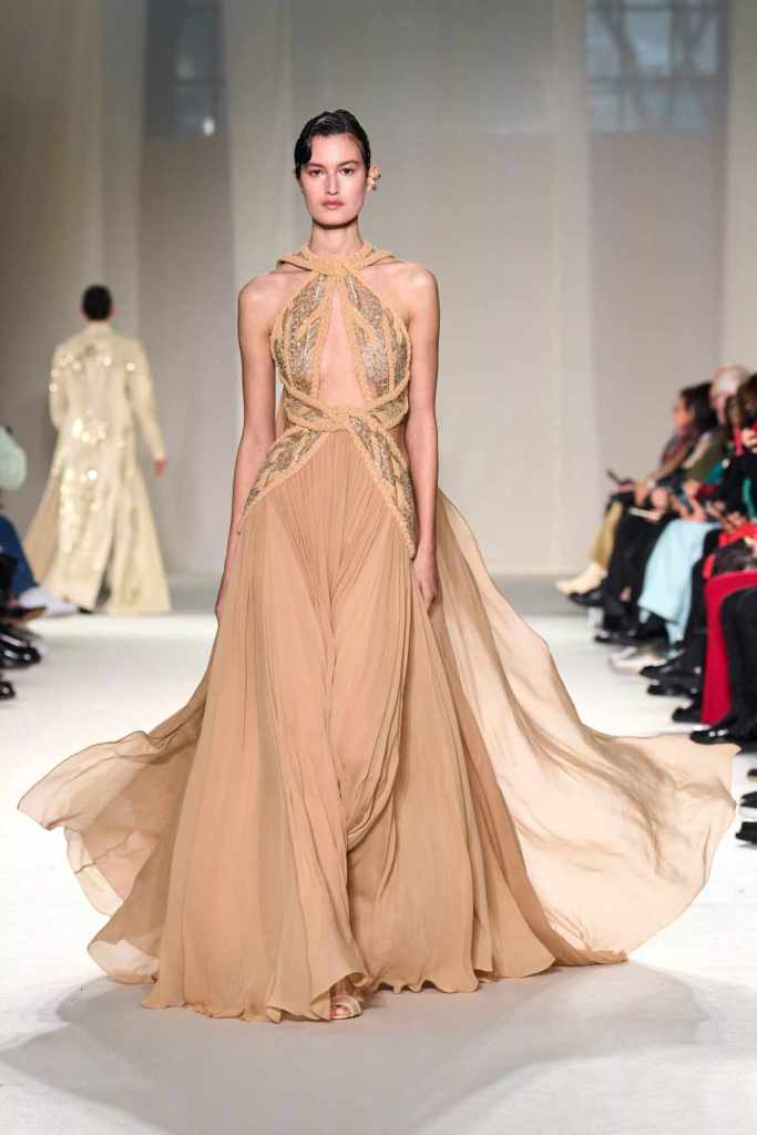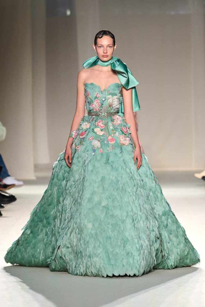 This collection titled “Golden Dawn” celebrates the magnificence of Thailand; Elie Saab is a designer who has a clear vision and knows how to create truly beautiful clothes. The designer has managed to craft a unique & recognizable design USP in a rather traditional fashion aesthetic. There were skin-hugging embellished gowns, sheer majestic gowns, regal capes, asymmetrical cutouts and endearing cocktail dresses. These looks were decorated with intricate necklines, detailed embellishments, striking appliqués and some breezy neck scarfs. I can’t talk about this collection without mentioning the sublime men’s couture; neatly tailored and sumptuously decorated.
