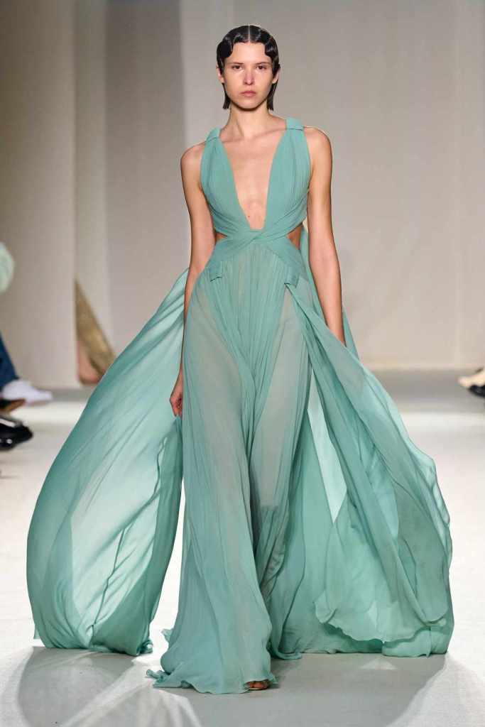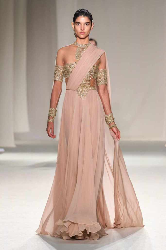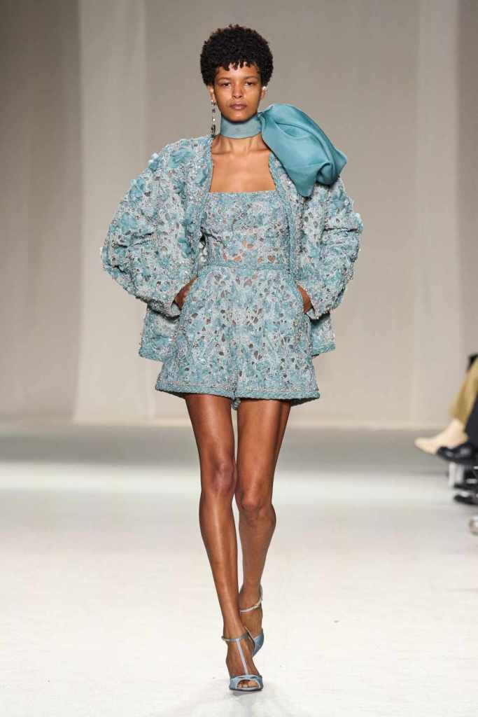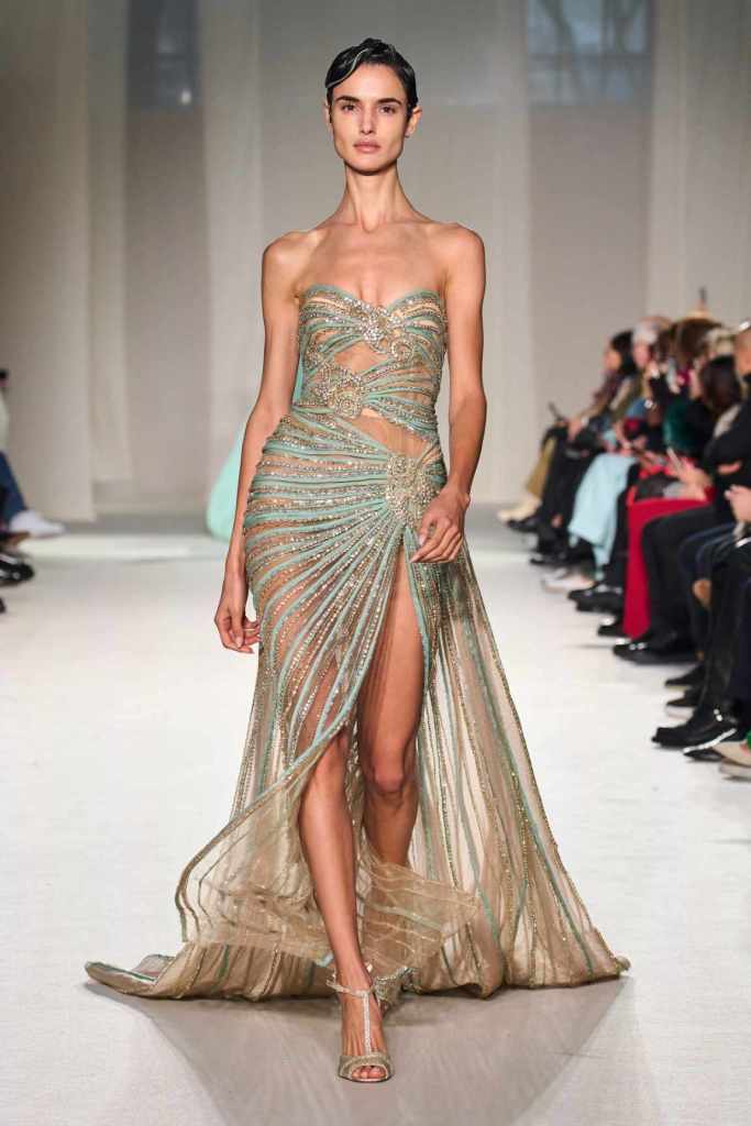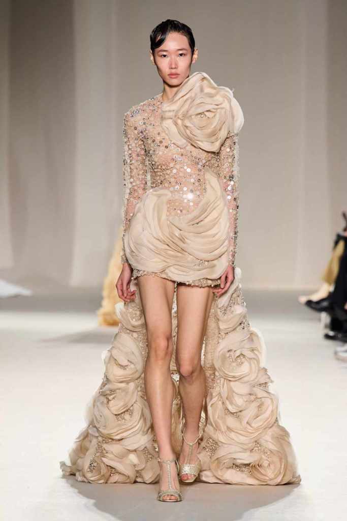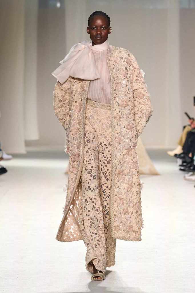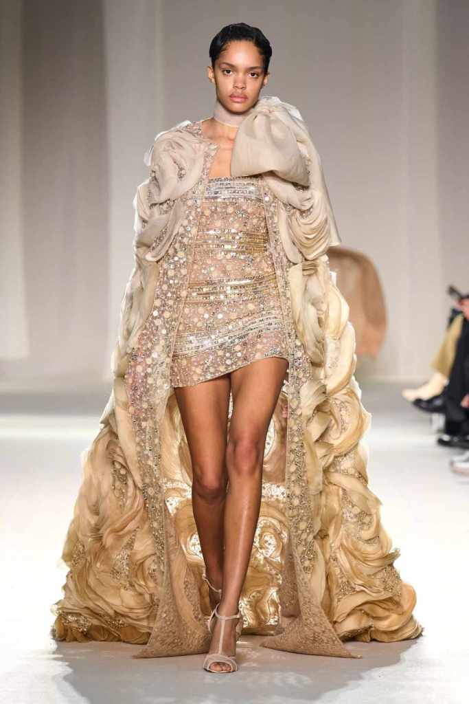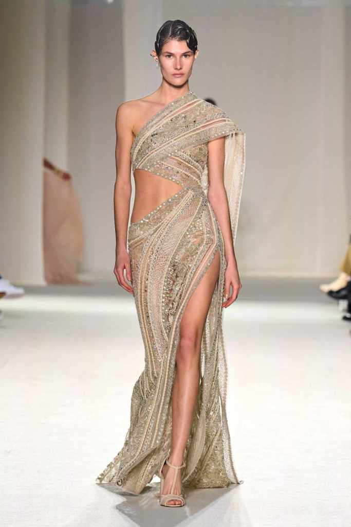 This collection titled “Golden Dawn” celebrates the magnificence of Thailand; Elie Saab is a designer who has a clear vision and knows how to create truly beautiful clothes. The designer has managed to craft a unique & recognizable design USP in a rather traditional fashion aesthetic. There were skin-hugging embellished gowns, sheer majestic gowns, regal capes, asymmetrical cutouts and endearing cocktail dresses. These looks were decorated with intricate necklines, detailed embellishments, striking appliqués and some breezy neck scarfs. I can’t talk about this collection without mentioning the sublime men’s couture; neatly tailored and sumptuously decorated.