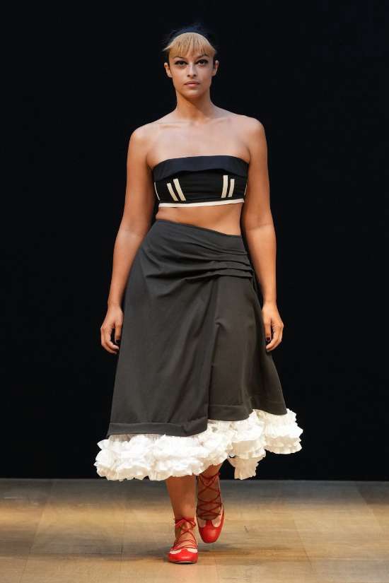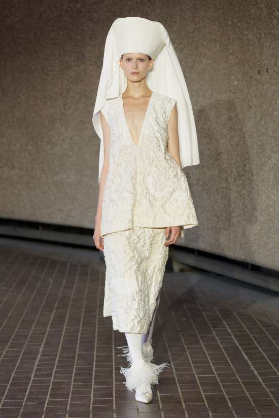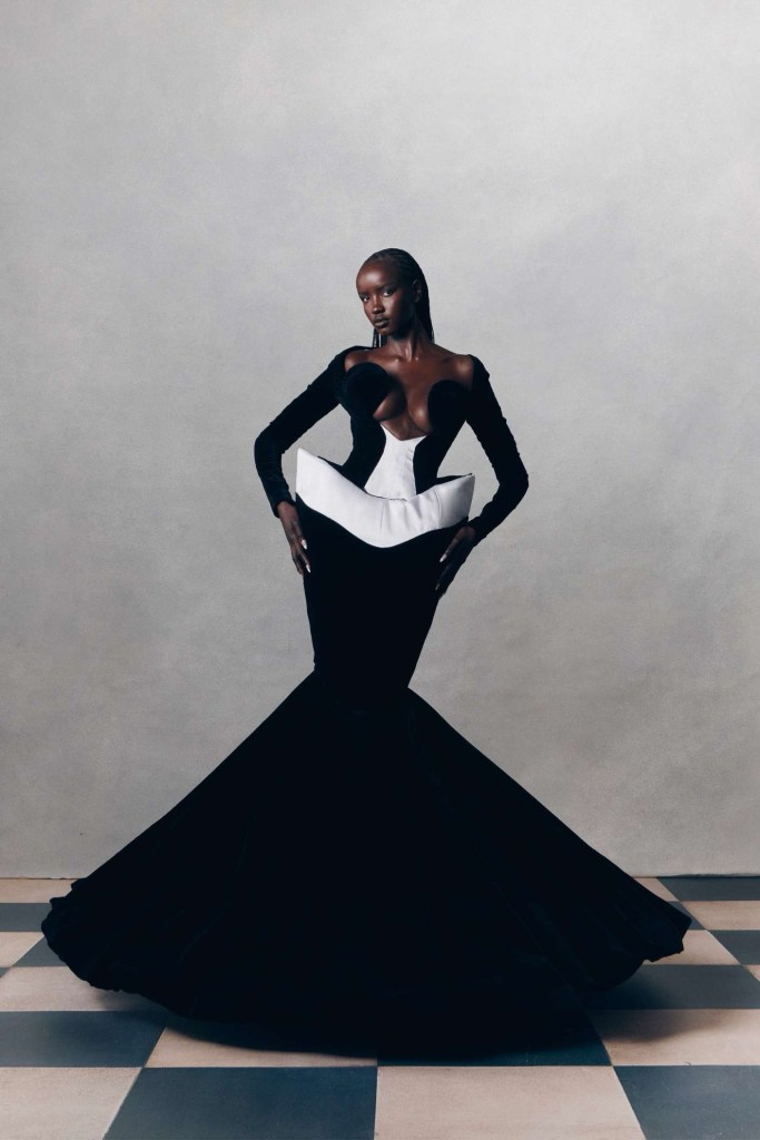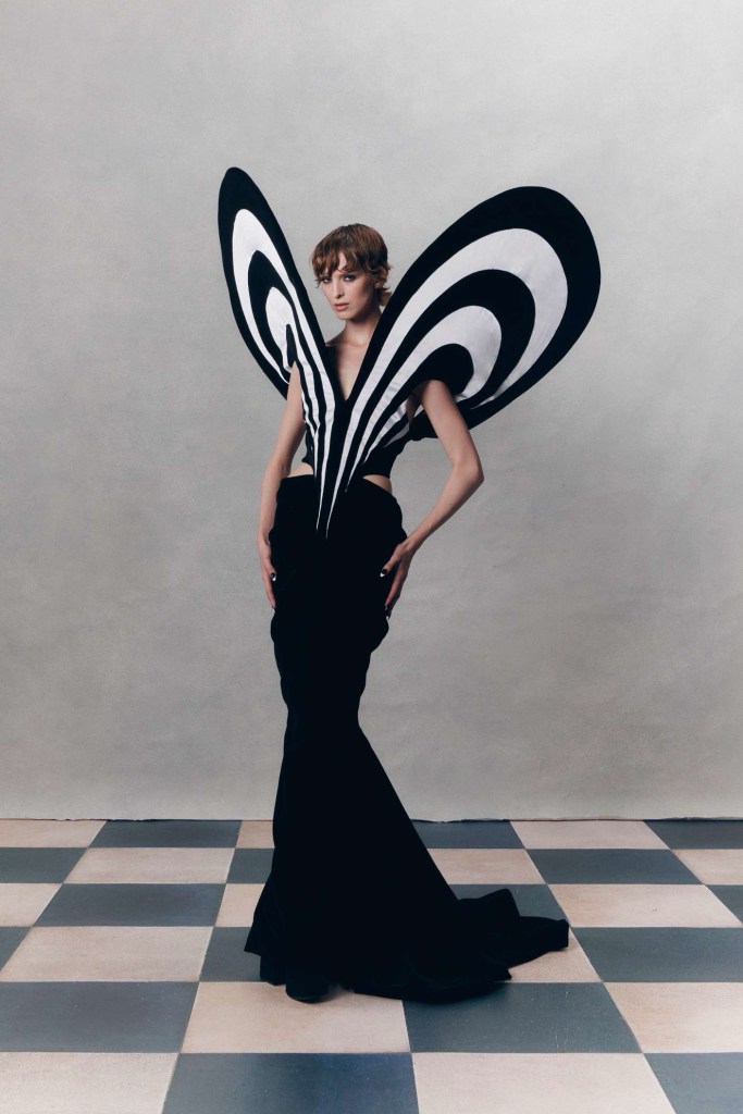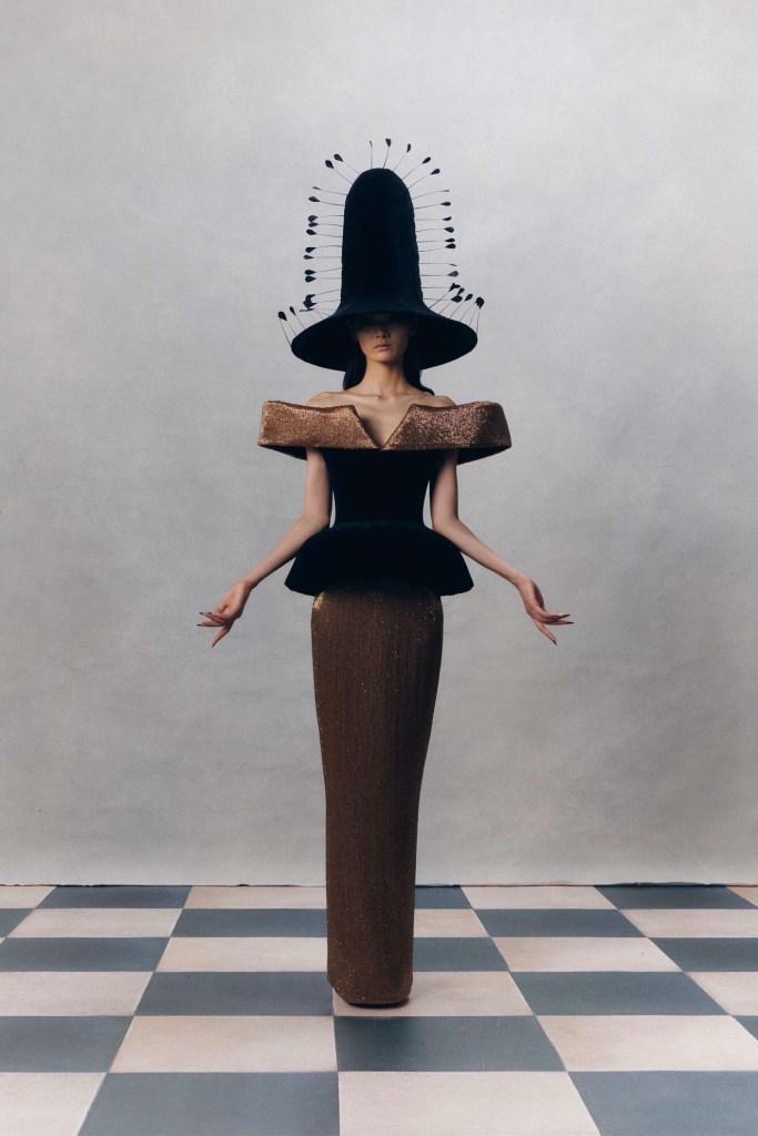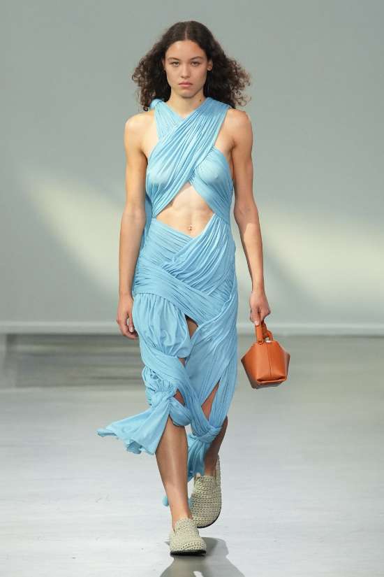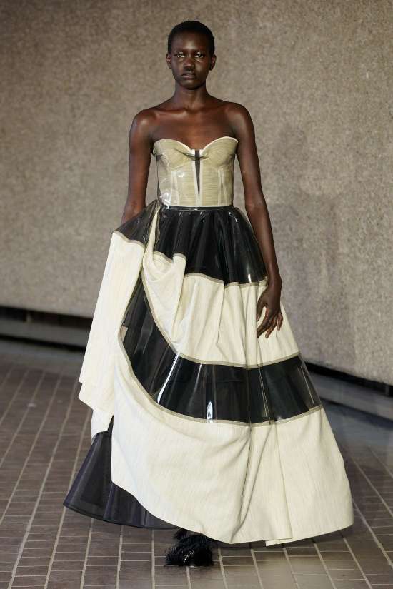 Harris Reed: Reed didn’t hold back on the drama, with larger-than-life silhouettes that turned heads and made a statement. The collection showcased brilliant corset work, dramatic necklines, elegant fishtail hems, and those signature operatic headpieces that we’ve come to love. In a palette limited to just three colors – copper, black, and white – Reed’s craftsmanship took center stage. The ensembles effortlessly blended overt femininity with robust architectural elements. In just a few seasons, he has established a distinctive design identity, solidifying his status as an intriguing contender in the London fashion scene.
