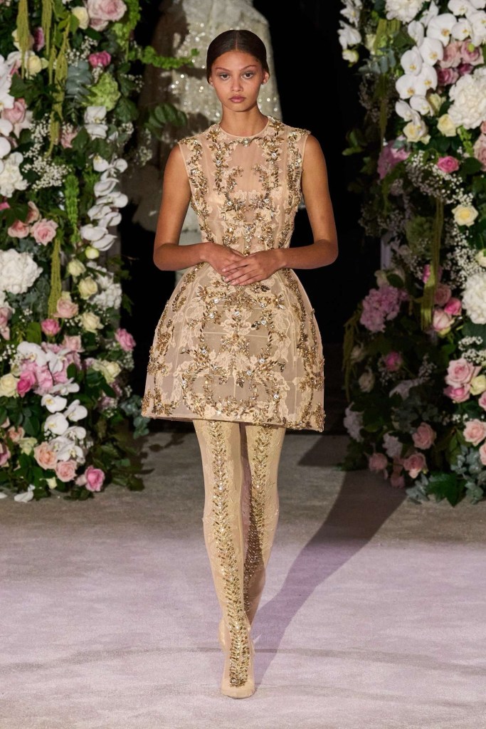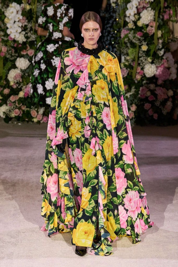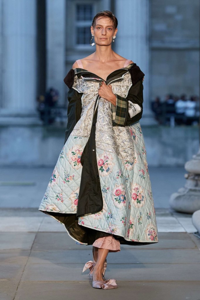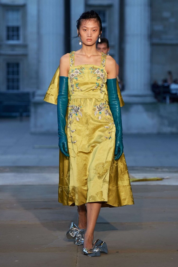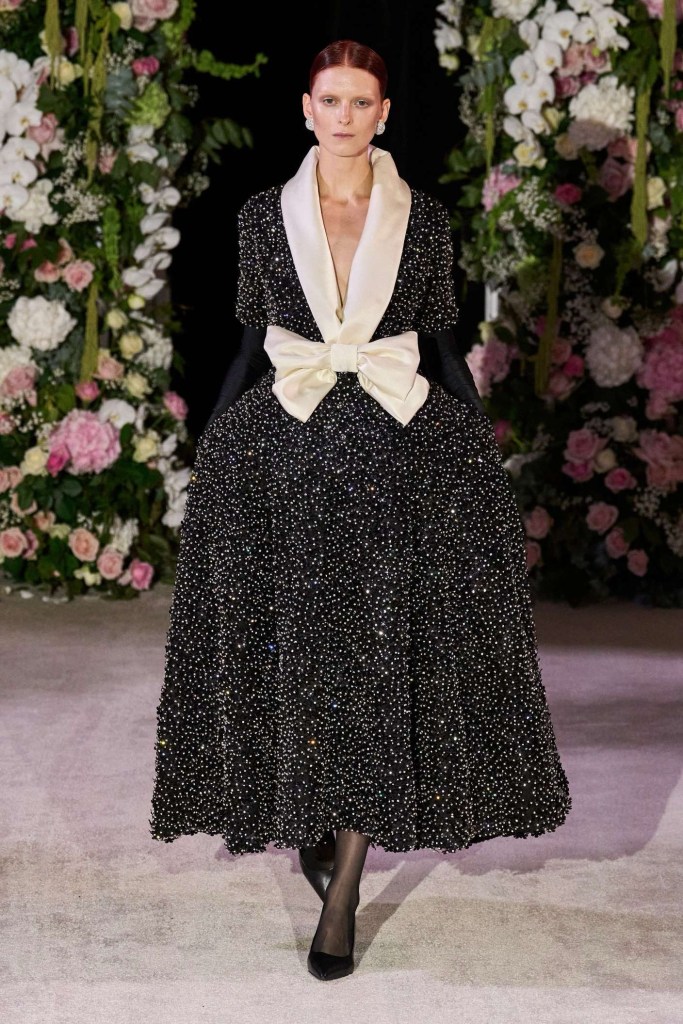 Richard Quinn: This stunning showcase was a heartfelt tribute to his late father, Patrick. While grief often shrouds creativity, Quinn’s collection artfully transformed sorrow into an ethereal celebration. The eveningwear in this collection was nothing short of gorgeous. Dramatic silhouettes took center stage, featuring flowy capes, Dior-esque cage minidresses, and impeccably structured gowns. Opulent details adorned every piece, from intricate embroideries to lavish embellishments. Fans of Quinn’s signature maximalist floral prints won’t be disappointed either; they made a quick appearance. The overall effect was a line of couture-like creations, leaving us in awe of this beautifully crafted, emotionally fulfilling show.