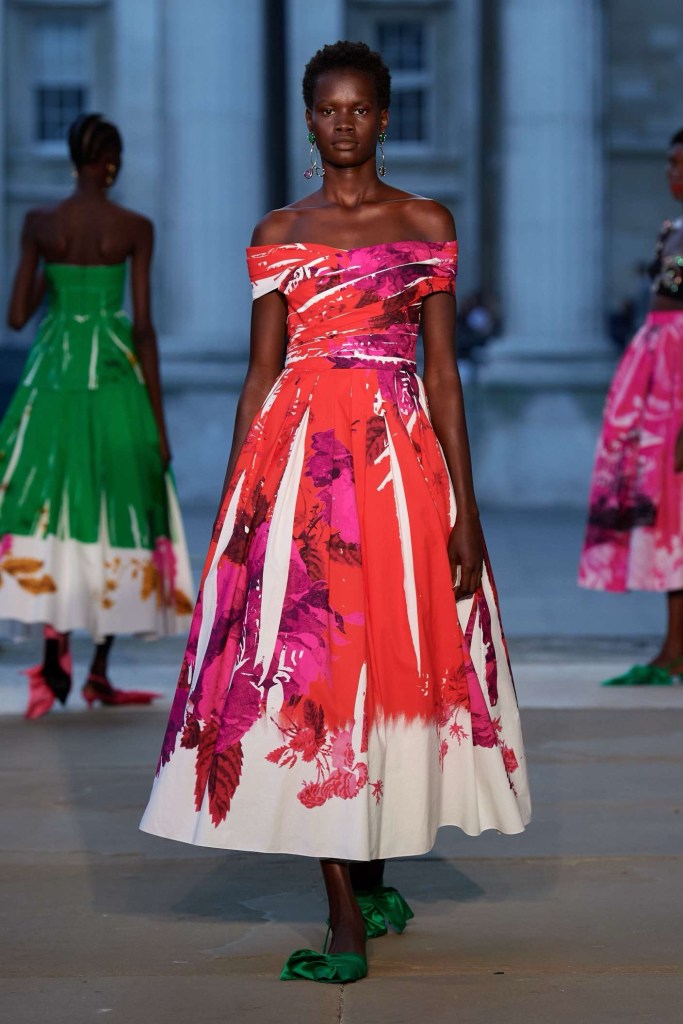 Emilia Wickstead: The collection drew inspiration from the socialites of the 1920s & 1930s South of France. The spirited, flirtatious colors paired with laid-back materials resulted in practical summer pieces that were both chic and comfortable. Pieces perfect for strolling along sun-kissed beaches or sipping cocktails at a seaside café. What struck me the most was how this collection felt refreshingly different from Wickstead’s usual design language. It was more casual and relaxed, a departure from her typically elegant eveningwear. This season, she clearly had her sights set on daywear, and it was an exciting new area.