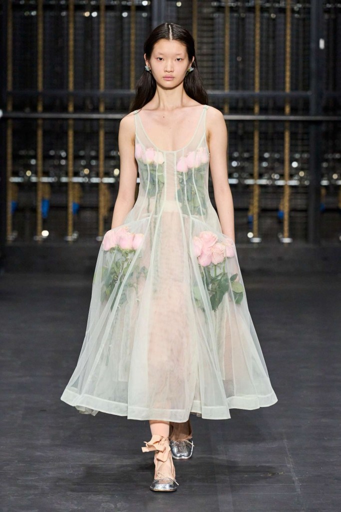 Simone Rocha: ‘Dress Rehearsal’ by Simone Rocha is an absolute floral fantasy brought to life. It is an enchanting journey through the realms of procession, obsession, declaration of love, decoration, and tension. Roses reign supreme in this collection, blooming on delicate fabrics that are adorned with pearls, lace, ribbons, and tulle. The florals are both bold and delicate, a juxtaposition of femininity and utilitarianism that leaves you in awe. One unexpected twist in this collection is Rocha’s collaboration with Crocs. Rocha’s genius has transformed these comfy classics with her romantic touch.