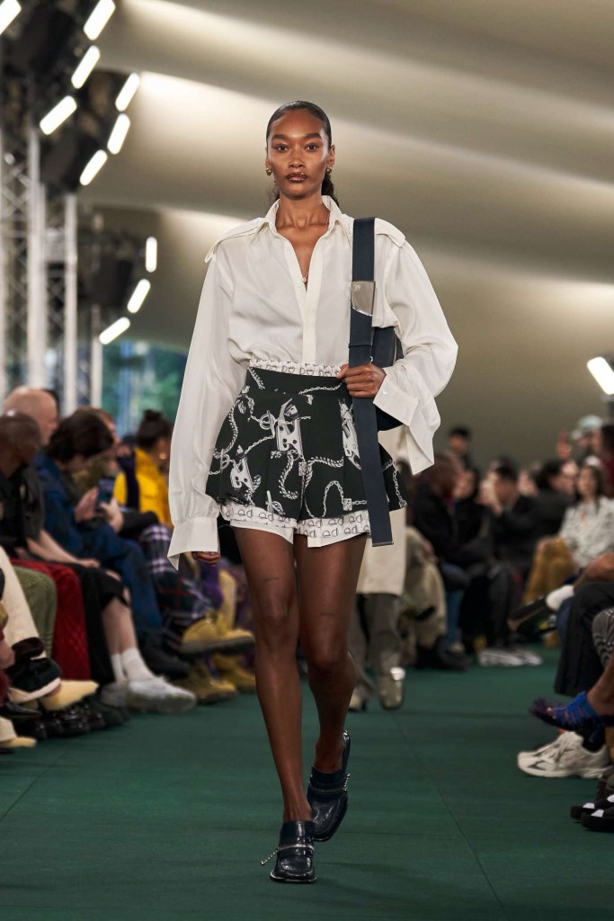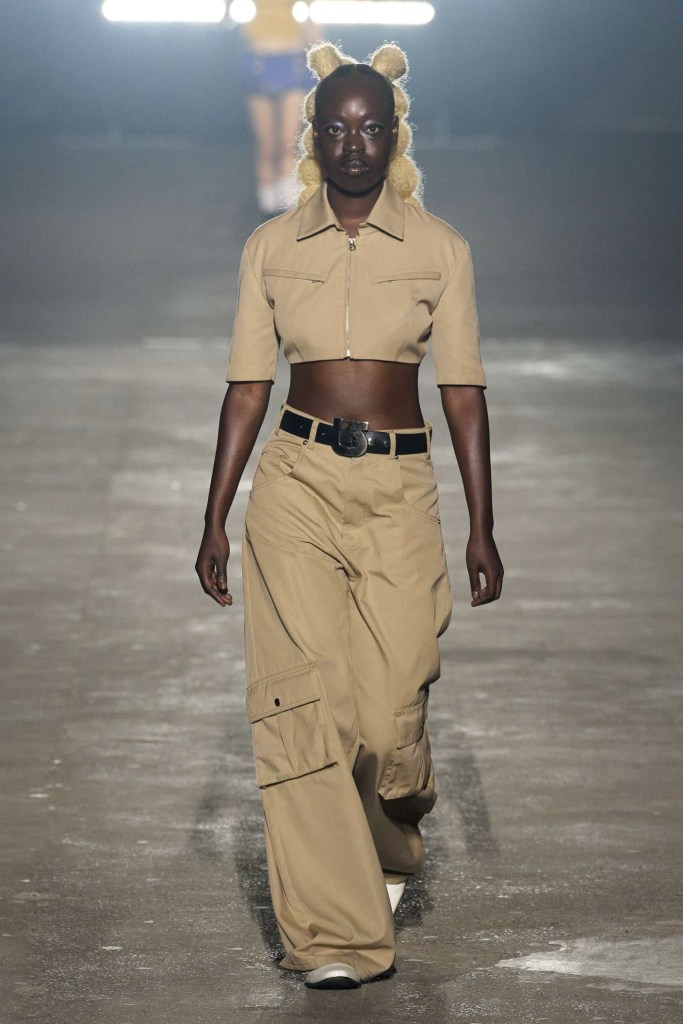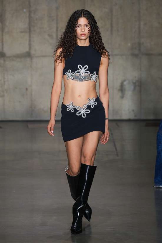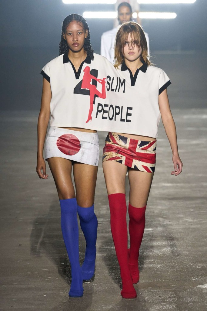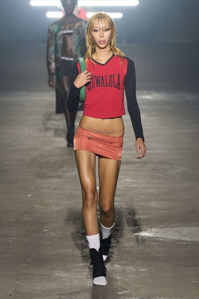 Mowalola: The collection showcases extremely revealing clothes, adorned with graphic prints and motifs, making a bold statement for those who dare to flaunt their individuality. One notable point of contention was the use of the Saudi Arabia flag as a micro mini skirt, which sparked controversy. The designer initially responded indifferently but later issued an apology, acknowledging the insensitivity of the choice. Additionally, the collection featured micro skirts fashioned after the flags of the United Kingdom, Japan and China. Despite the controversies, Mowalola’s signatures shine through, offering a daring exploration of sexy, cool-kid fashion.