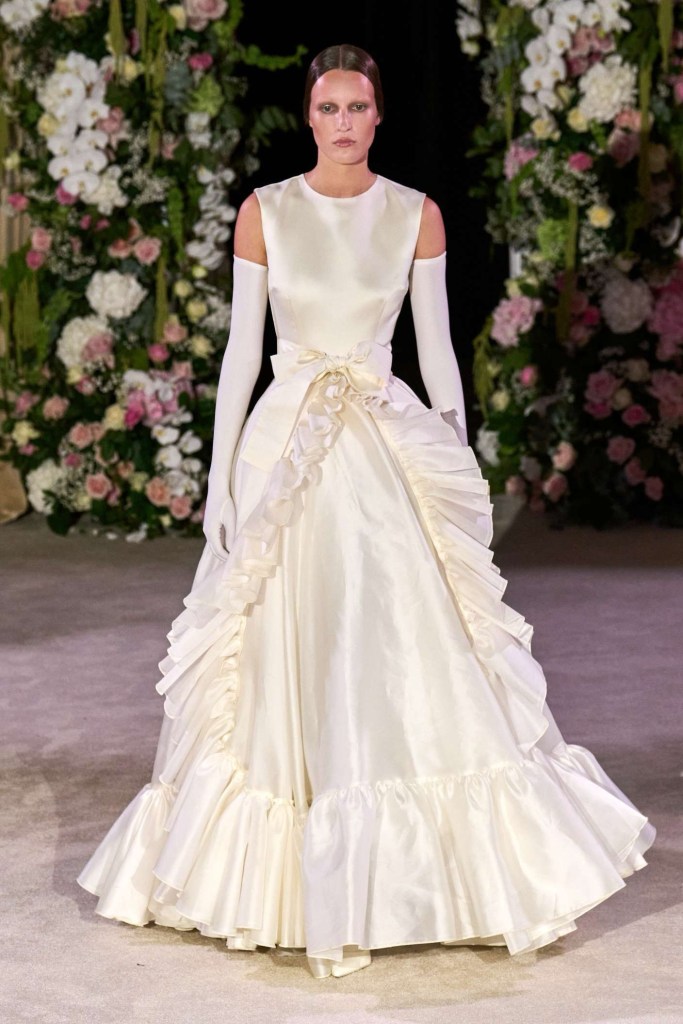 Huishan Zhang: With its relaxed shapes and cuts, the collection presents a refreshing take on eveningwear, offering a wide array of light, airy garments. Inspired by ballet, the clothes tell a captivating story, weaving in intricate details and celebrating the cultural richness of China. The collection’s expansive range of options caters to diverse tastes, making it a standout choice for clients seeking relaxed elegance. Huishan Zhang has delivered a strong collection that beautifully captures today’s pulse.