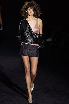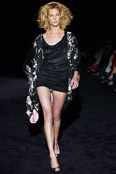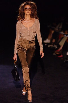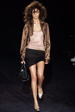 High hemlines dominate the runway, emphasizing super sexy legs and exuding a playful charm. The collection boasts a diverse range of mini cocktail dresses offering a plethora of choices for fashion fans to drool over. While it channels the early 2000s vibe effortlessly, it doesn’t shy away from being quintessentially Gucci. This collection is a testament to Tom Ford’s exceptional ability to sell sexuality through fashion. It caters to those seeking a blend of retro and contemporary, with an undeniable sex appeal.