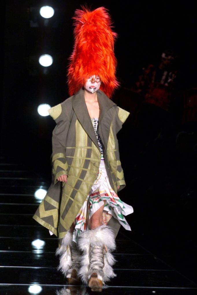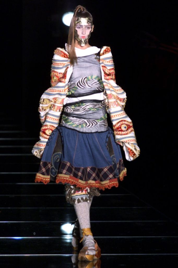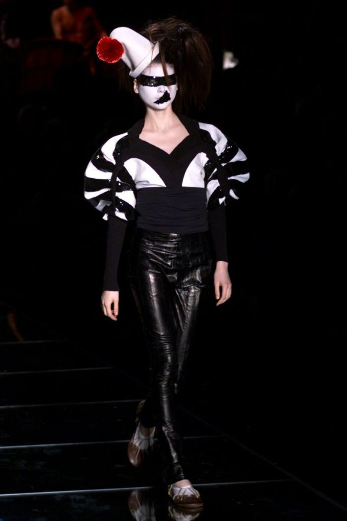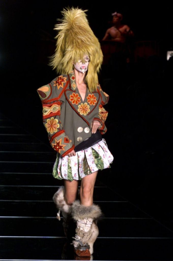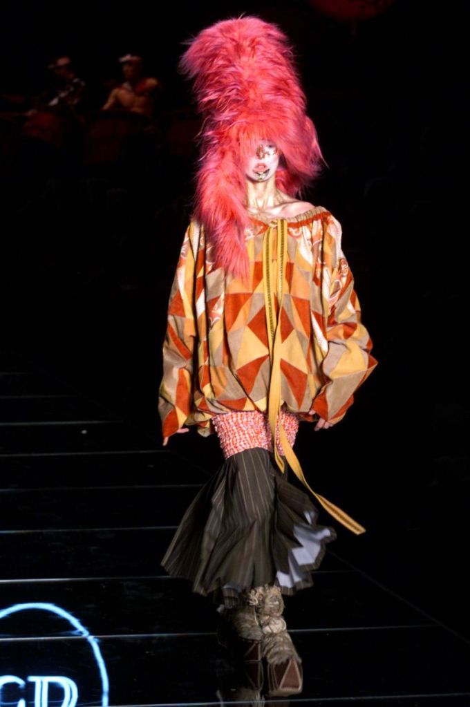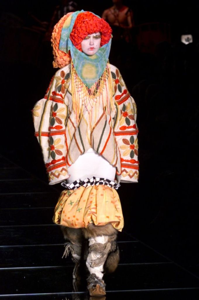 Inspired by Russia, this collection is a deep dive into various elements of Russian culture, fashion & art. This collection is one of those where I yearn to uncover every single aspect, from the sources of inspiration to the intricate details woven into the garments but these old collections usually don’t have much information available on them. What really makes this collection is the styling, the clash of colors, the layers and the overlap of textures add dimension to the outfits. The collection was, just a lineup of different aspects of Russia from military, inspired, rackets to ballet costumes and from high-fashion circus clowns to brightly colored massive jackets.