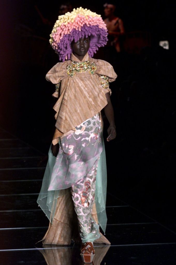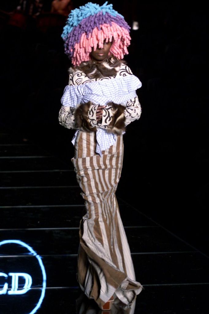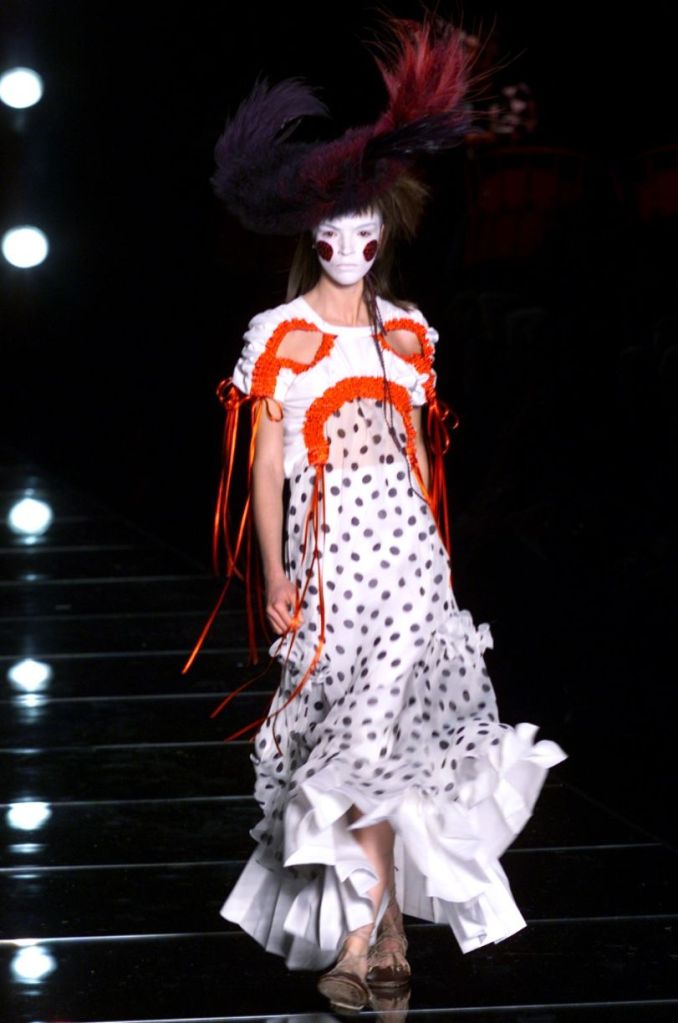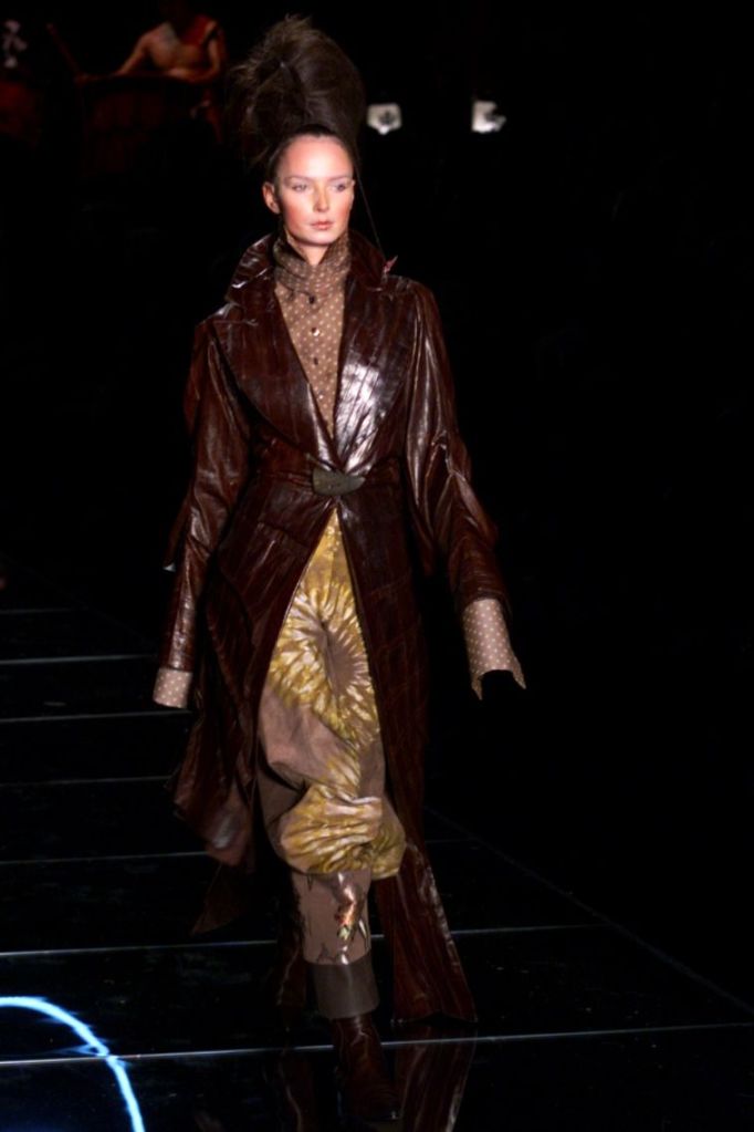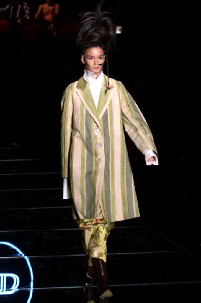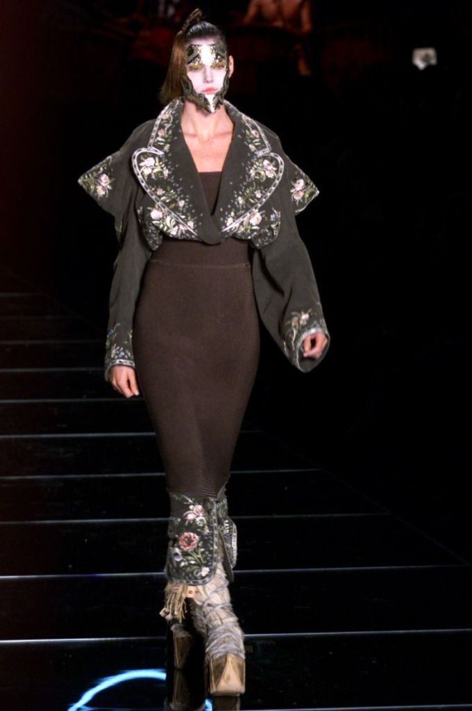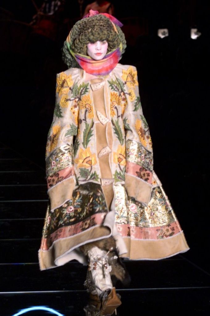 Inspired by Russia, this collection is a deep dive into various elements of Russian culture, fashion & art. This collection is one of those where I yearn to uncover every single aspect, from the sources of inspiration to the intricate details woven into the garments but these old collections usually don’t have much information available on them. What really makes this collection is the styling, the clash of colors, the layers and the overlap of textures add dimension to the outfits. The collection was, just a lineup of different aspects of Russia from military, inspired, rackets to ballet costumes and from high-fashion circus clowns to brightly colored massive jackets.