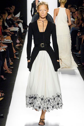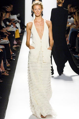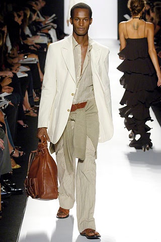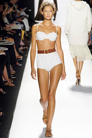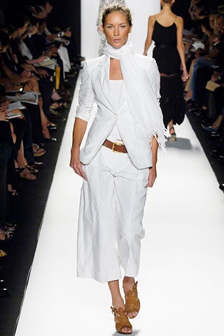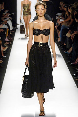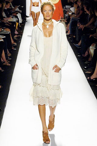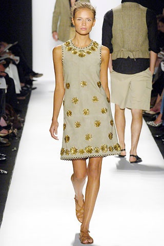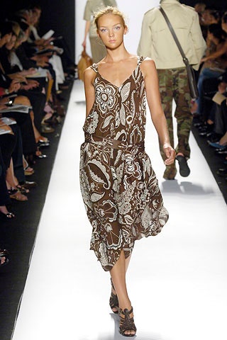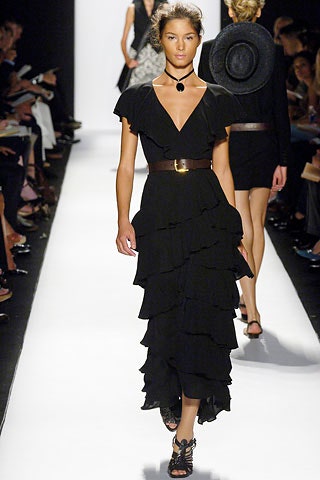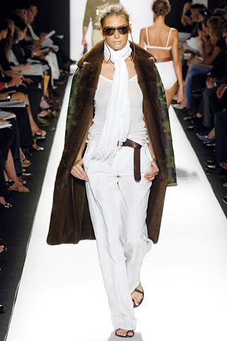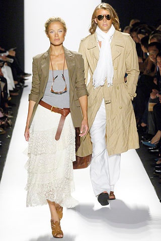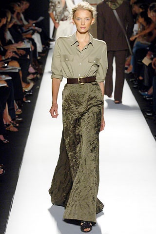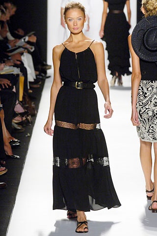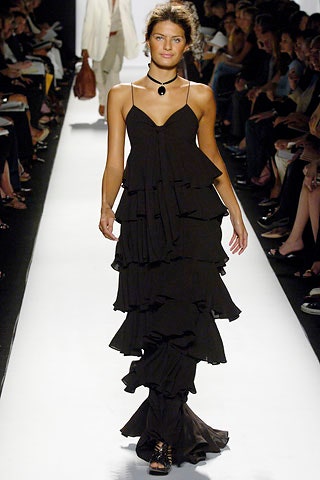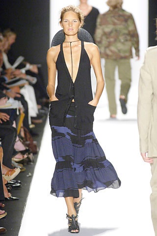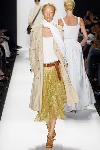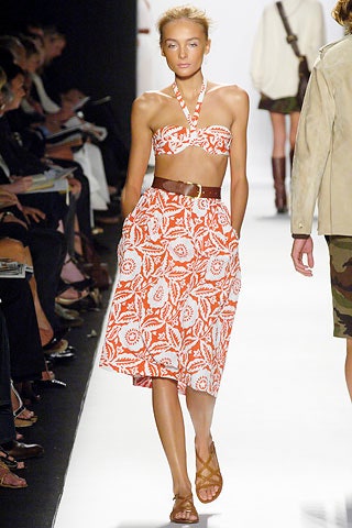 This collection seamlessly marries the captivating essence of American landscapes with a mix and match early 2000s glam. These garments embody a harmonious blend of comfort and chic, offering a nod to the free-spirited fashion of a bygone era while maintaining a contemporary charisma. He presented a seventies-inspired warm-weather collection featuring safari shirts, gauchos, scarf dresses and high-waist retro bikini bottoms. Yet, Kors doesn’t stop at daytime elegance. He continues to dazzle us with his signature flair for creating seductive eveningwear.