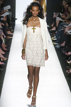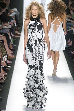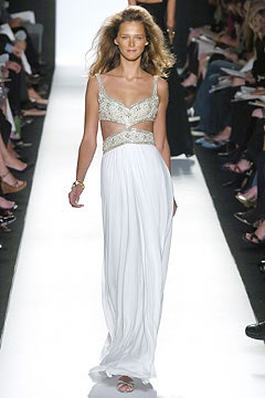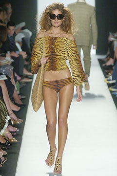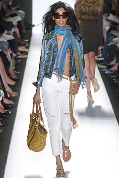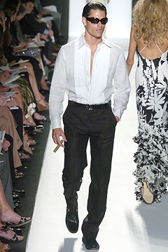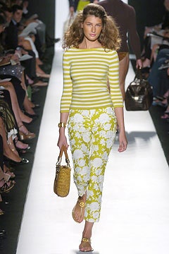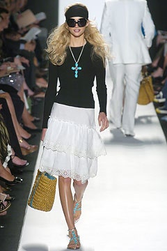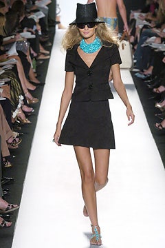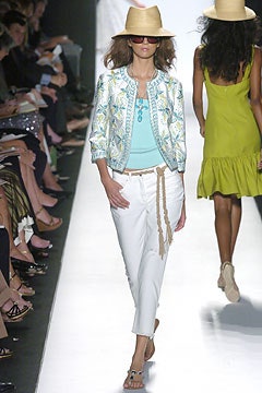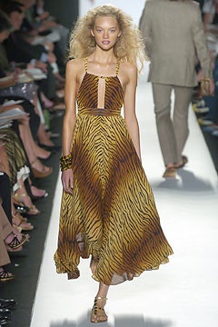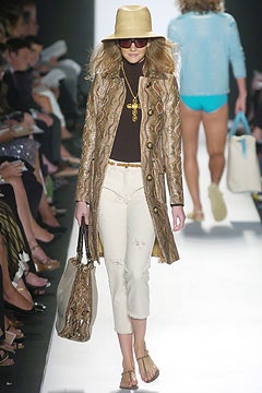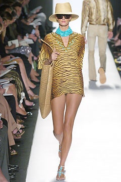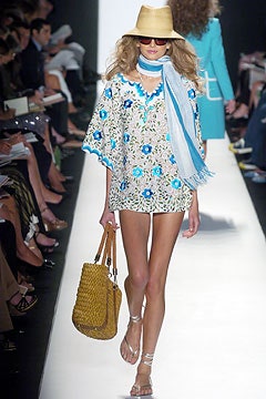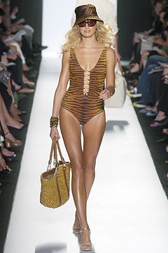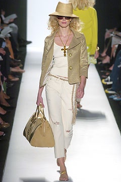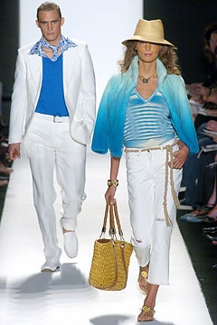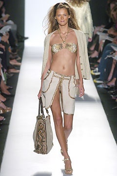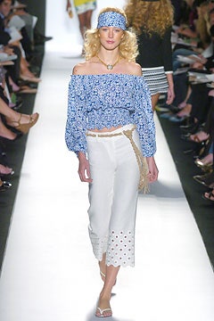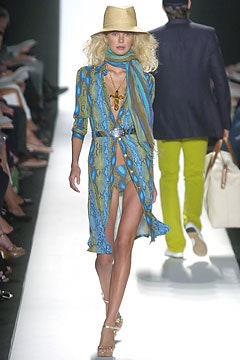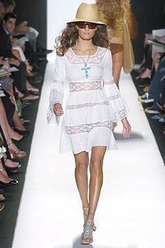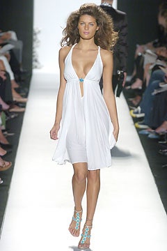 Michael Kors drew inspiration from European resorts like Mykonos and Santorini, creating a collection featuring vibrant colors, exotic prints, and beach-ready pieces, embodying his signature blend of simplicity and luxury. The island vibe was evident with crisp white pieces and embroidered tunics, along with a range of skimpy bathing suits. Some of these looks are quintessential staples of early 2000s fashion – the best of it!