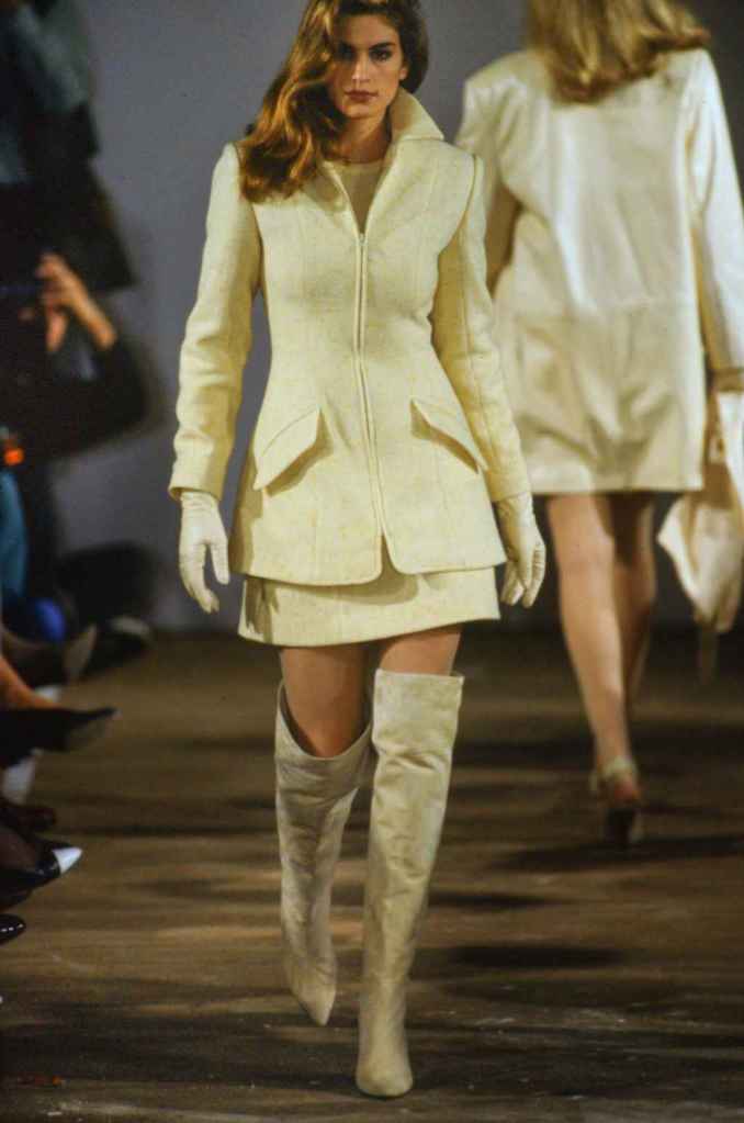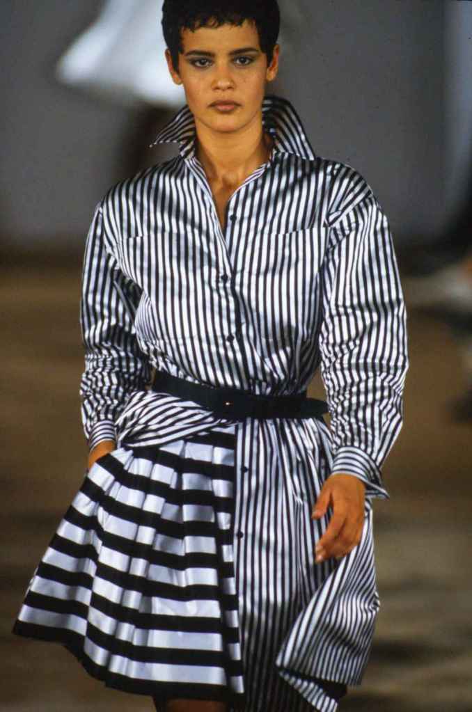 This collection defied ’80s glamour, embracing ’90s style and redefining city outerwear. Michael Kors aimed to redefine camel showcasing the power of contrast resulting in some ultra-glam pieces. With lace, cheetah print, metallic accents, and stripes, the range showcases Kors’ mastery of patterns and textures. Luxurious leather, plush knits, and silky satin create a diverse textural landscape. The collection’s skirt suits exude sophistication, while the coats and coat dresses exude warmth and style.