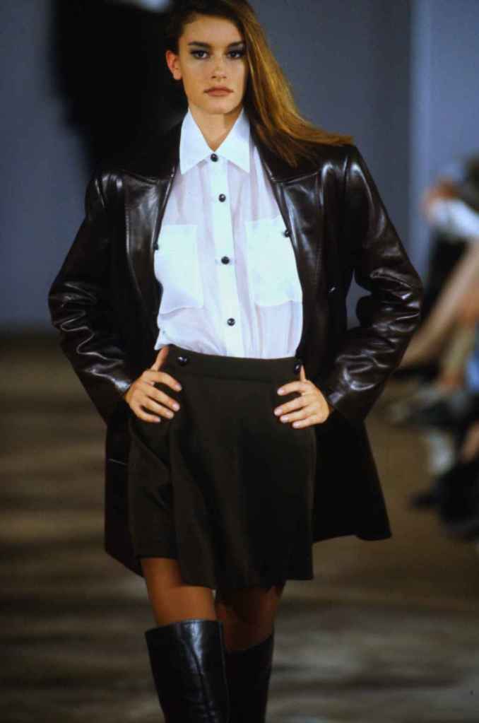 Leather took center stage, especially rich chocolate brown, adding depth to the material palette. Amidst the camels and blacks, the intense richness of brown remained a beloved element, still cherished today. Each piece exquisitely captures the essence of autumn, making this collection a testament to Kors’ design prowess.
