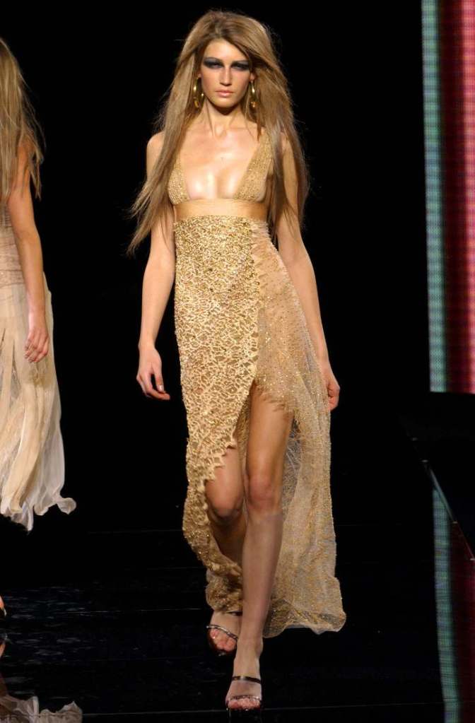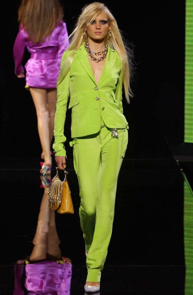 Some standouts include color-blocked minidresses and slinky chainmail tops, combat pants. nude lingerie dresses and graphic swimsuits. The audacious blend of these colors is not just a visual element; it’s Versace. The culmination of colors, fabrics, and designs came together in a harmonious symphony that echoed the creative genius that was inherent to Gianni’s work. Massive neckpieces, add a costume-y aspect to the wonderfully marketable clothes.